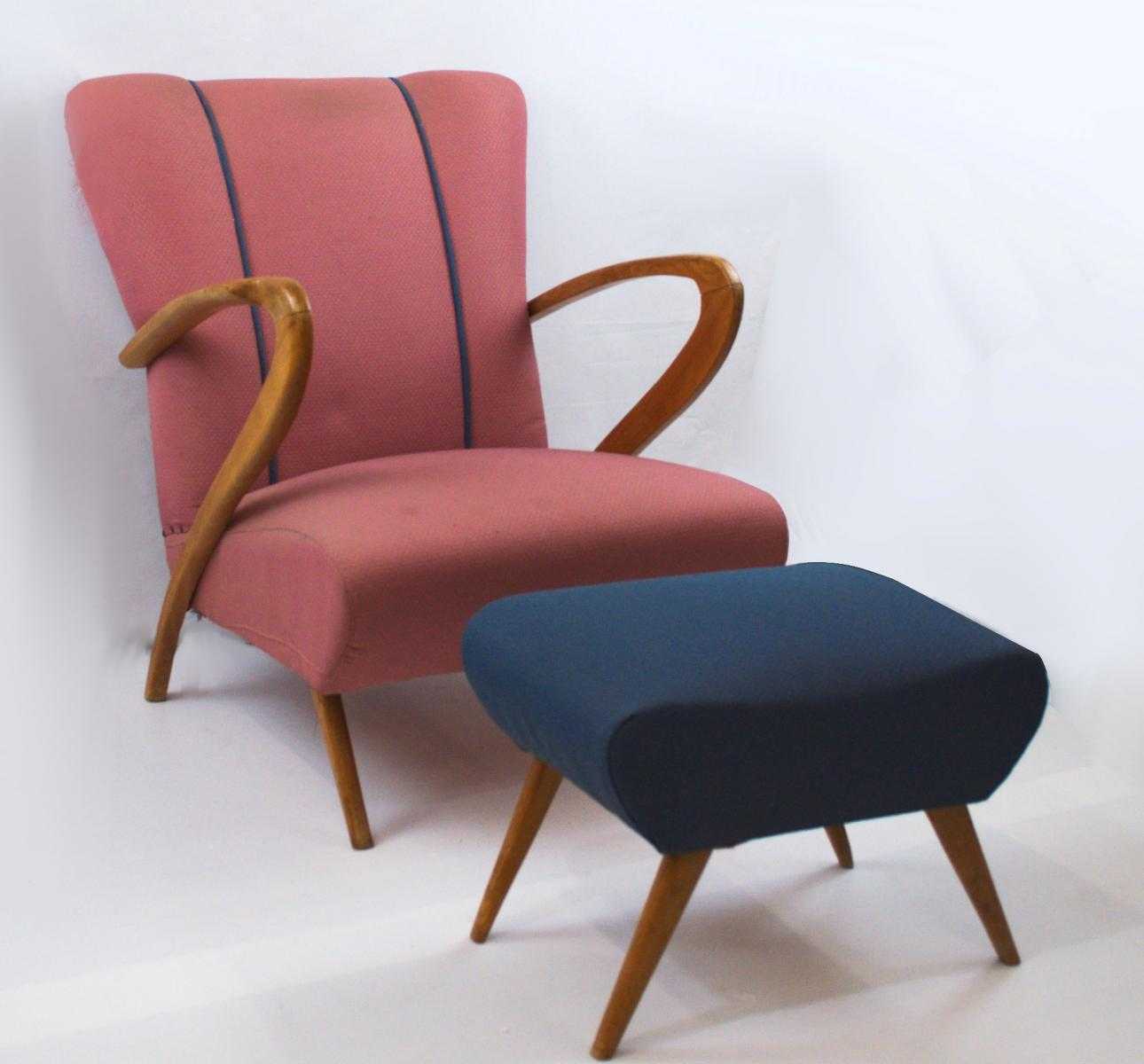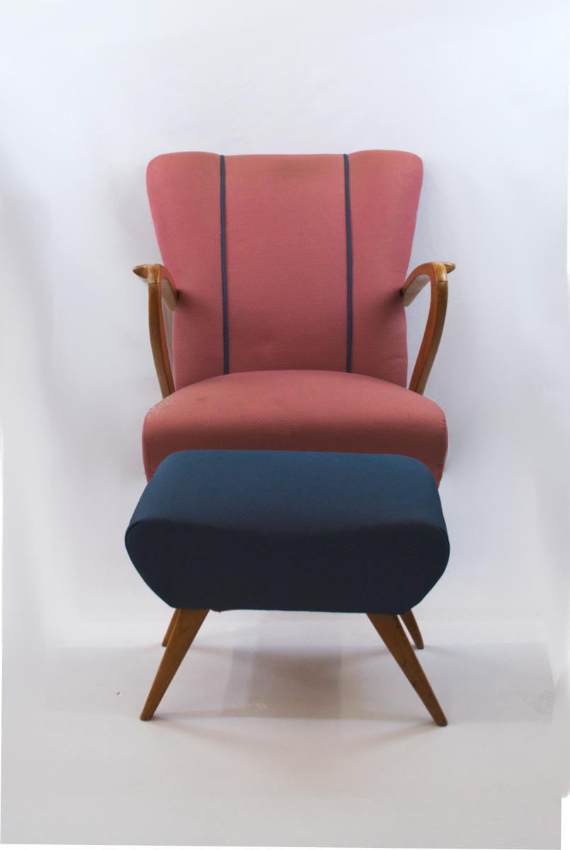 Vintage Armchair in Dark Wood and Light Fabric, 1950s