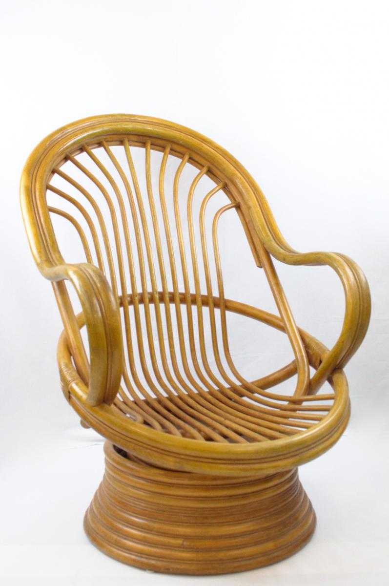 Mid-Century Bambo Swivel Rocking Chair, 1970s