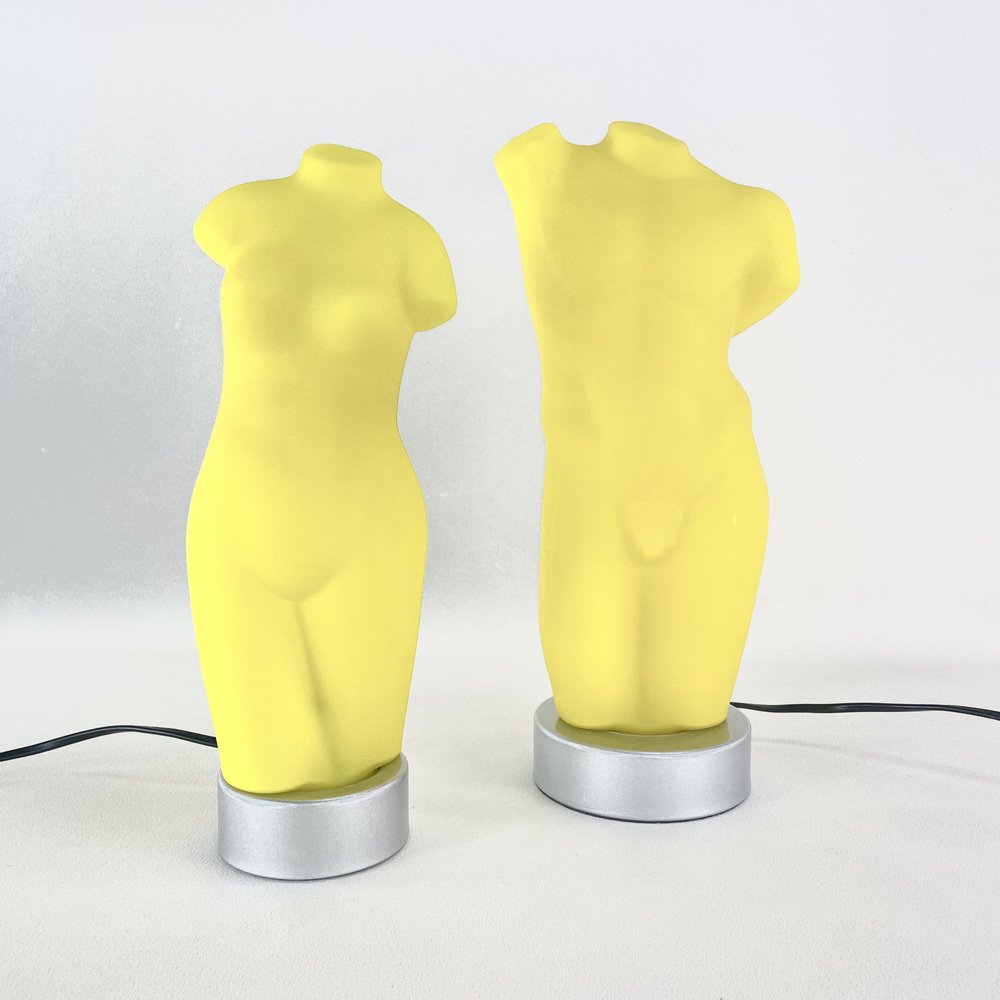 Side Tables with Integrated Lamp, 1980s, Set of 2