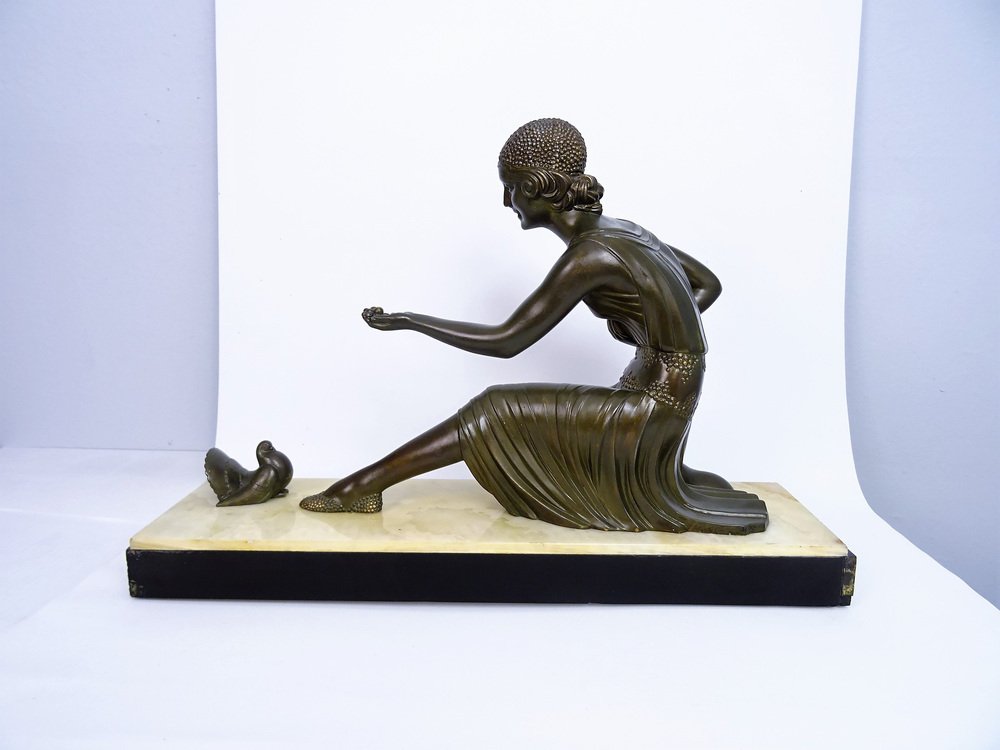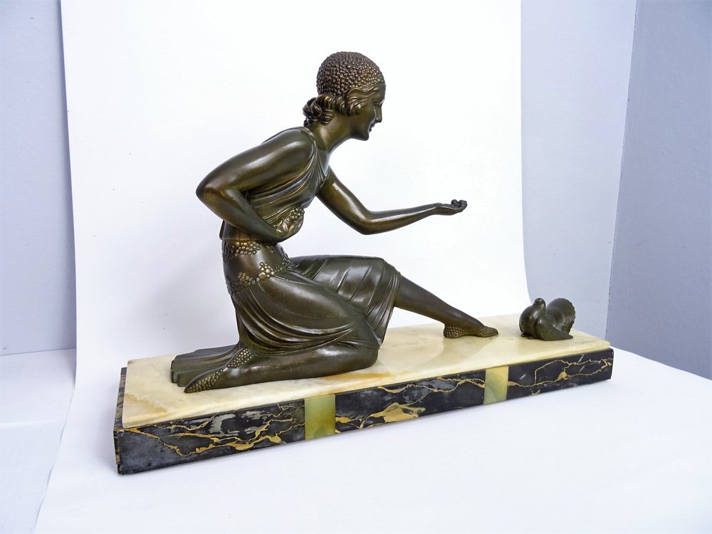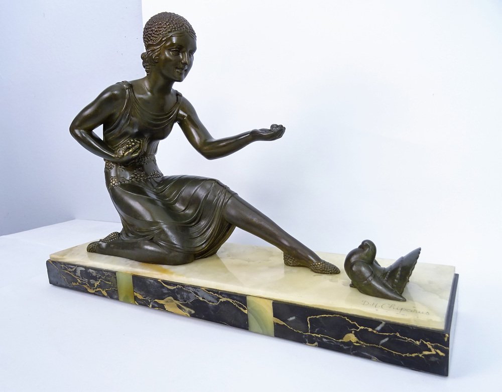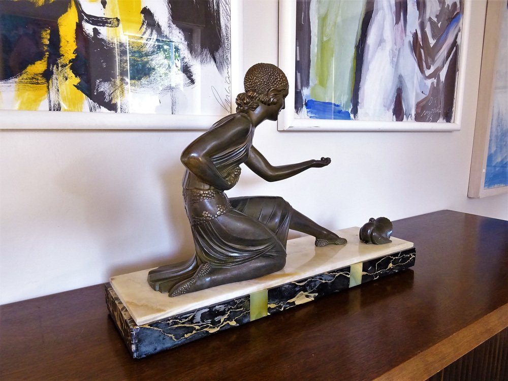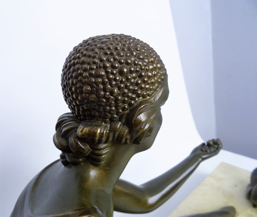 Demetre Chiparus, Large Original Art Deco Sculpture, 1920s, Metal on Marble Base