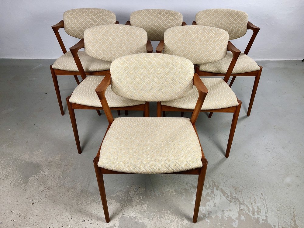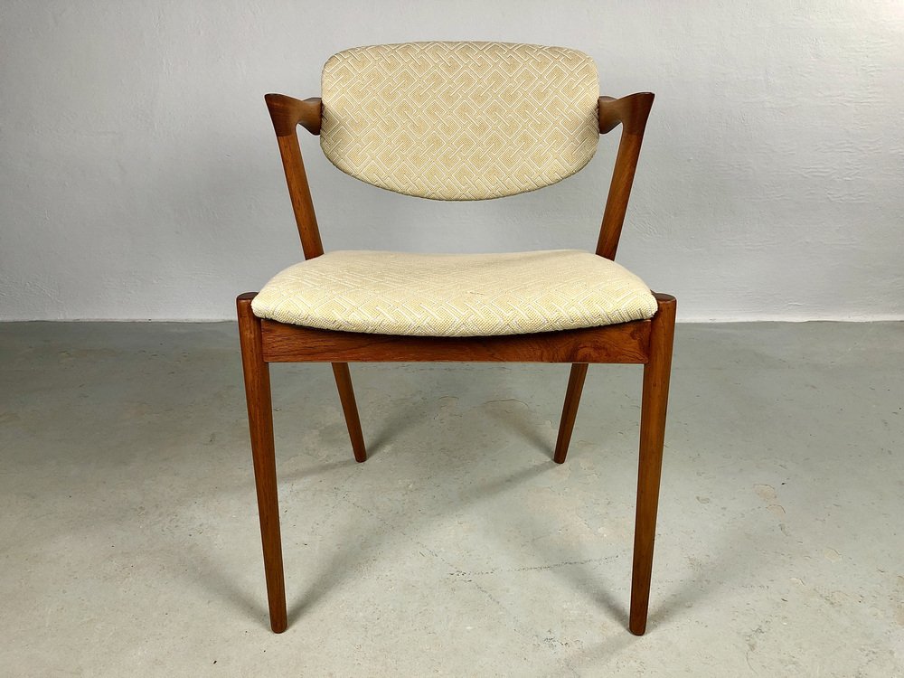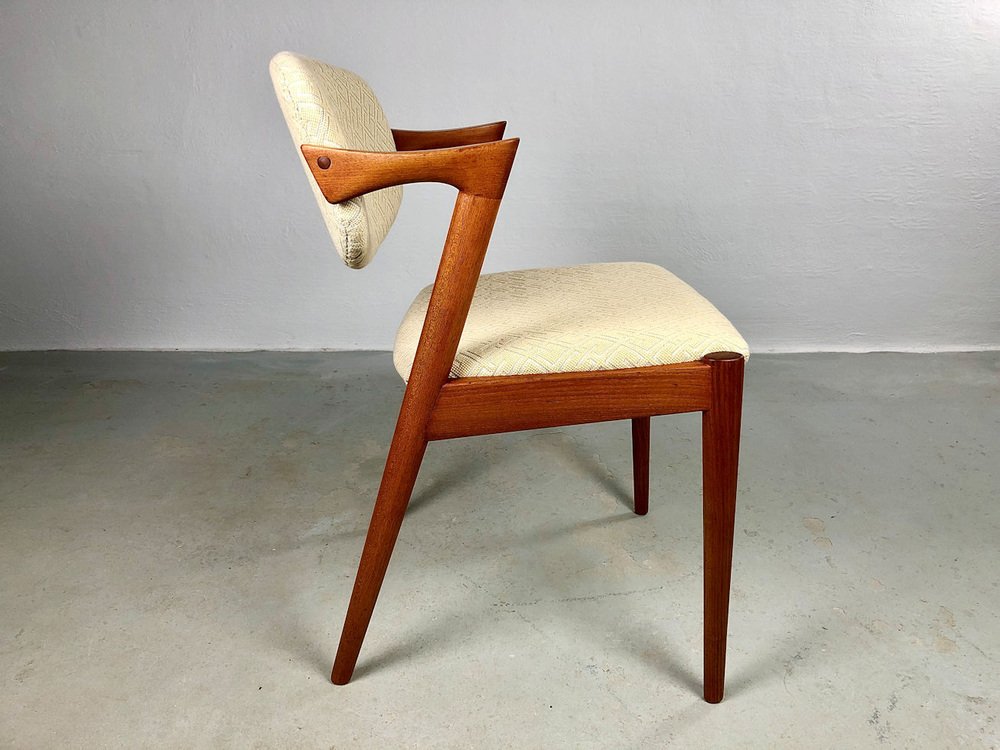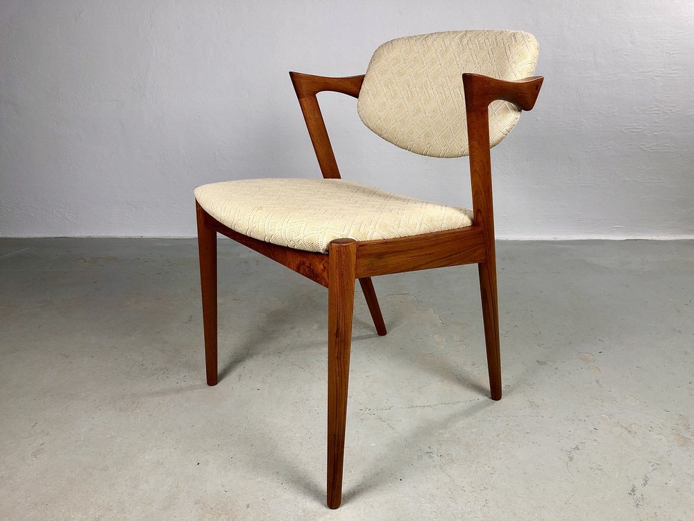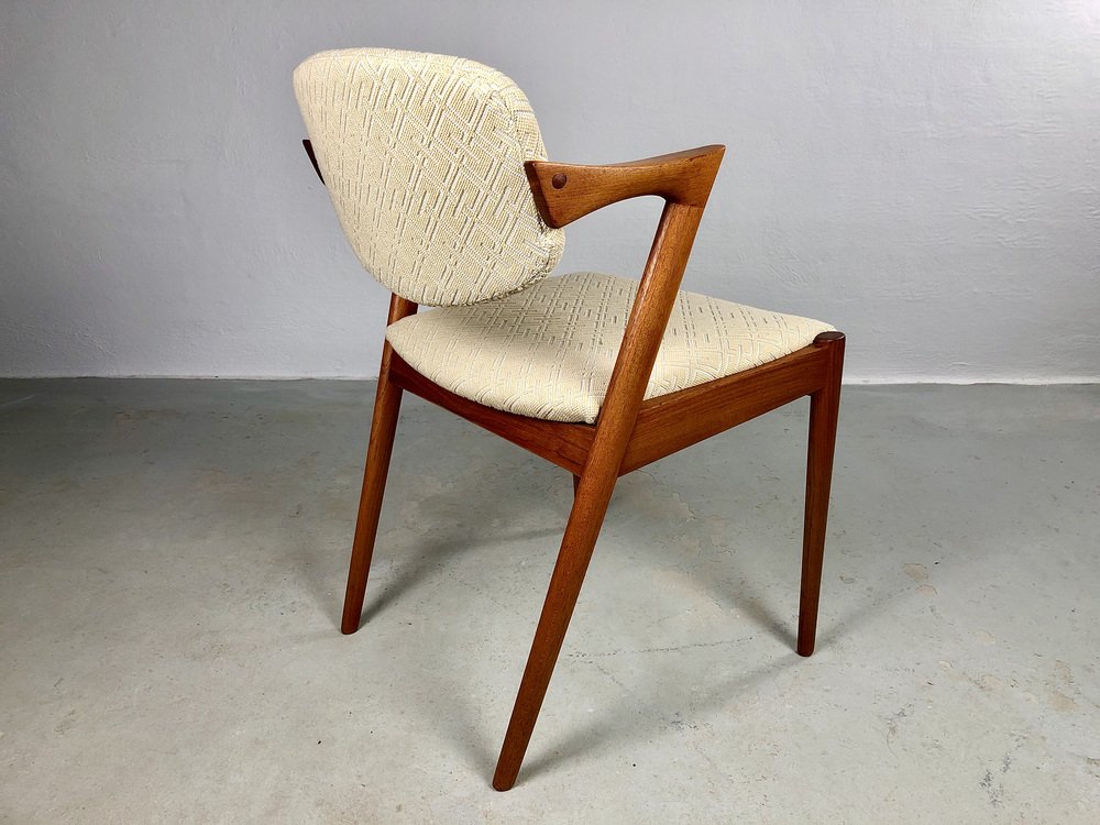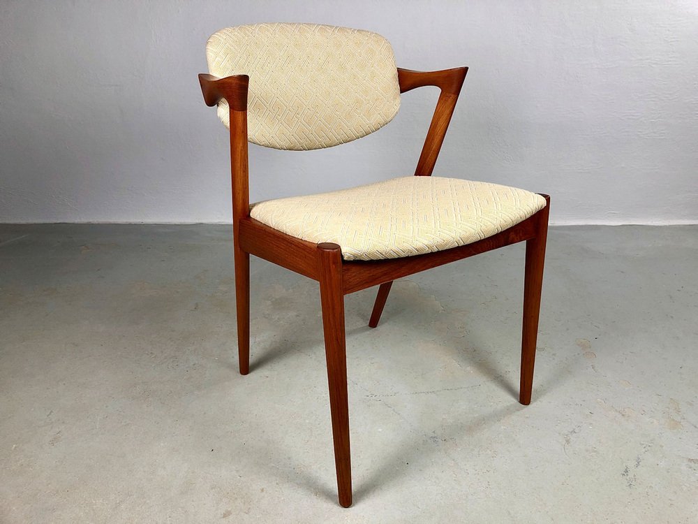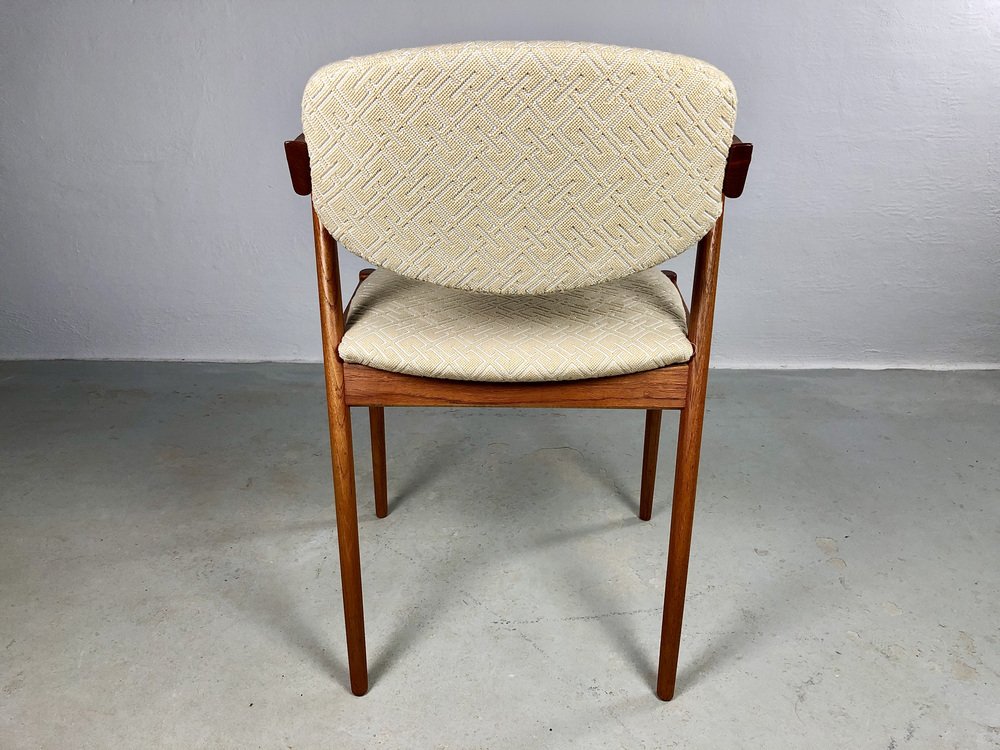 In true Danish modern fashion, Kristiansen favored well-joined teak and rosewood, evident equally in his chairs, desks, sideboards, and wall units. In 1956, he designed his most celebrated work, the No. 42 Chair for Schou Andersen. The organically curved back and pivoted armrests form a chair that is as beautiful as it is comfortable. The No. 42 was well-received by critics and enjoyed continued success as one of the most enduring Danish designs of the 20th century.