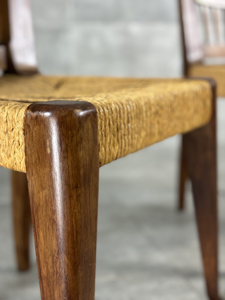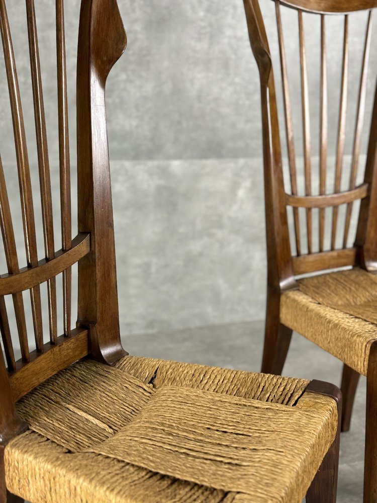 Dining Chairs with Straw Seats by Guglielmo Pecorini, 1950s, Set of 2