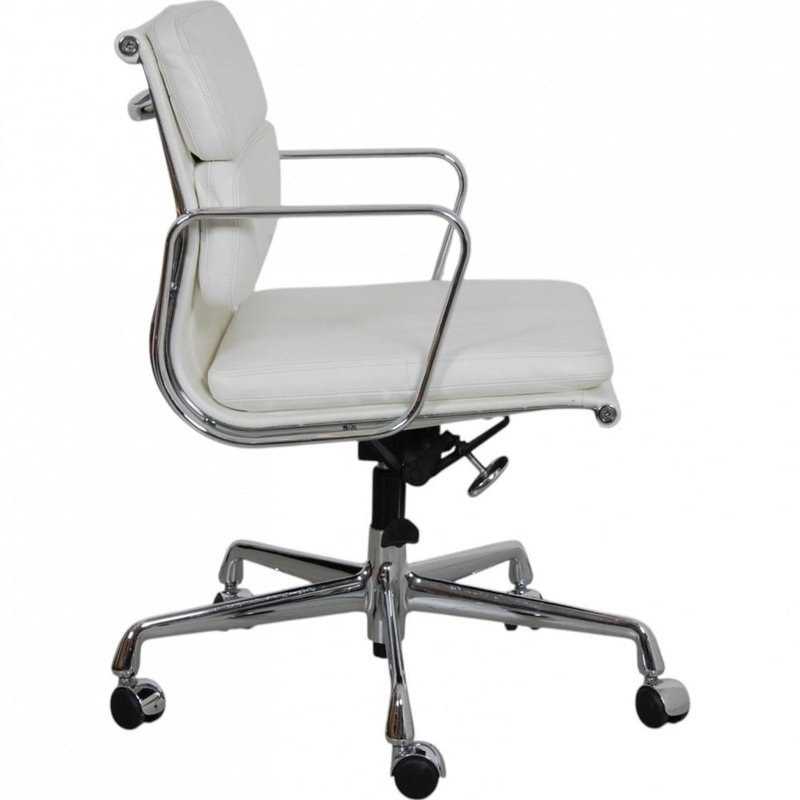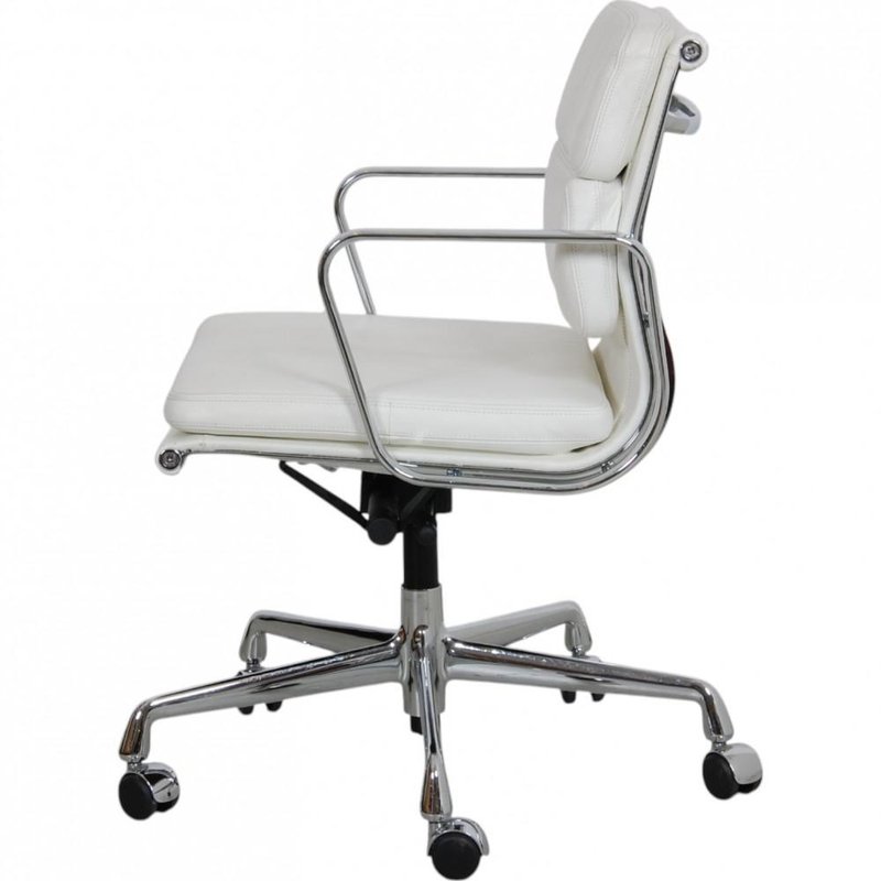 EA-217 Office Chair in White Leather by Charles Eames