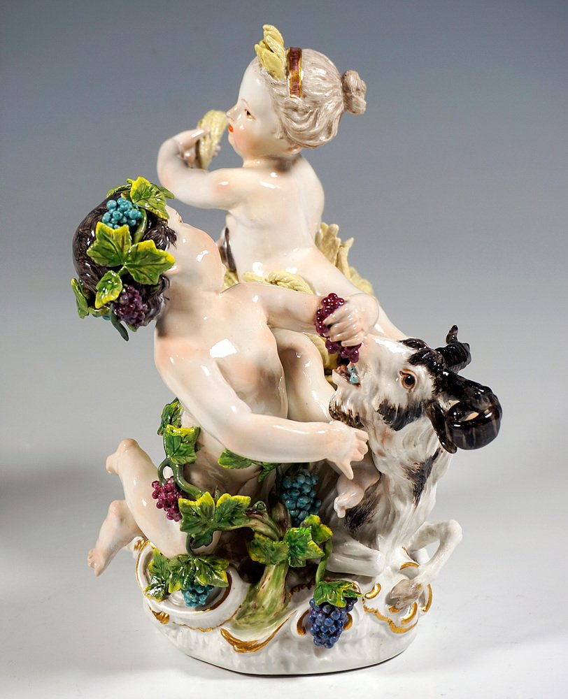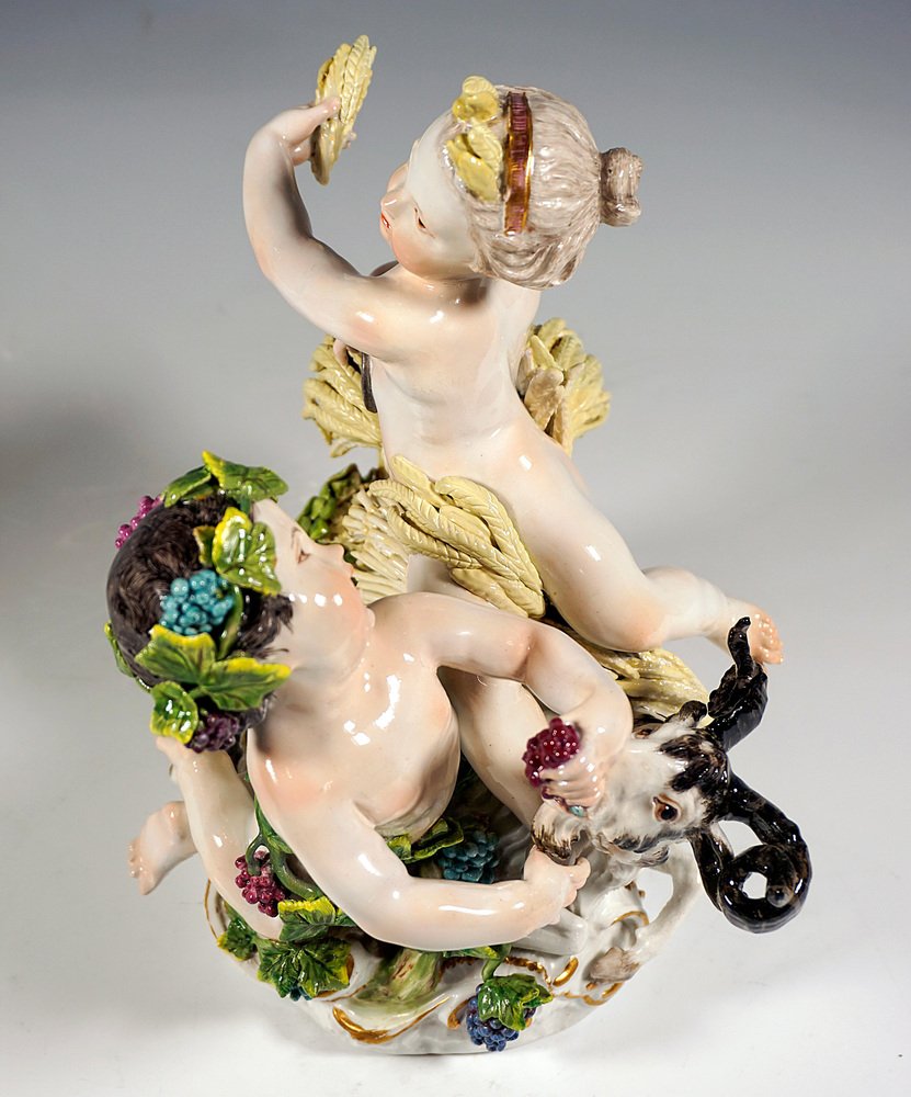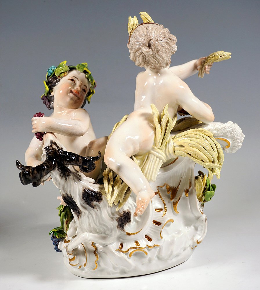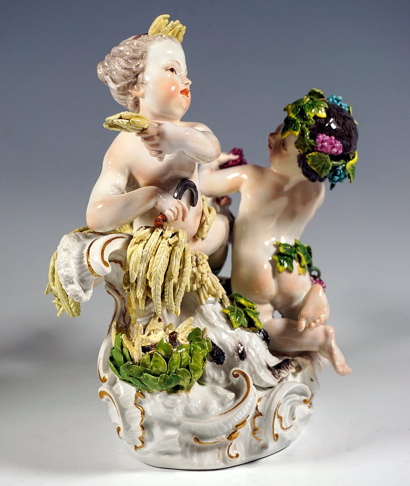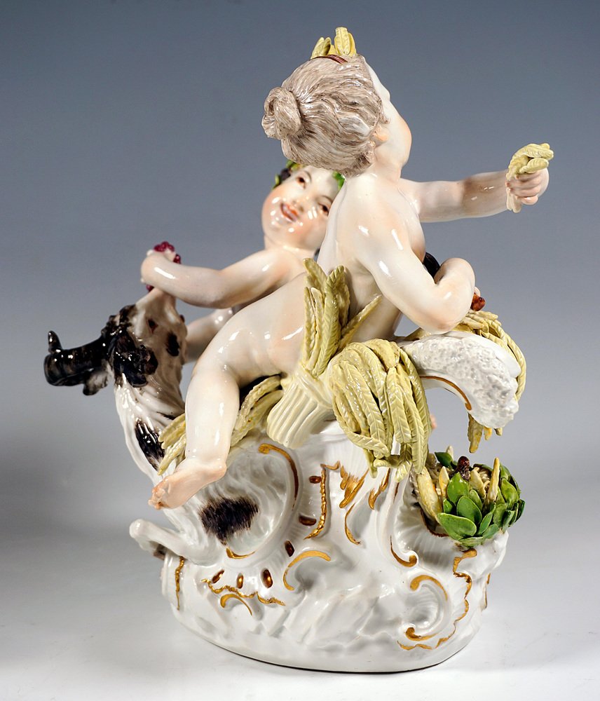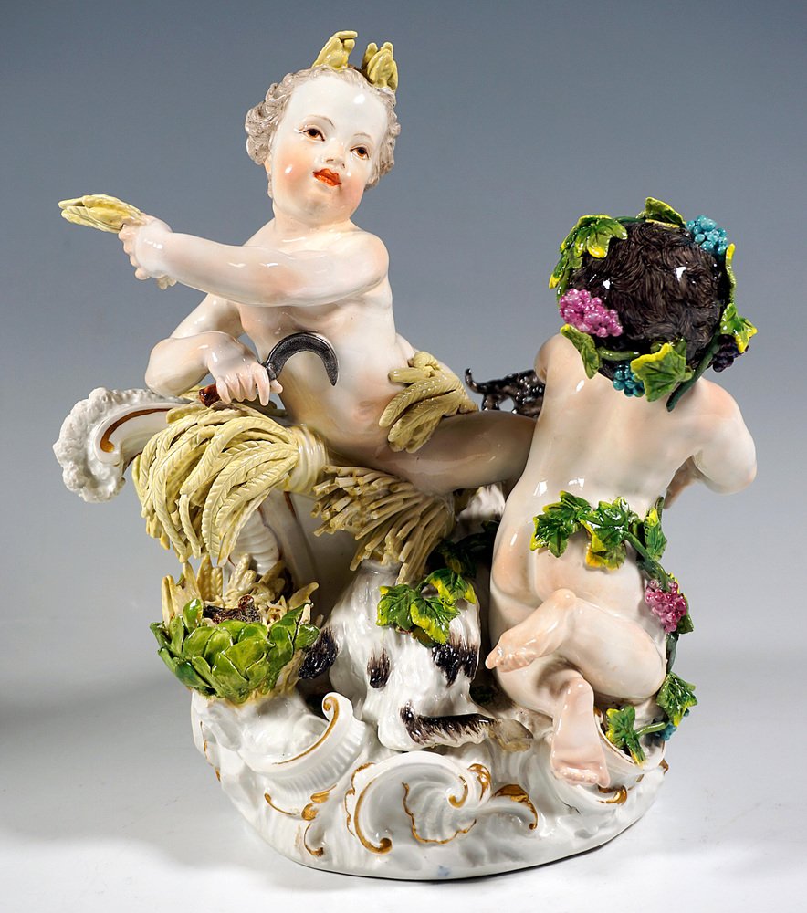 Early Meissen Allegory Summer & Autumn Cherub Group by J.J. Kaendler, 1750s