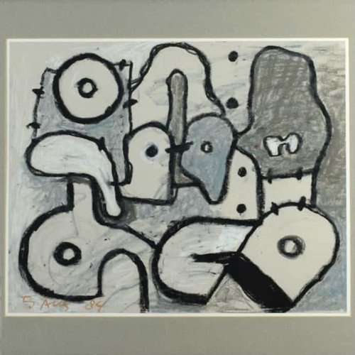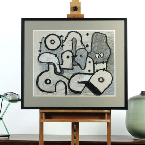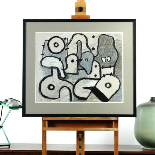 Ed Dukkers, Abstract Composition, Crayon on Paper, Framed