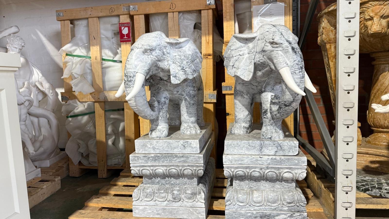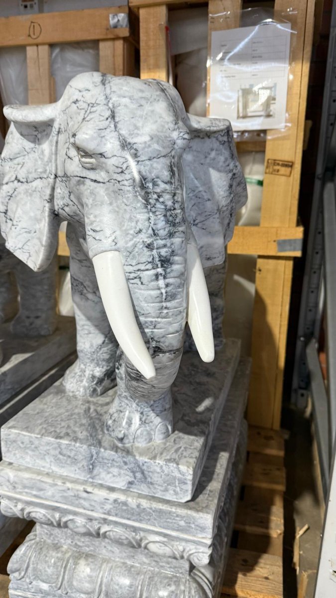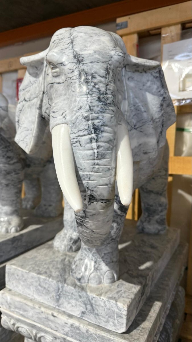 Elephant Sculptures, Marble, Set of 2