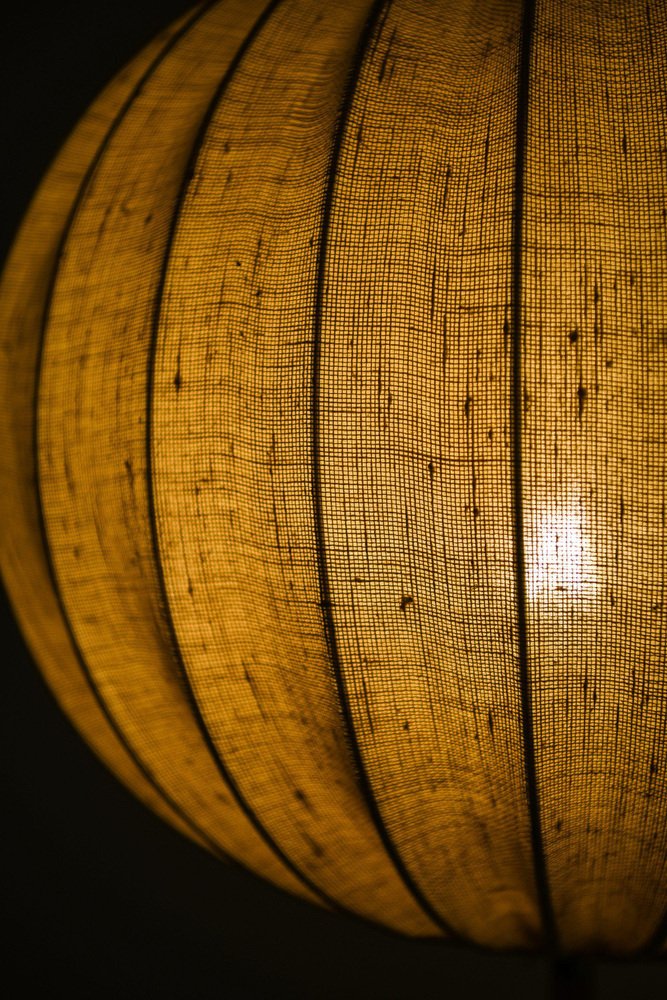 During the 1940s in Sweden, cage lamps were widely popular, often featuring plant or animal motifs as appliques to the structure. Examples from Bergström include his Model no. 3 (1930s) and Model no. 5C (1940s). In the mid-1940s, Bergström began designing lights with fabric lampshades as an alternative to metal, which was in short supply due to the war. With the introduction of plastic in the 1950s, Bergström experimented with new lighting techniques. He developed a new method that involved spraying plastic threads onto a rotating wire frame, which resulted in both a patent and the spherical Model no. 166 Light (1952). A somewhat similar technique would later be used by the Castiglioni brothers for their cocoon-like Viscontea Lamp (1960), Taraxacum Chandeliers (1960), and Gato Table Lights (1960) for Flos.