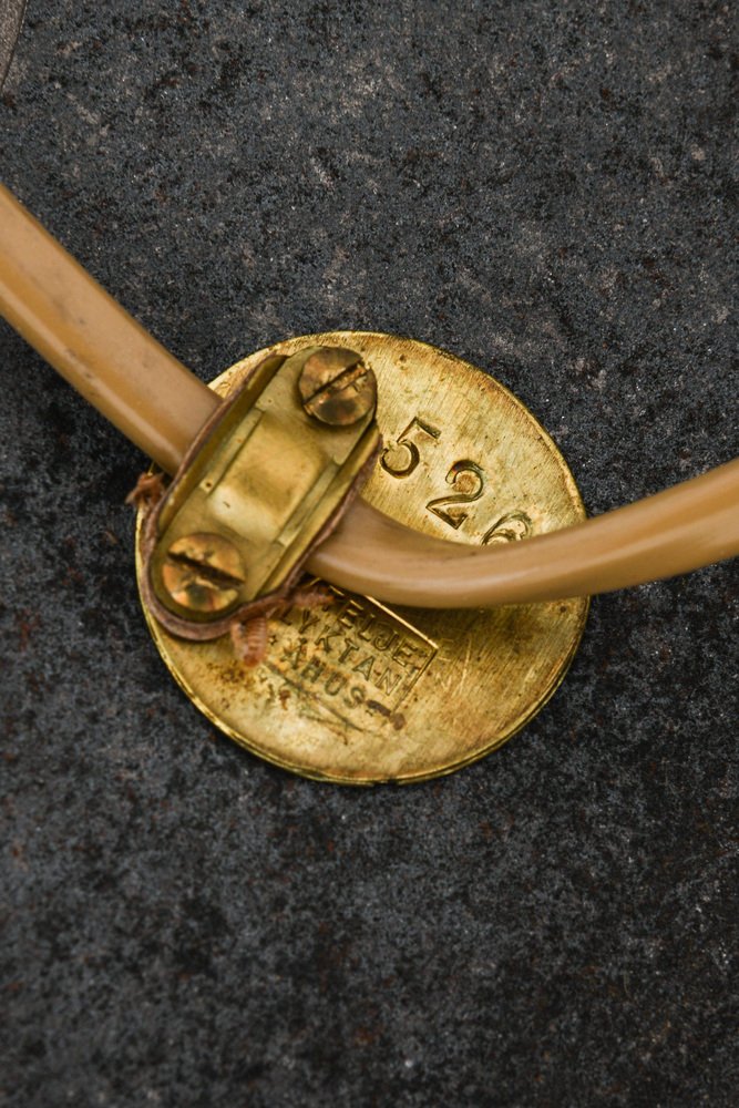 Swedish architect-designer Hans Bergström was born in 1910 in Karlshamn. After completing secondary school in 1927, he worked for several years at the Ystad-Metall metal manufactory in Ystad, where he designed lamps, mirrors, bottles, jars, and bowls. In 1929, he enrolled in Stockholm’s Konstindustriell Skola (now known as Konstfack), notably designing a chandelier (1932) for a church in Iggesund for his thesis project. After graduating in 1933, Bergström returned for a short time to Ystad-Metall before establishing his own lighting firm, ateljé Lyktan, in 1934 in Helsingborg. In 1935, he and his wife Vera relocated the atelier to Åhus, on Sweden’s southeast coast. Not long after, Bergström also established a showroom in neighboring city Kristianstad.