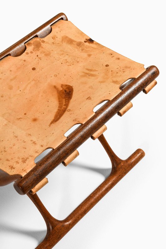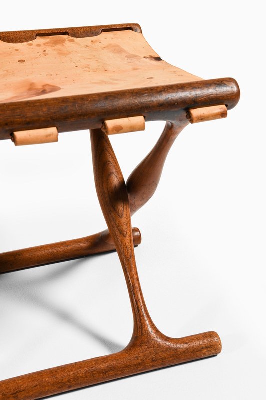 In 1960, Hundevad began production of the Guldhøj Chair (1950s), a reinterpretation of an ancient Nordic folding chair of the same name. The original version was first excavated in 1891 from a burial mound in Vamdrup and is the oldest preserved piece of furniture in Scandinavia, dating back to the Scandinavian Bronze Age, around the second half of the 1400s BC. Working with the National Museum of Denmark where the relic is housed, Hundevad took precise measurements and calculated ways to streamline the design for production. Using four types of wood—oak, teak, wenge, and rosewood—along with leather for the seat, Hundevad’s reproduction was an instant success, producing more than 15,000 copies, which were sold worldwide. The chair is still in production and can be purchased at the National Museum of Denmark’s gift shop.