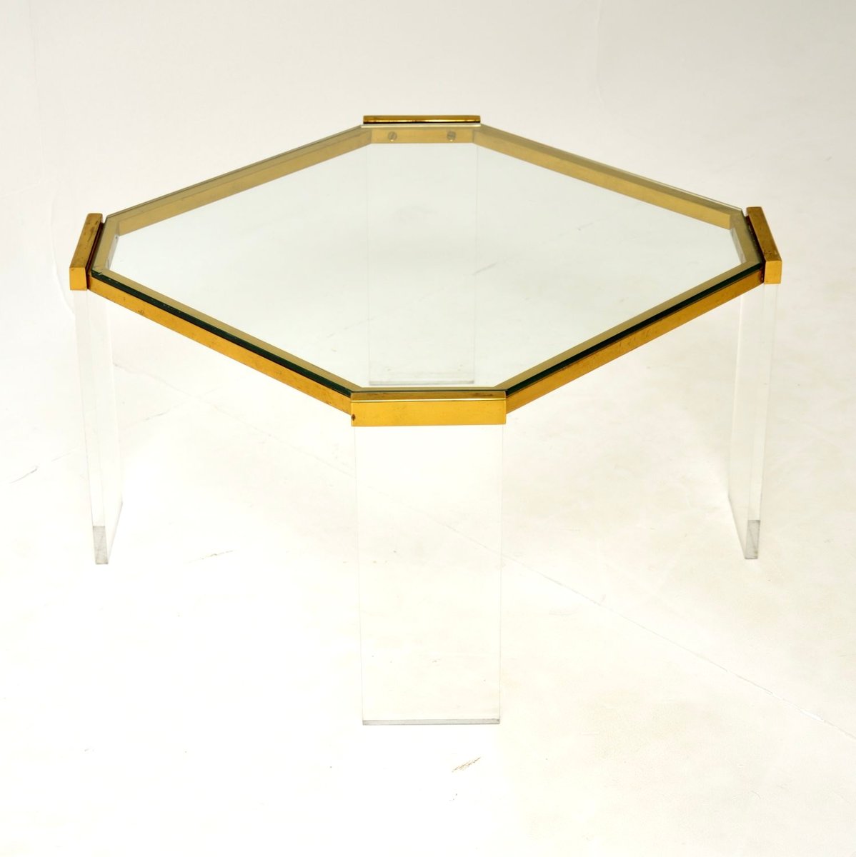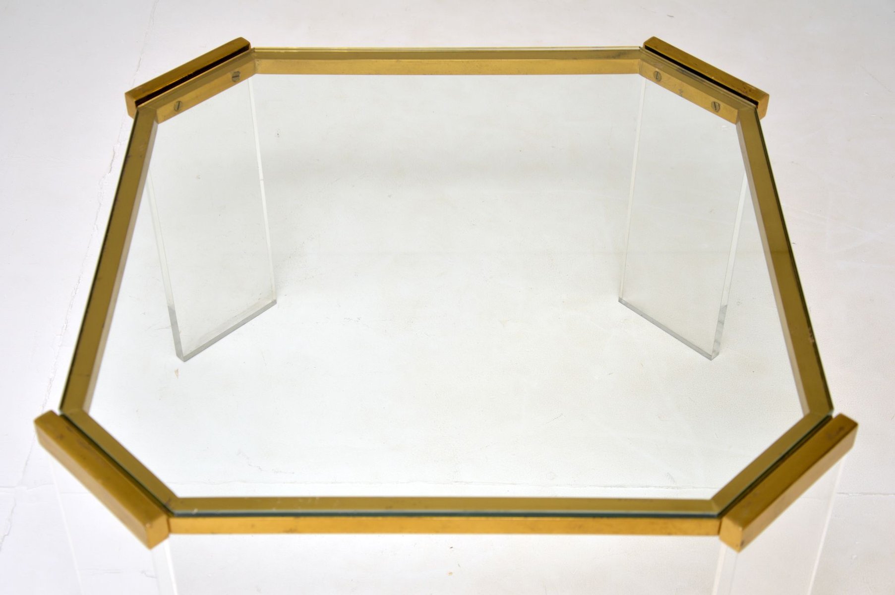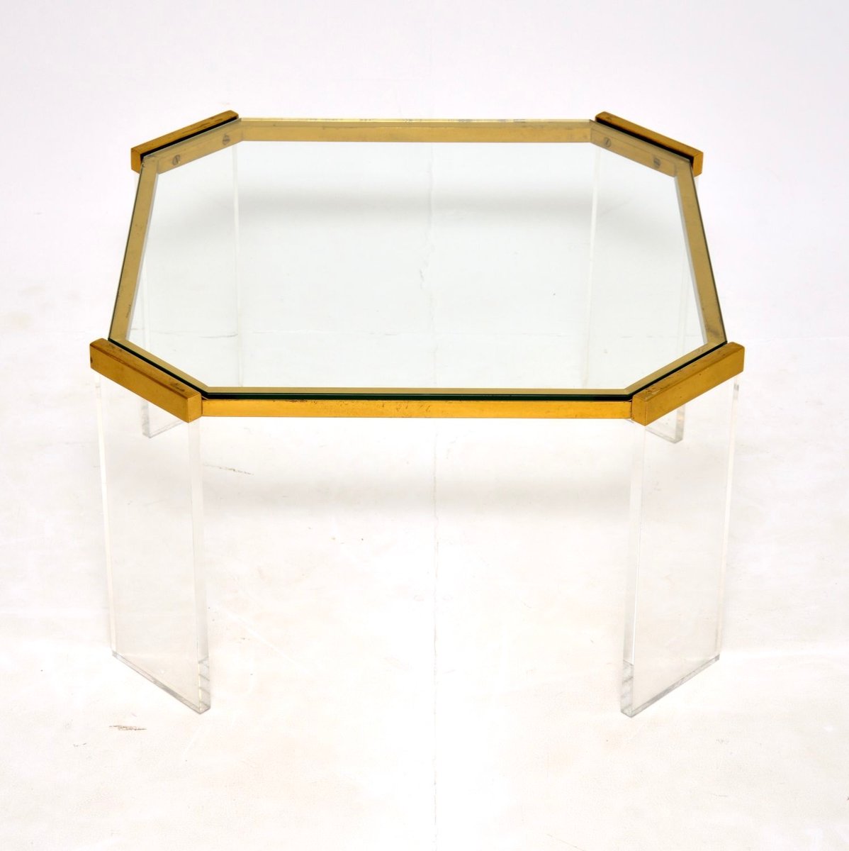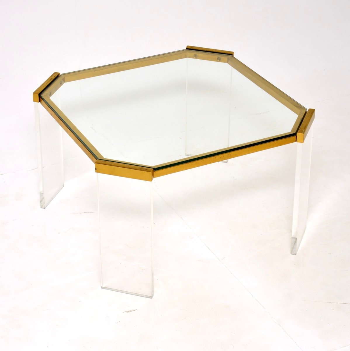 French Brass & Acrylic Coffee Table, 1970s