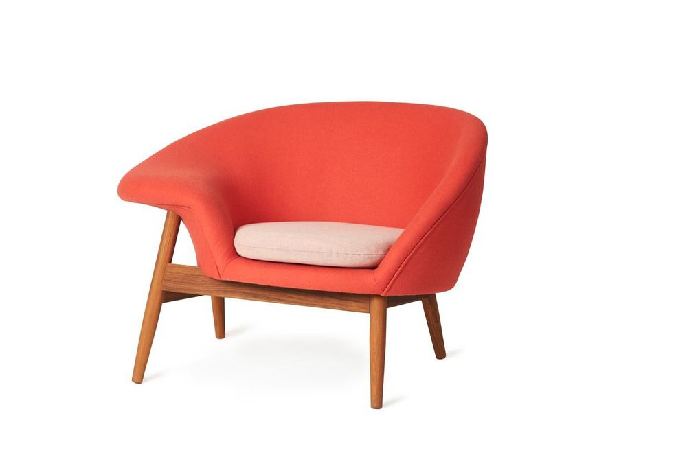 While many his Danish contemporaries—such as Arne Jacobsen, Poul Kjærholm, Børge Mogensen, and Hans Wegner—embraced the “Klint School” of modernism, Olsen was particularly eager to experiment with design and material choices in effort to achieve maximum comfort. Olsen had an affinity for bent laminated wood, which engendered designs with a great freedom of form, both sturdy and lightweight