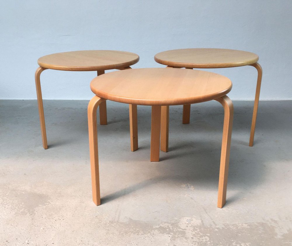Fully Restored Danish Stackable Beech Side Table from Bent Silberg, 1970s