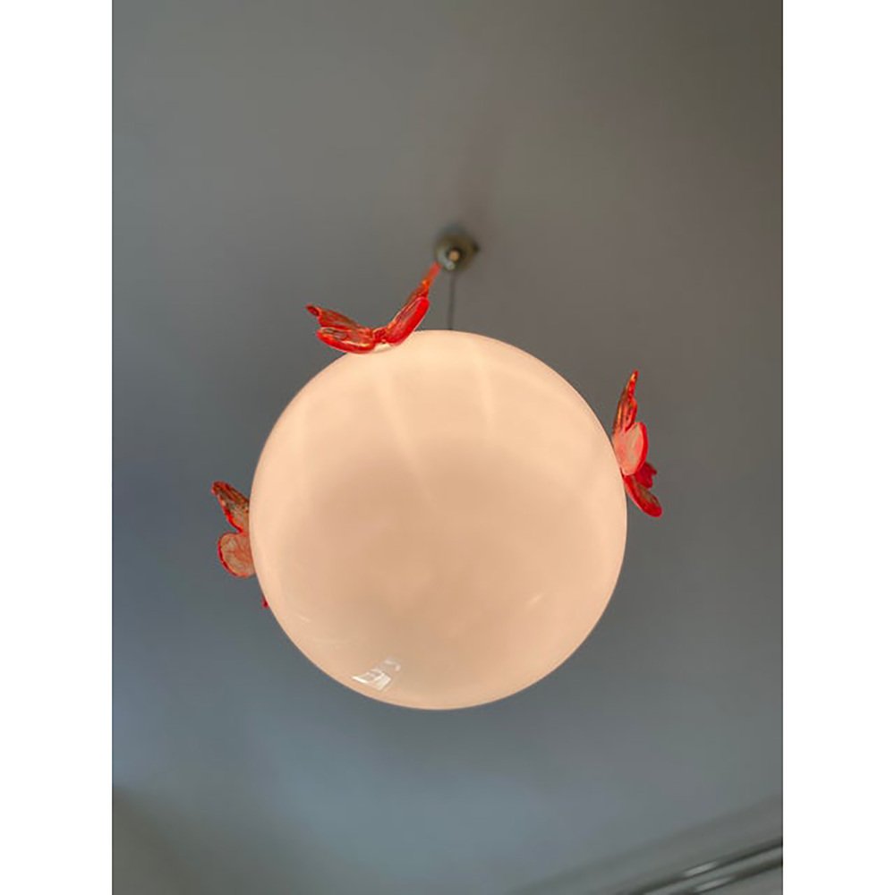 Glass Opalino Pendant with Red Butterfly by Simoeng