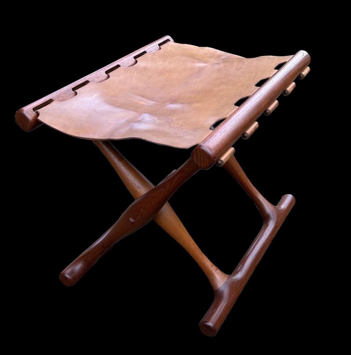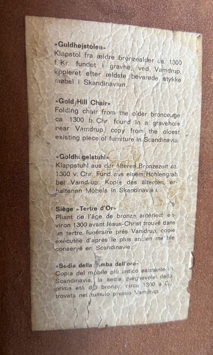 In 1960, Hundevad began production of the Guldhøj Chair (1950s), a reinterpretation of an ancient Nordic folding chair of the same name. The original version was first excavated in 1891 from a burial mound in Vamdrup and is the oldest preserved piece of furniture in Scandinavia, dating back to the Scandinavian Bronze Age, around the second half of the 1400s BC. Working with the National Museum of Denmark where the relic is housed, Hundevad took precise measurements and calculated ways to streamline the design for production. Using four types of wood—oak, teak, wenge, and rosewood—along with leather for the seat, Hundevad’s reproduction was an instant success, producing more than 15,000 copies, which were sold worldwide. The chair is still in production and can be purchased at the National Museum of Denmark’s gift shop.