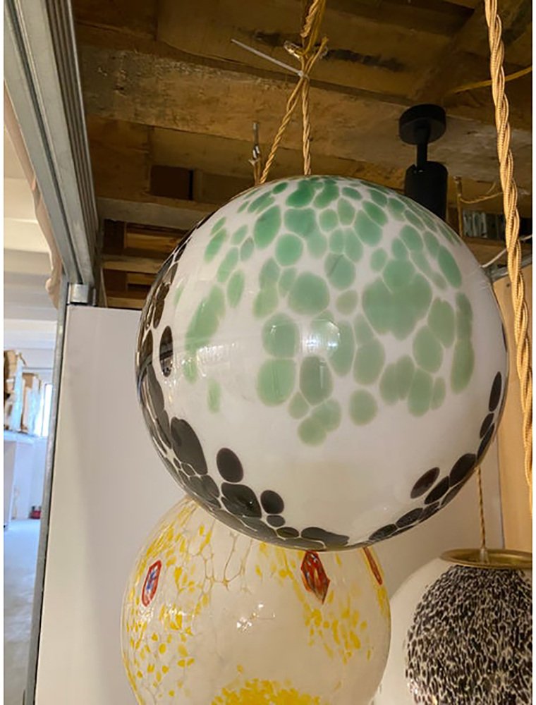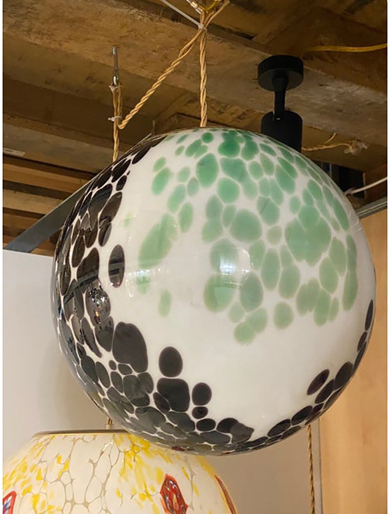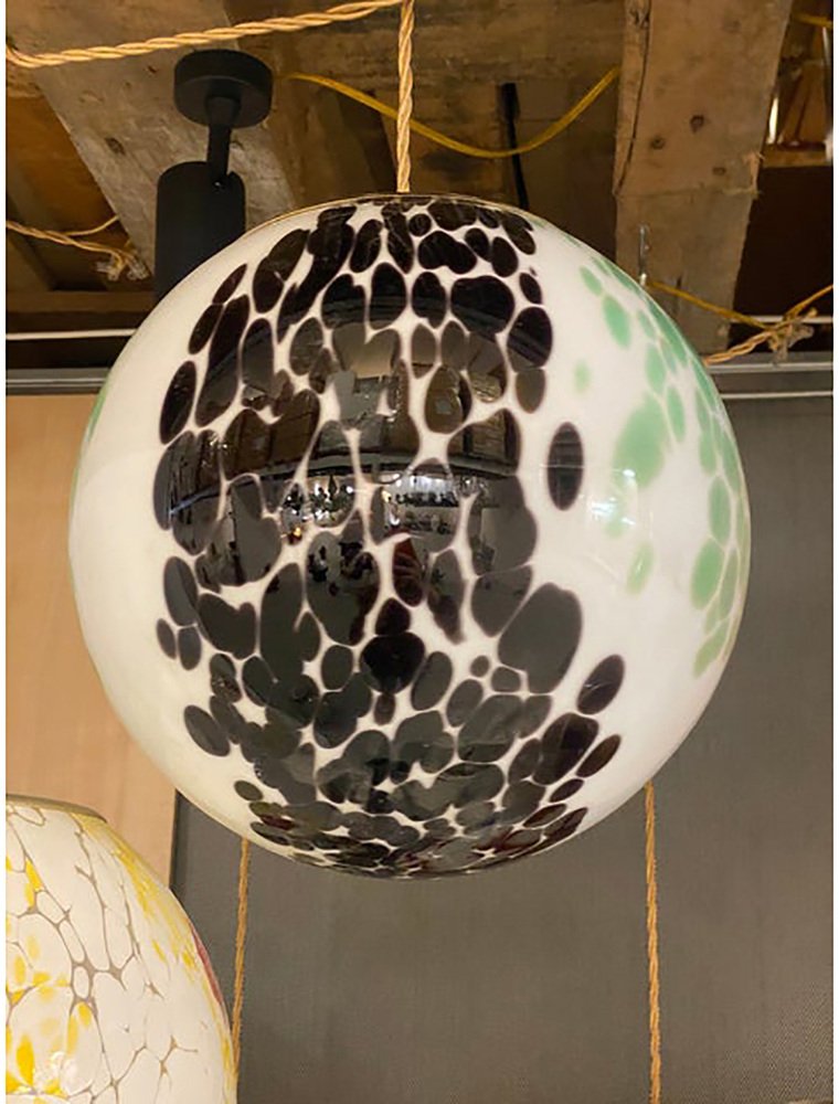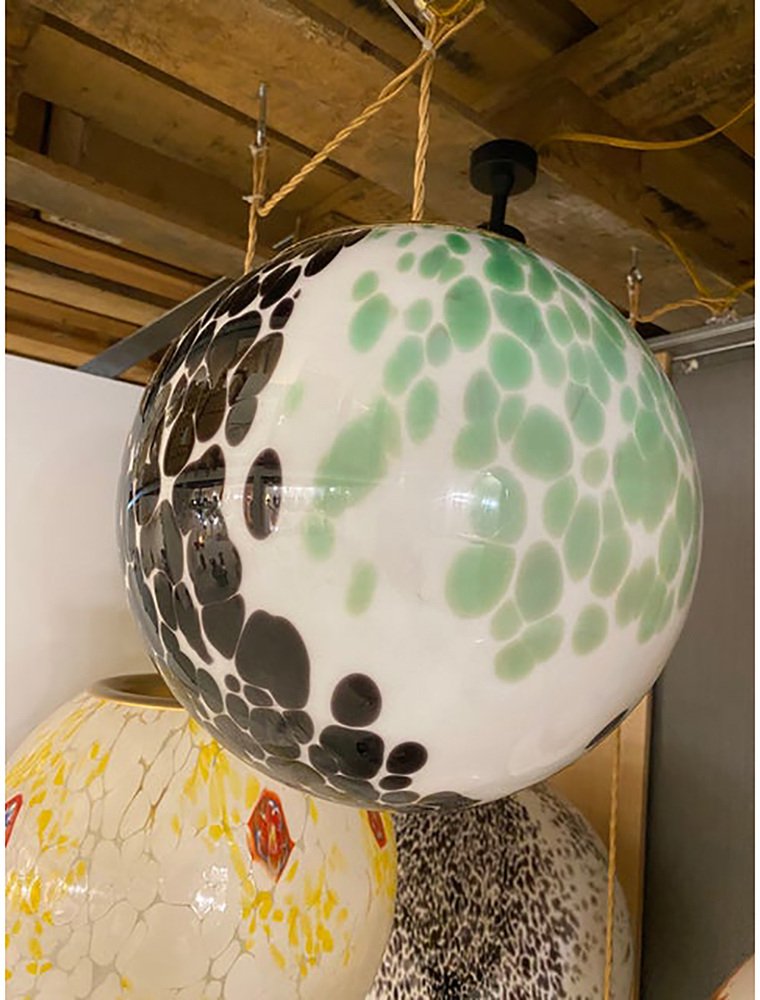 Green and Black Murrine Sphere in Murano Glass by Simoeng