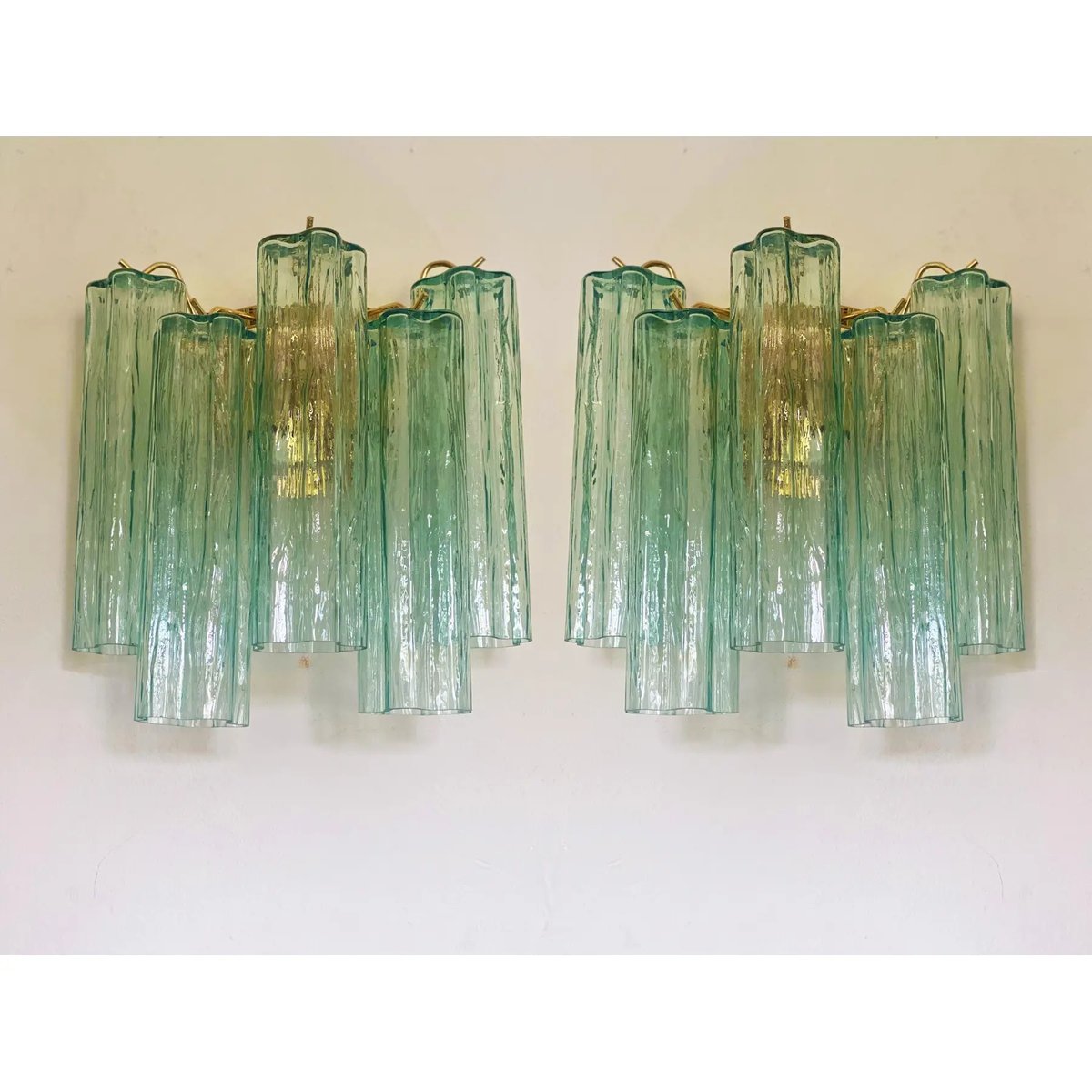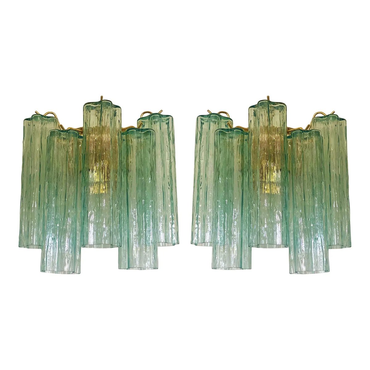 Green Tronchi Murano Glass Wall Sconces, Set of 2