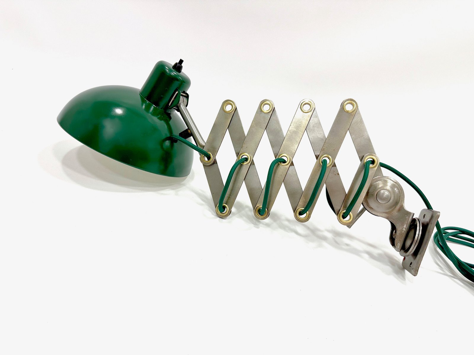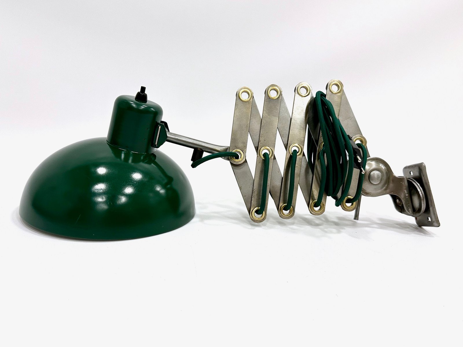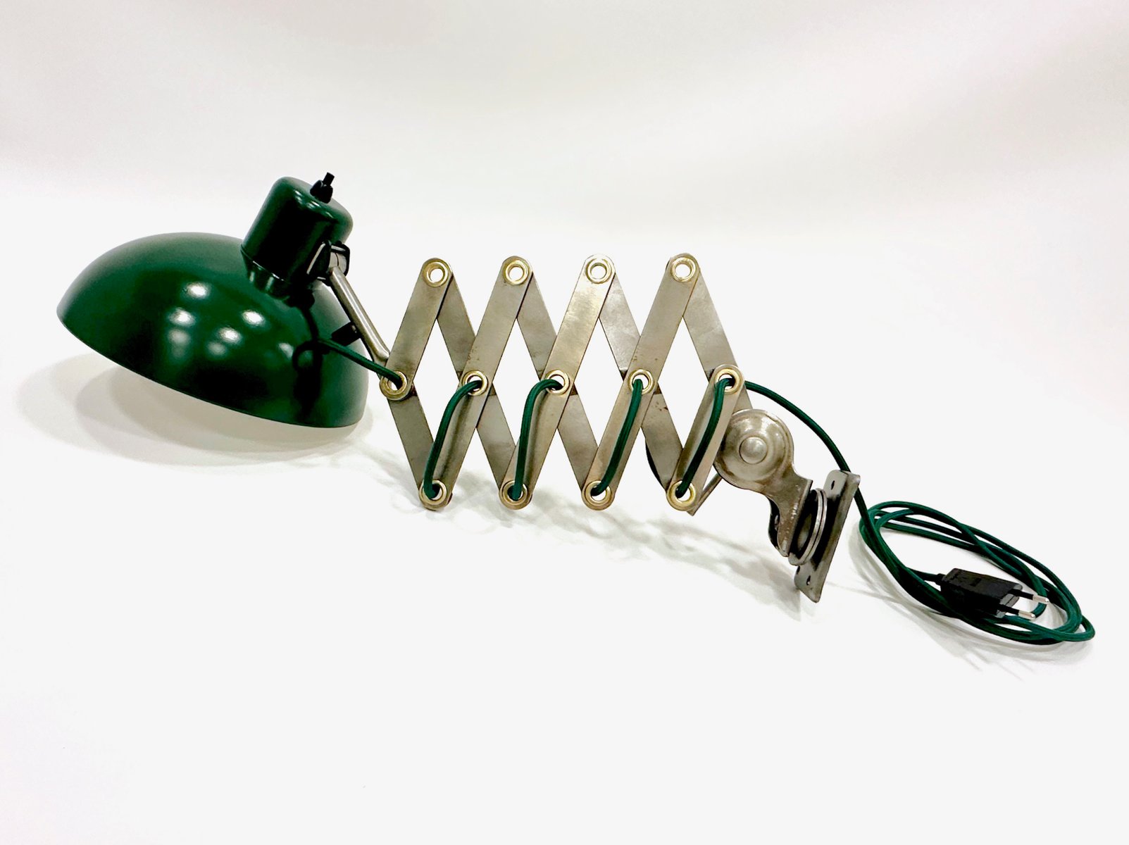 Industrial Dark Green Scissor Wall Lamp, 1950s