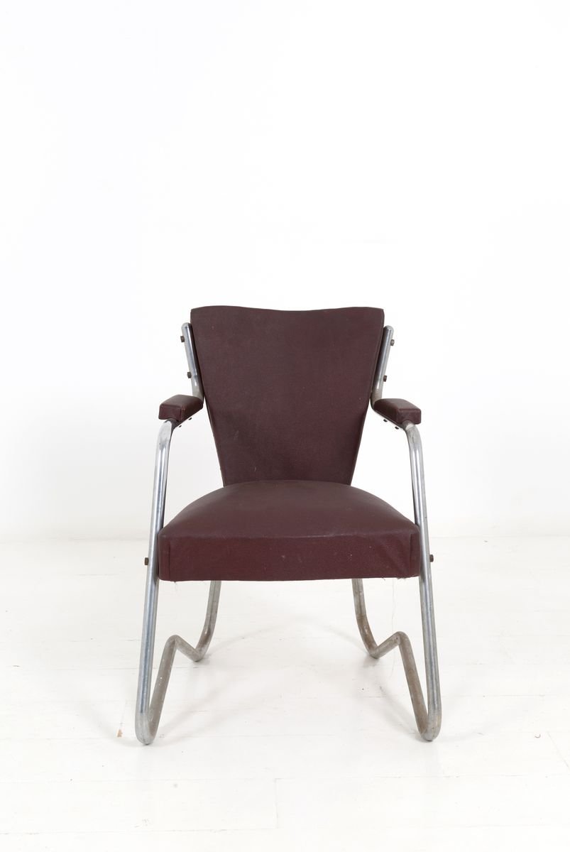 Italian Aluminum and Brown Leatherette Lounge Chair, 1950s