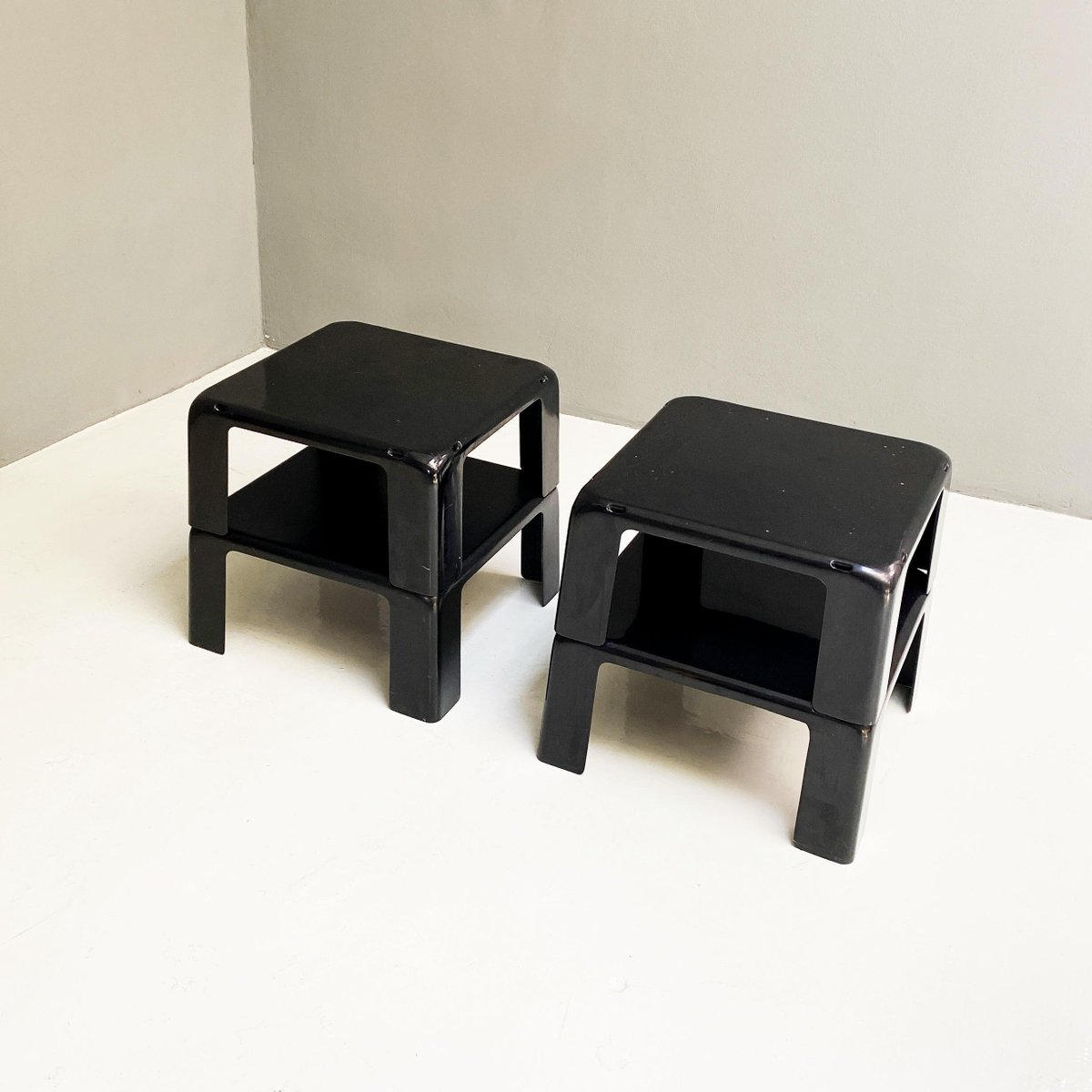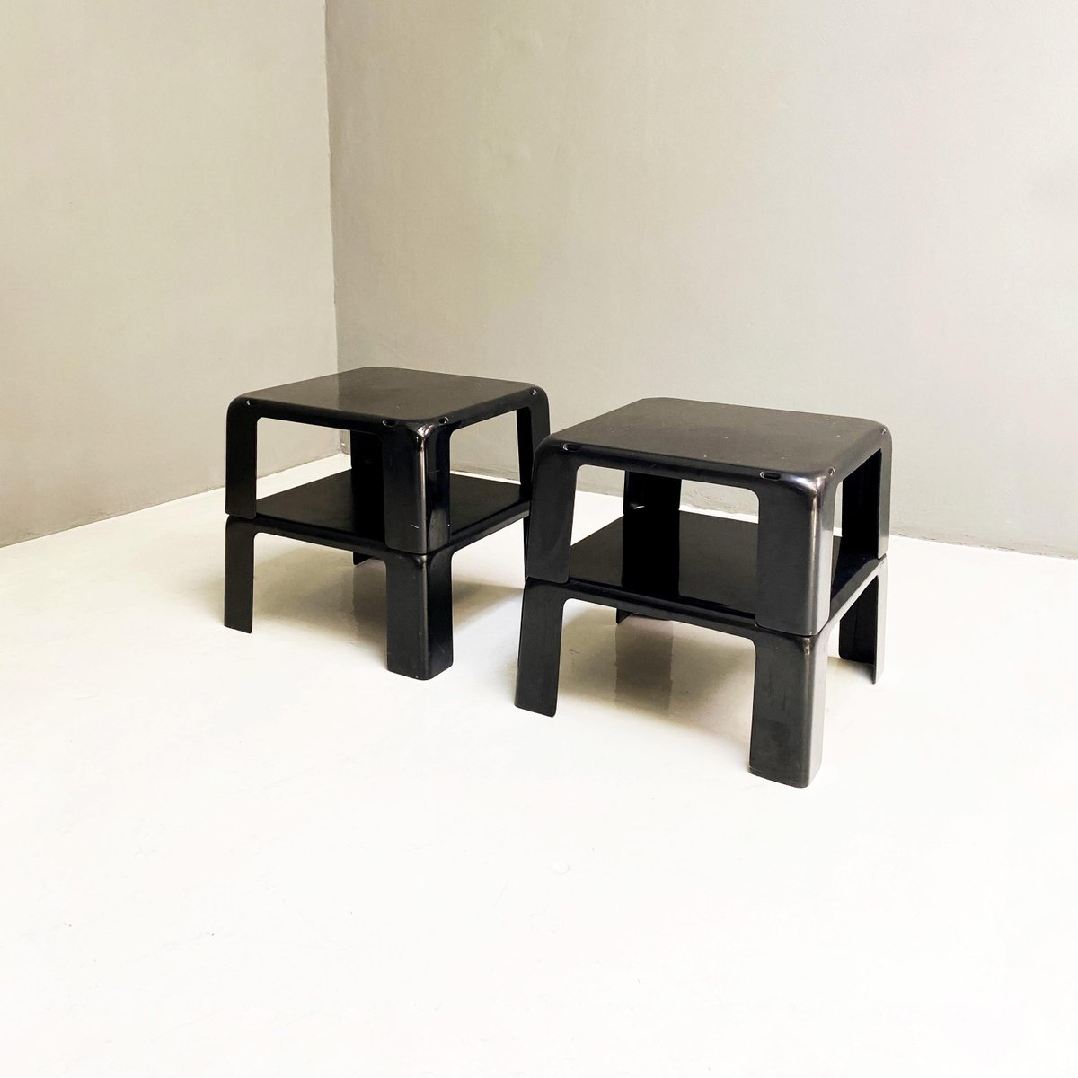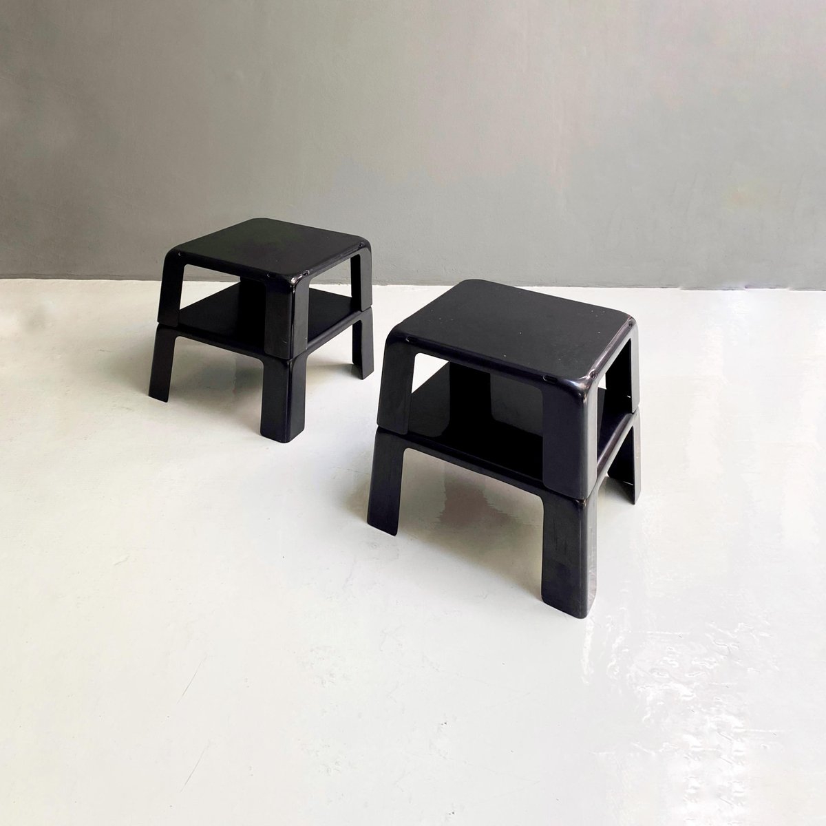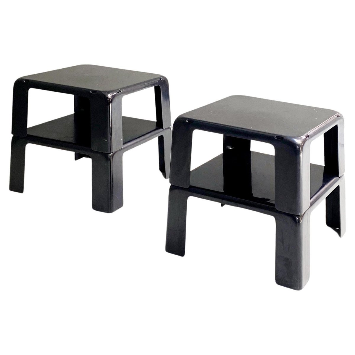 Set of Italian Post Modern Black Metal and Plastic Chairs, 1980s