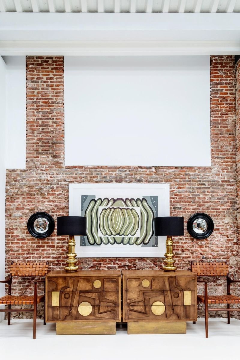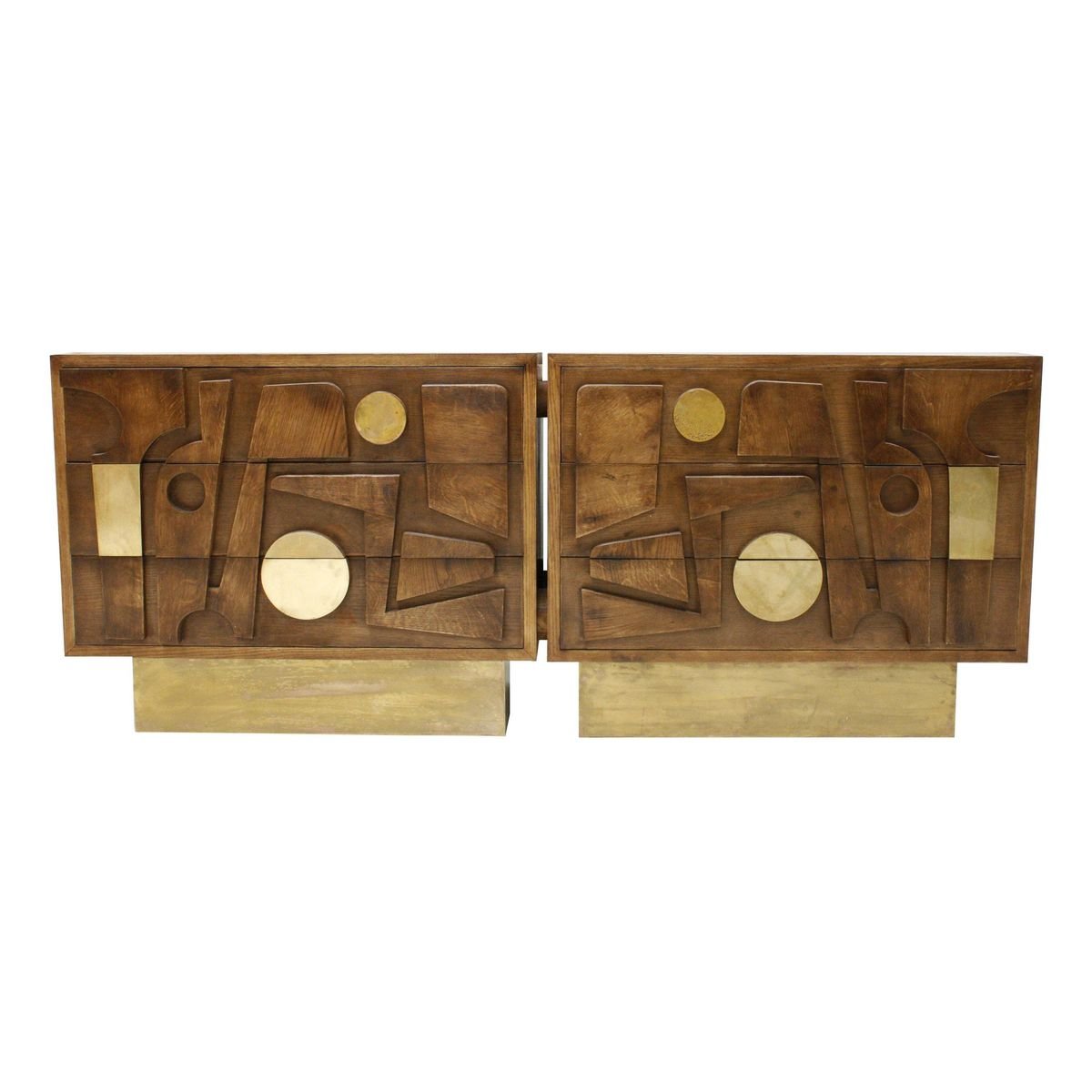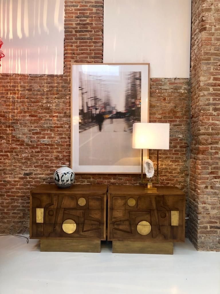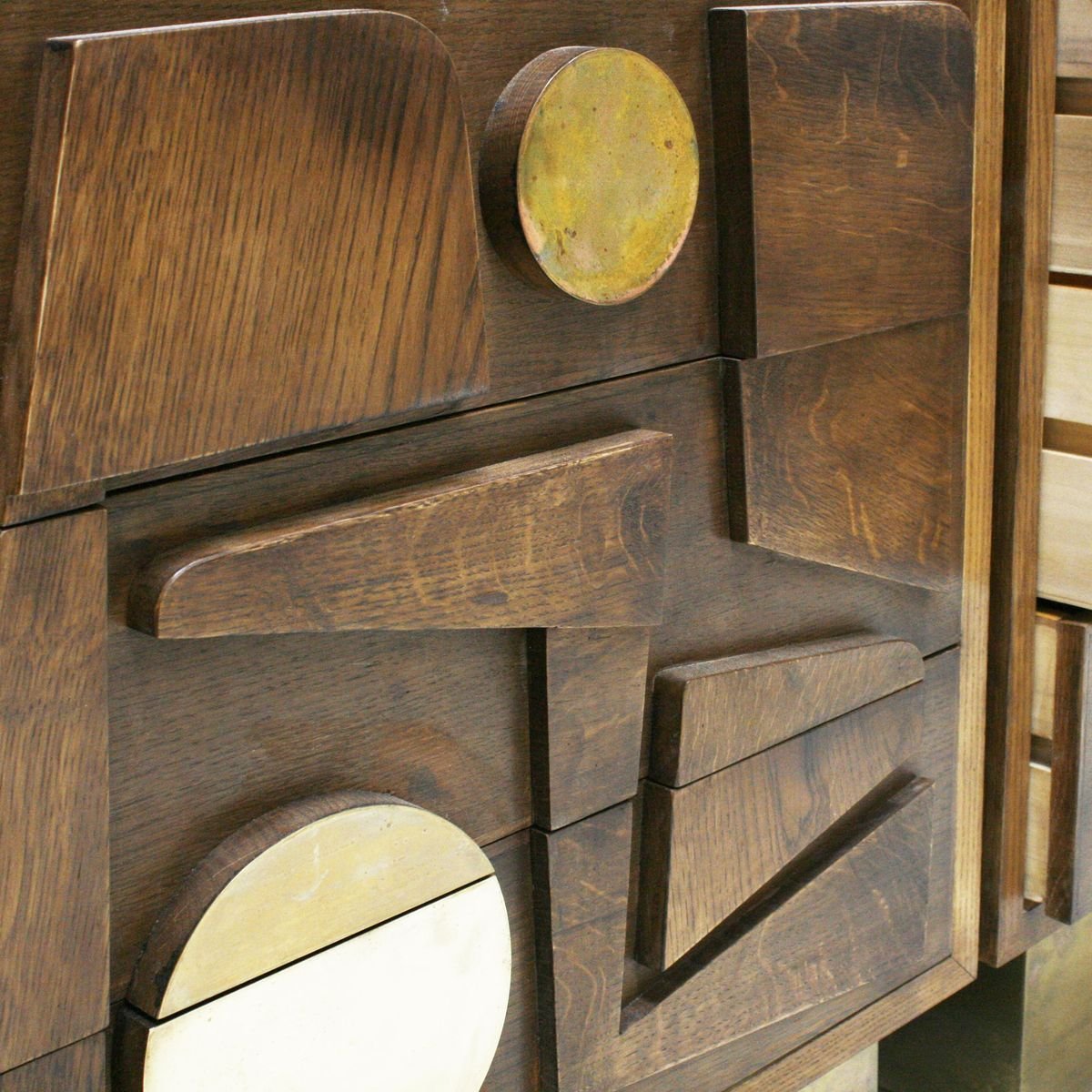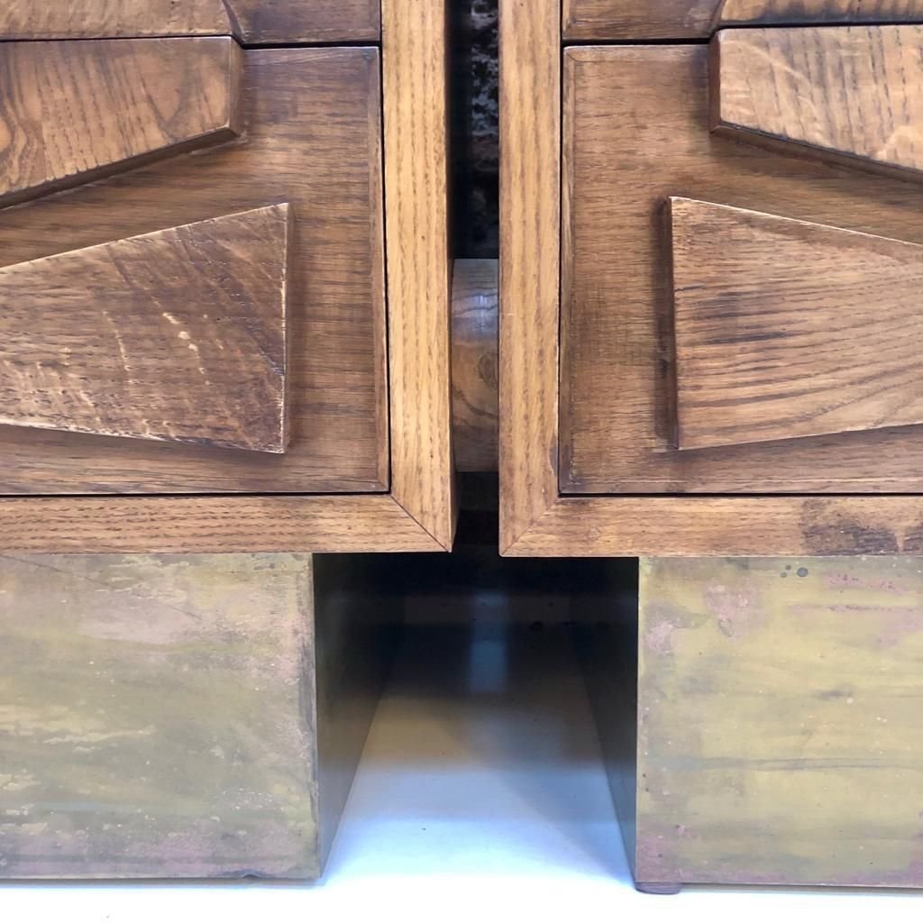 Italian Brutalist Brass and Oak Wood Sideboard from LA Studio