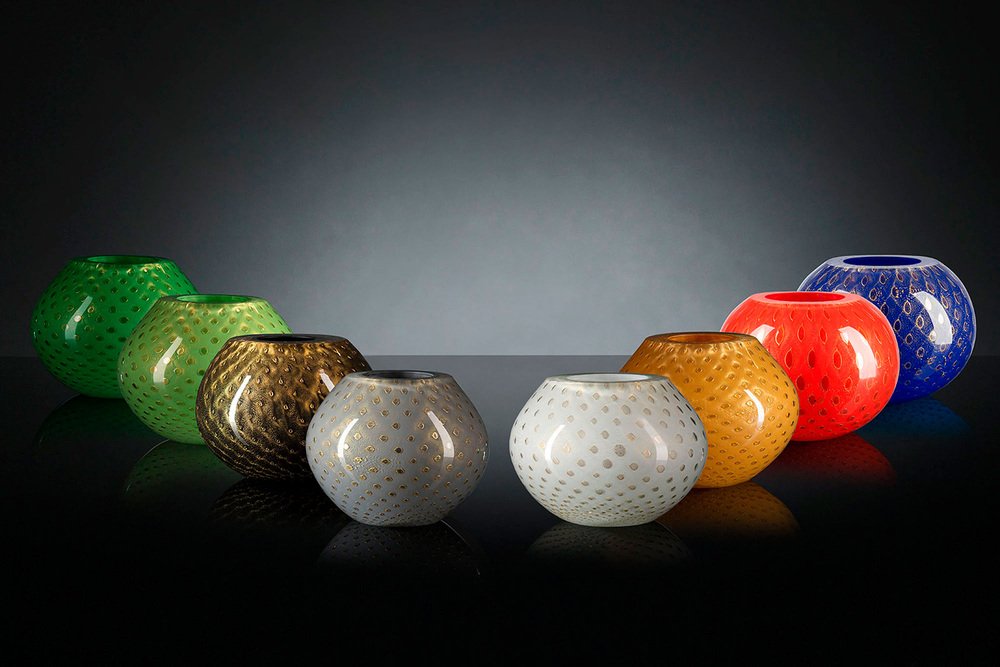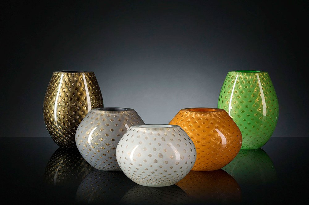 Italian Gold and White Sphere Murano Glass Mocenigo Vase by Marco Segantin for VGnewtrend