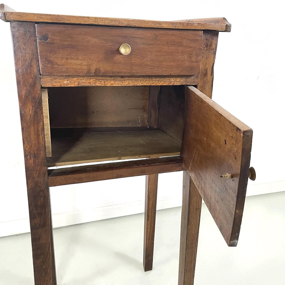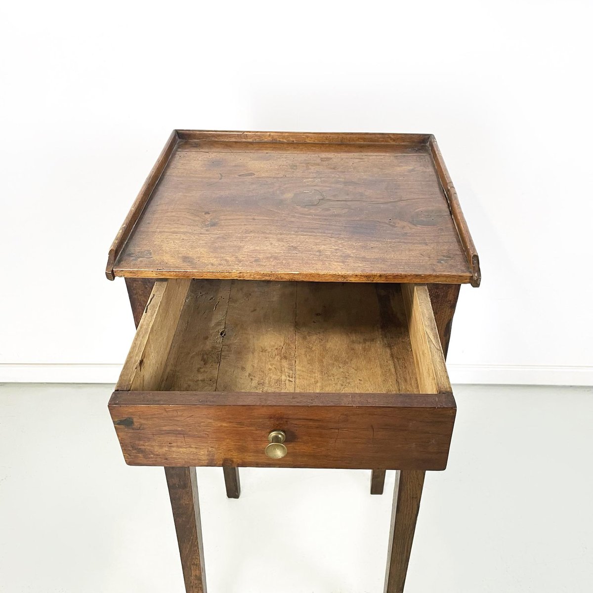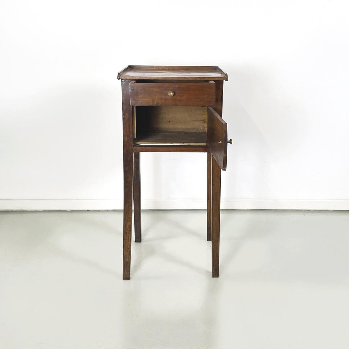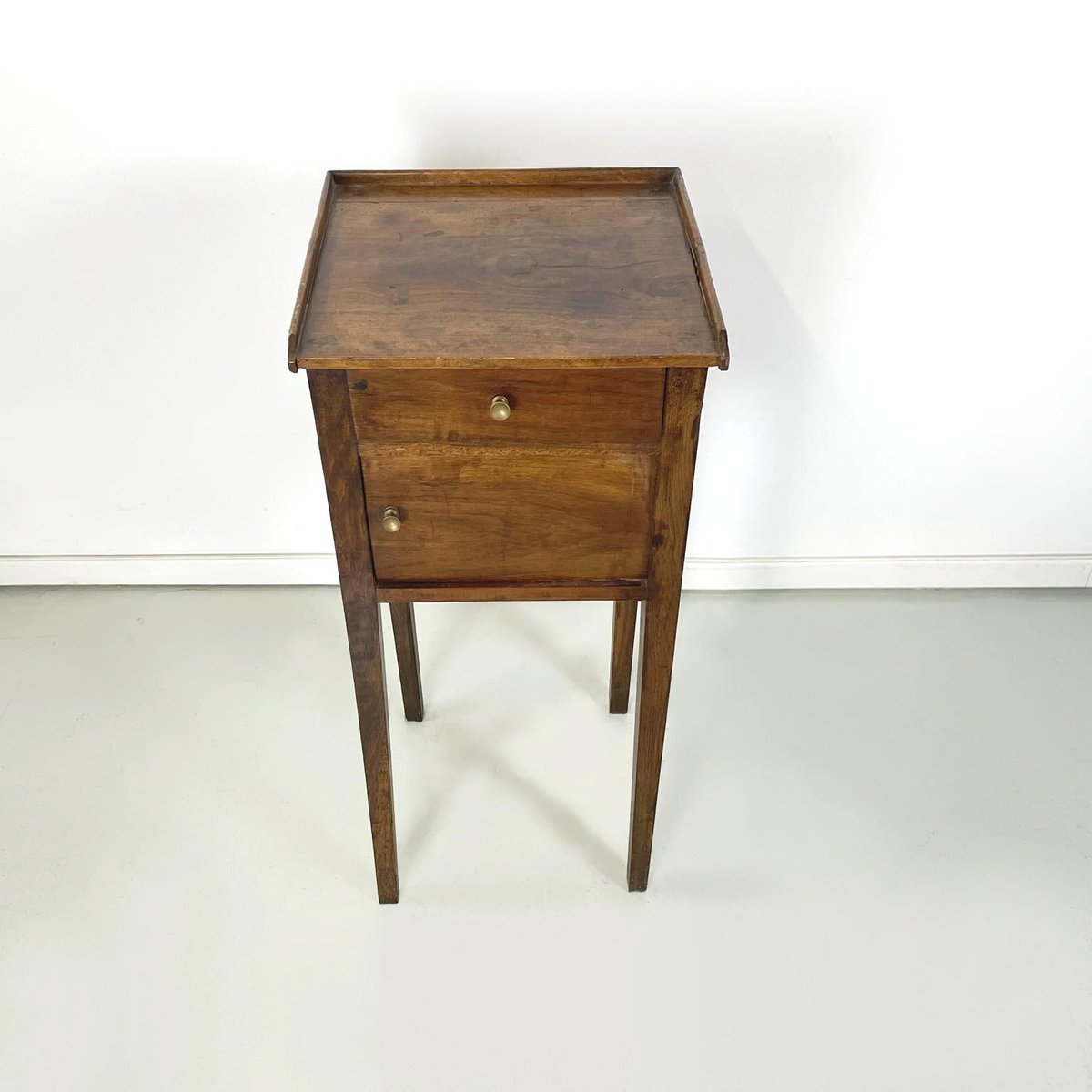 Italian Wooden Bedside Table with Brass Handle, 1890s
