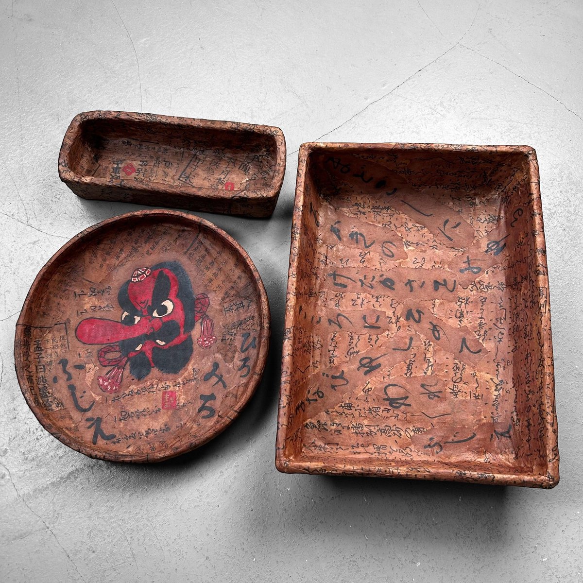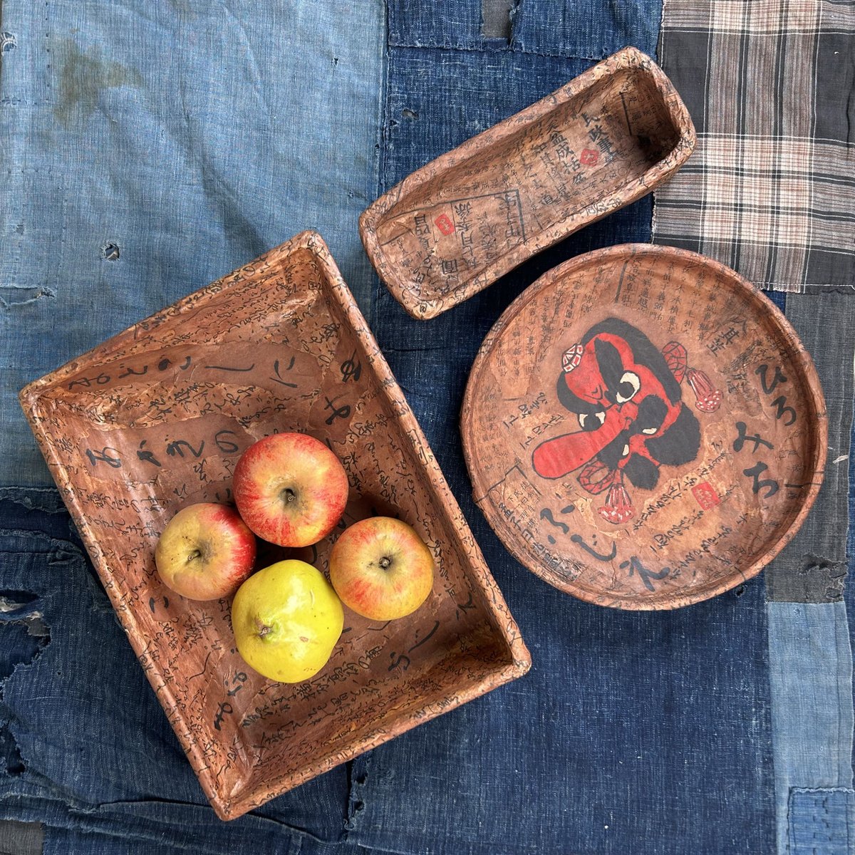 Japanese Bamboo Baskets with Washi, 1930s, Set of 3
