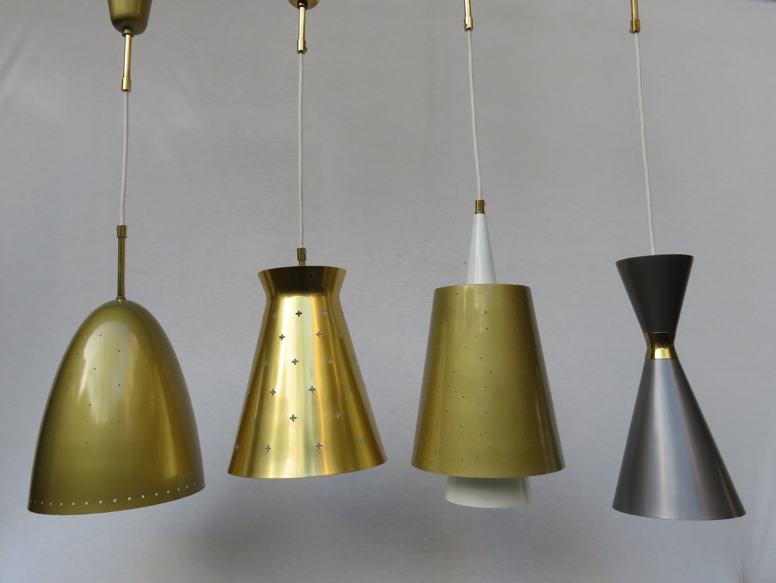 Lacquered Alumnium and Brass Ceiling Lamps, 1950s, Set of 4