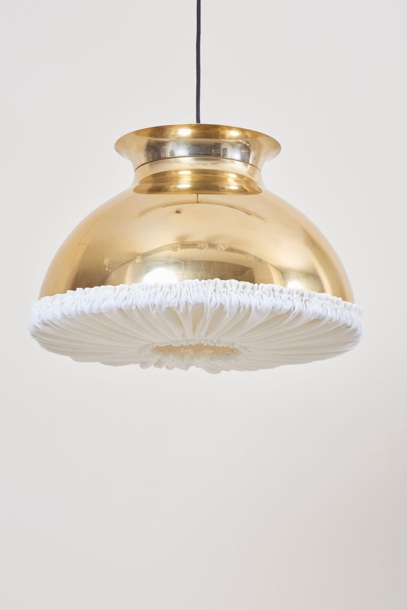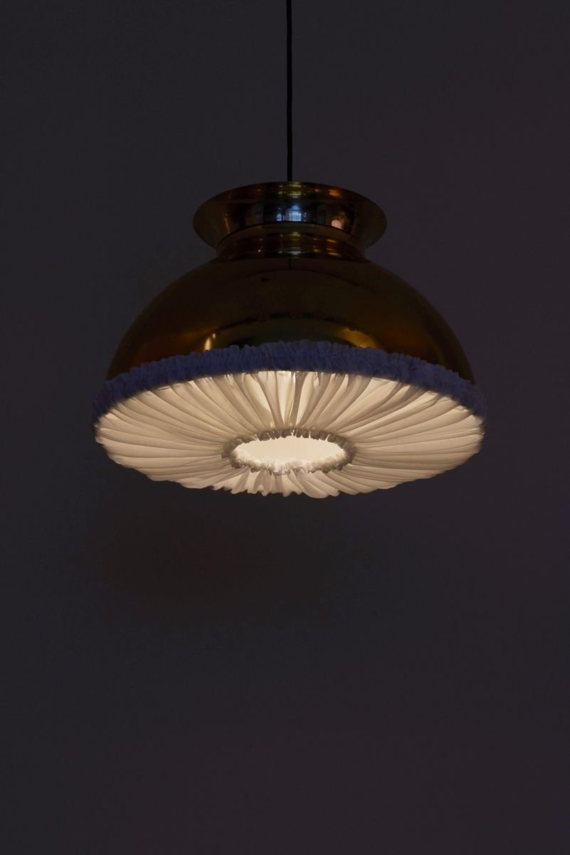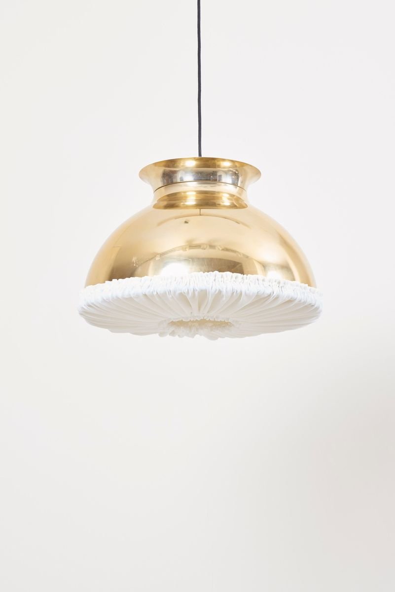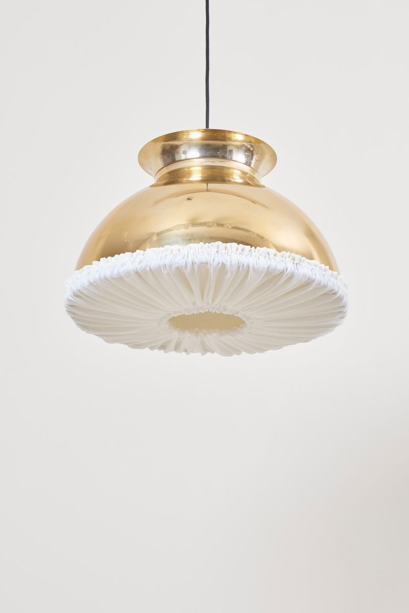 Large Brass Pendant Lamp with Fabric, 1970s