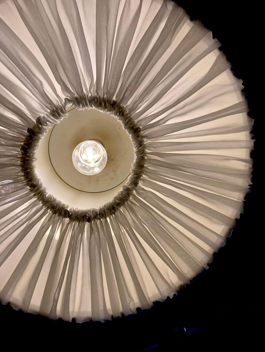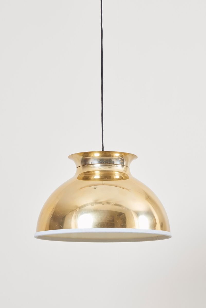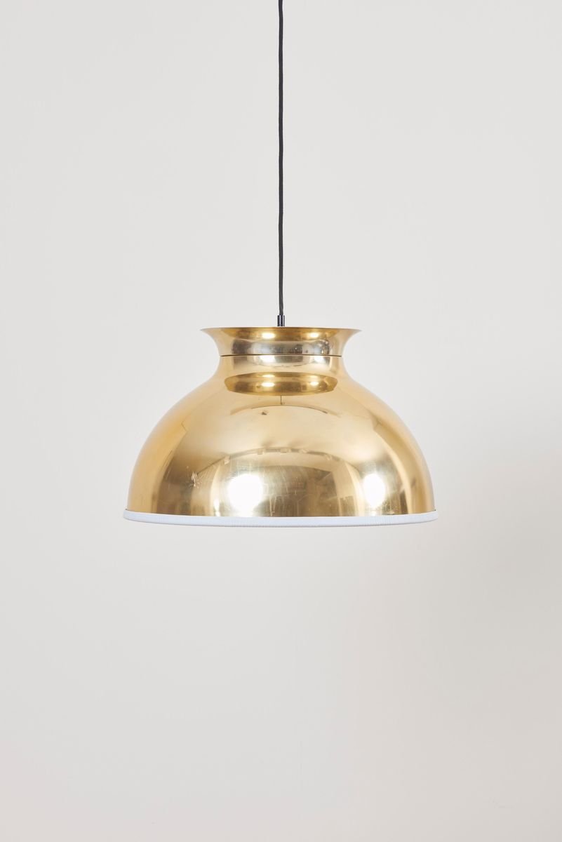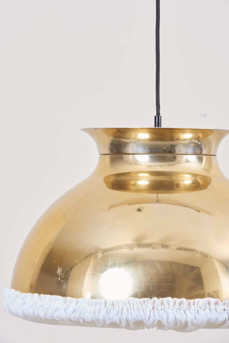 Large Brass Pendant Lamp with Fabric, 1970s