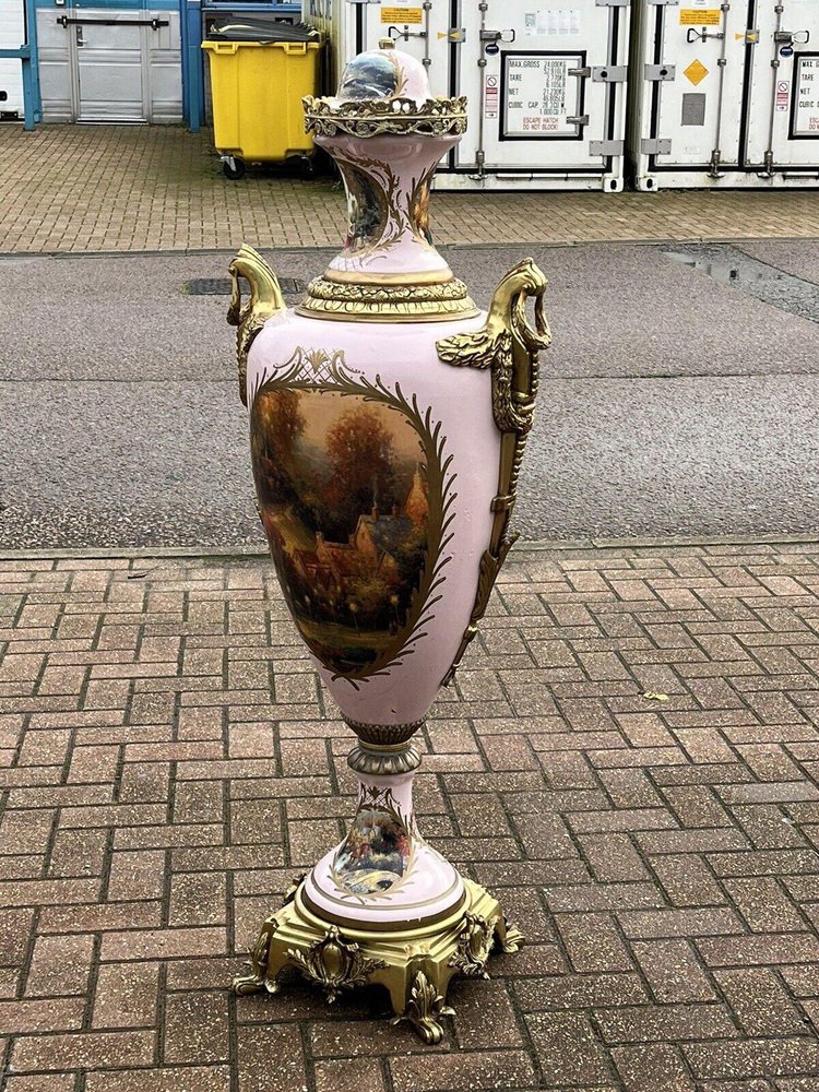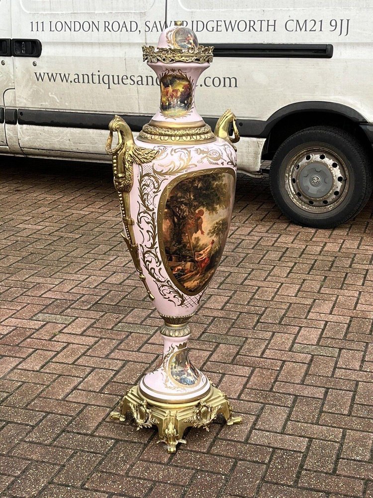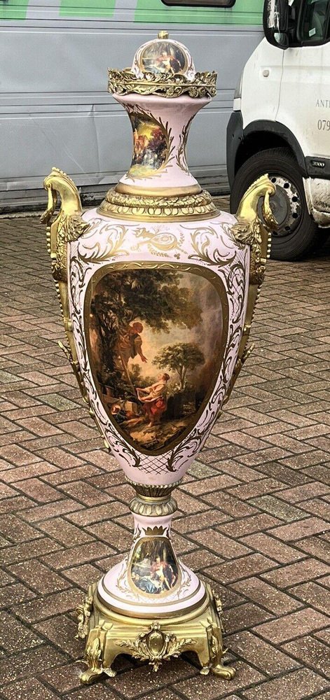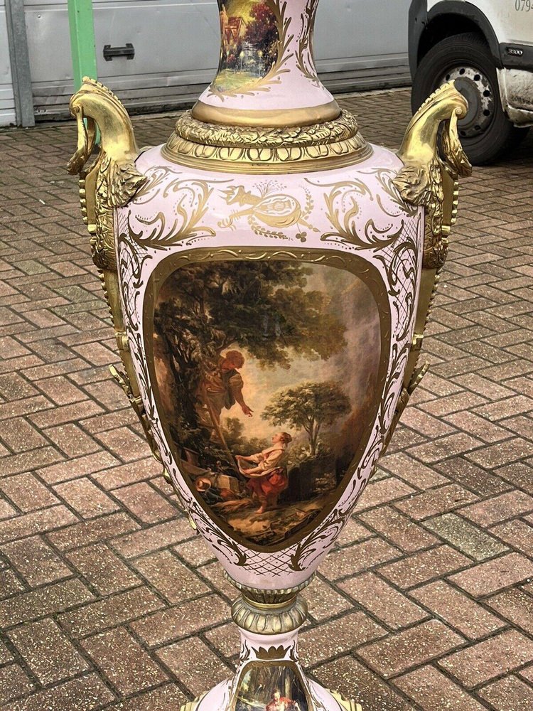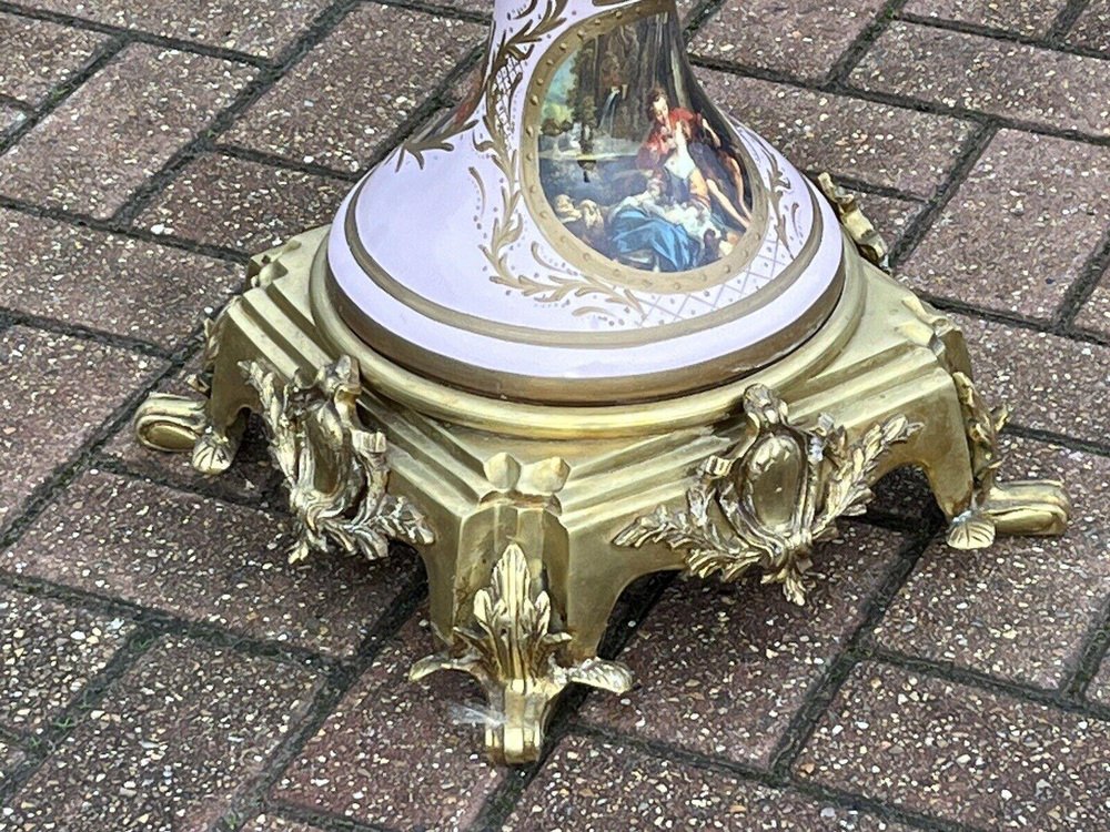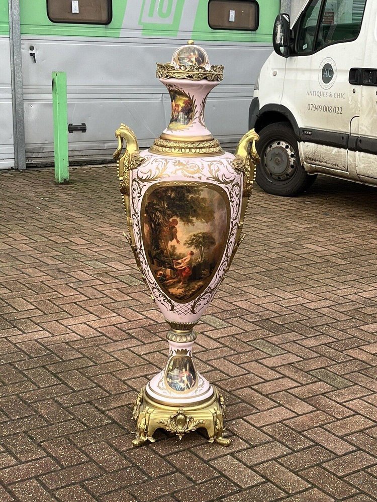 Large Freestanding Ormolu Mounted & Porcelain Lidded Urn