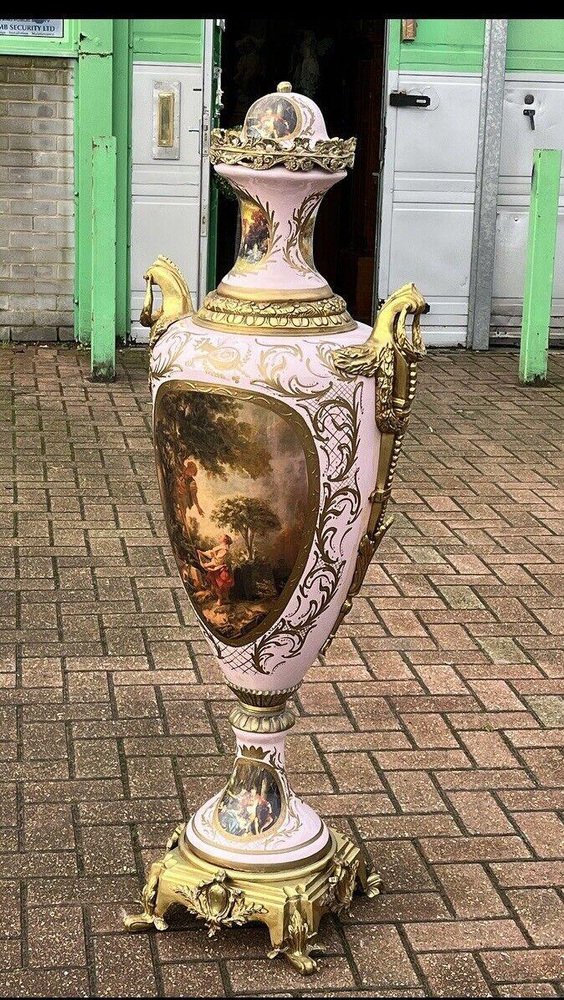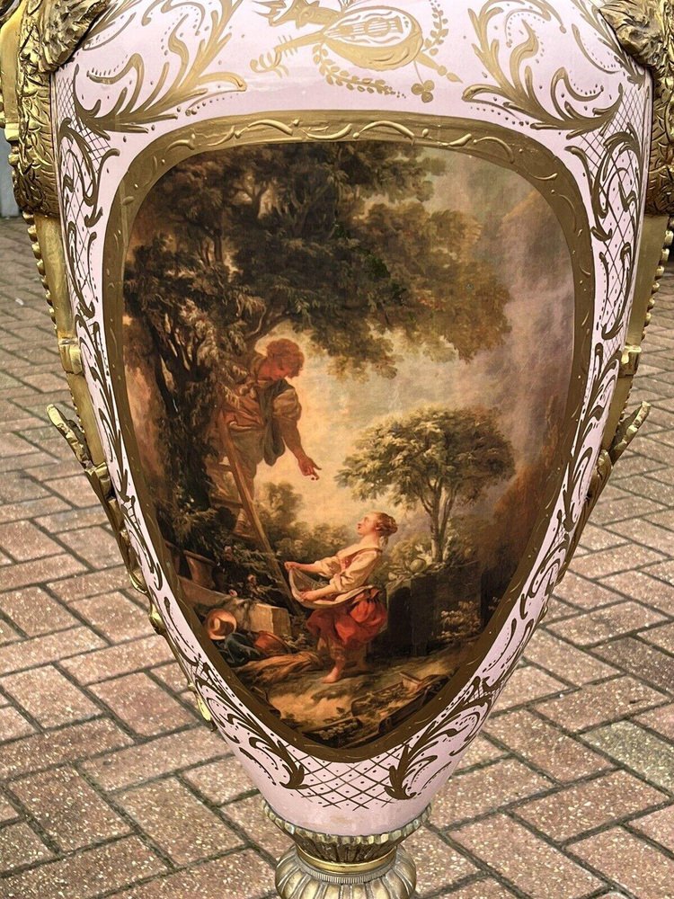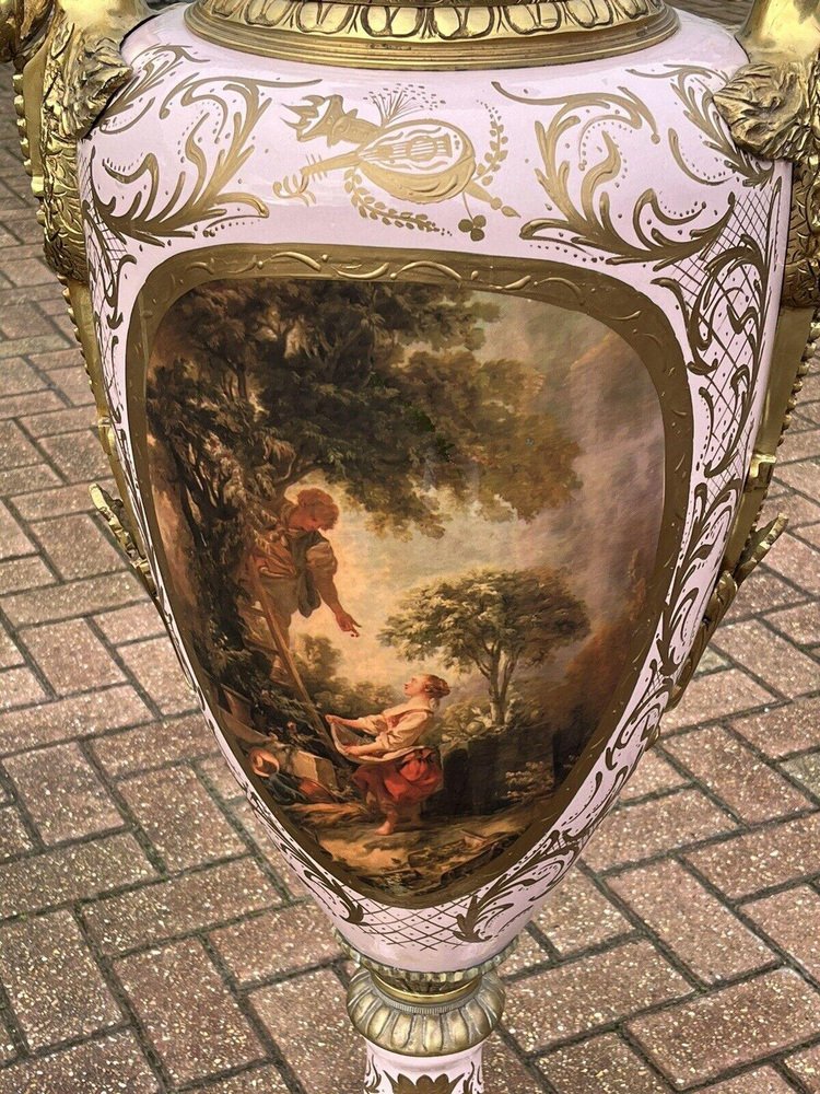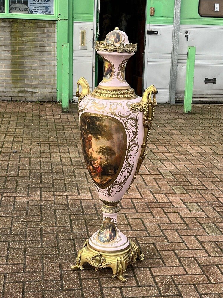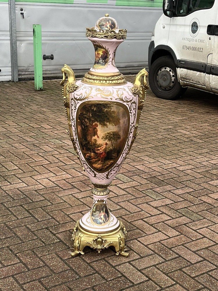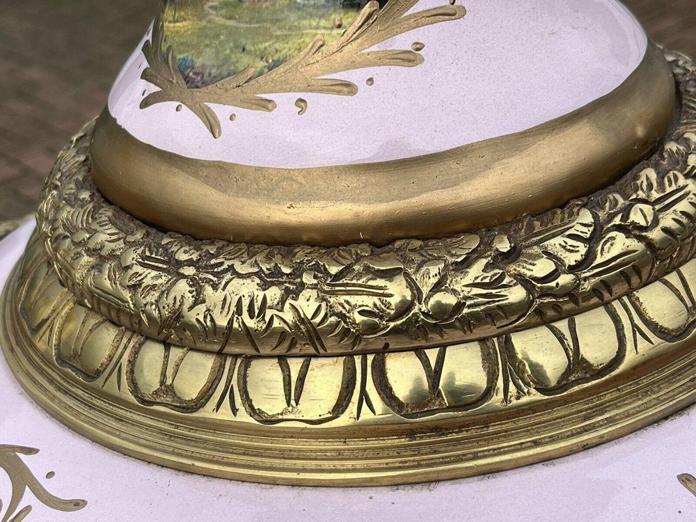 Large Freestanding Ormolu Mounted & Porcelain Lidded Urn