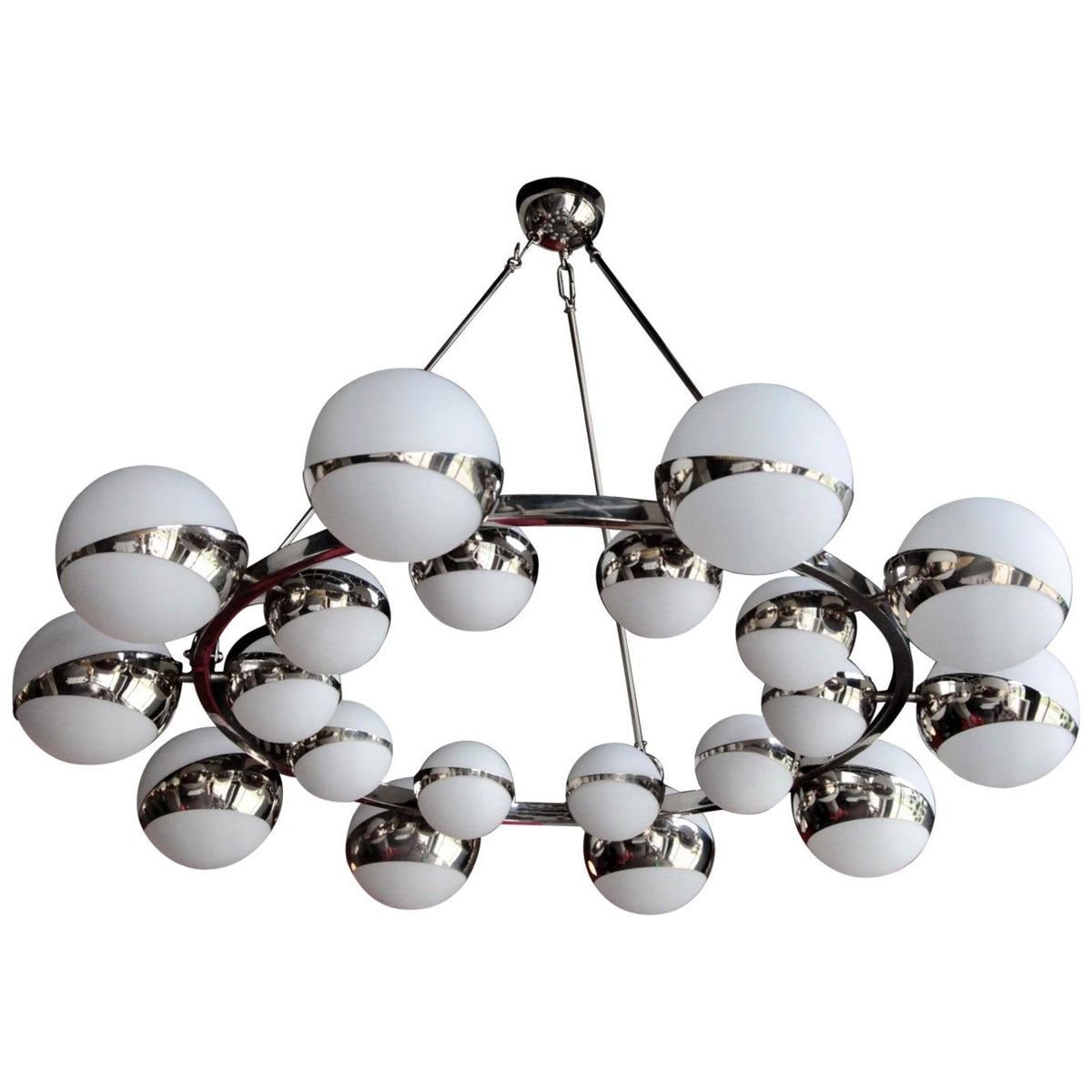 Large Glass and Chrome Chandelier in the Style of Stilnovo, 2000s