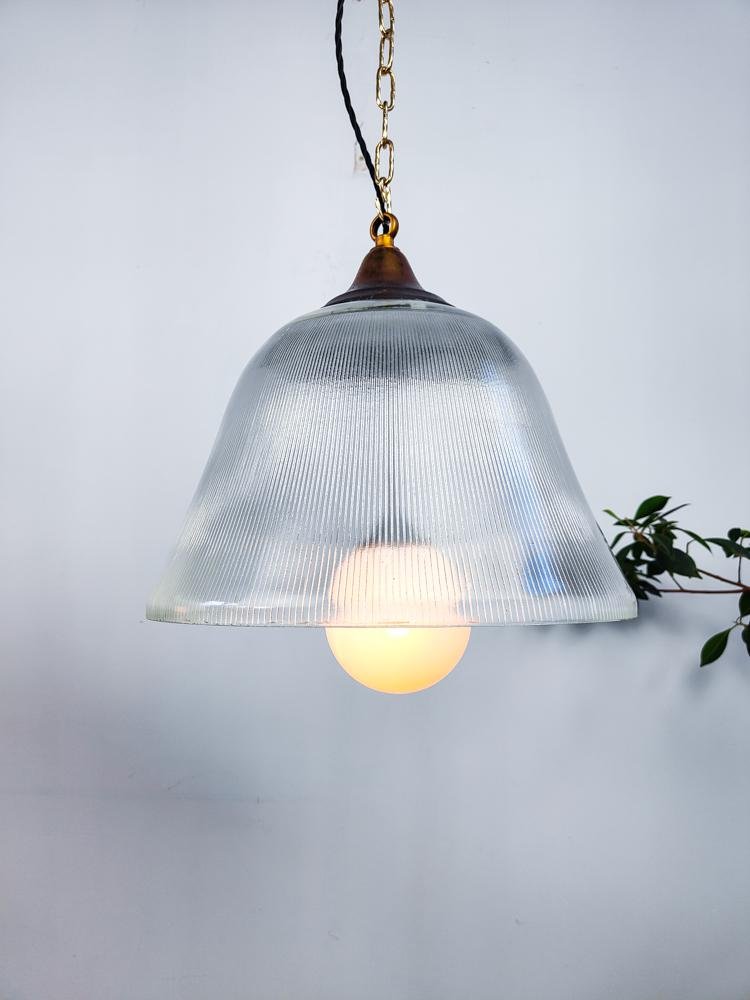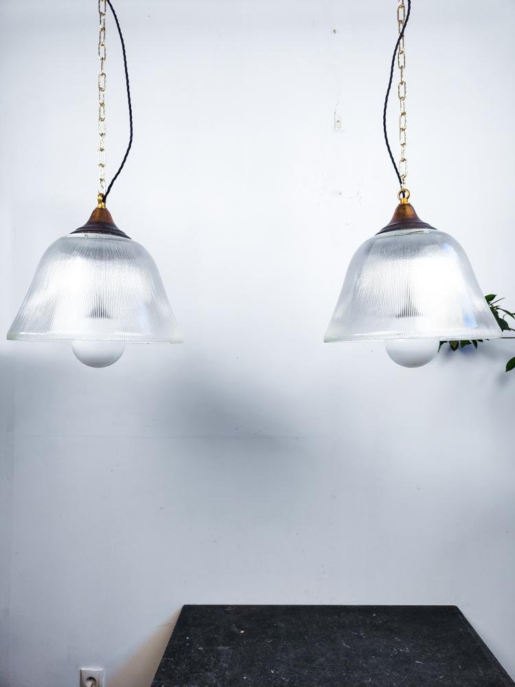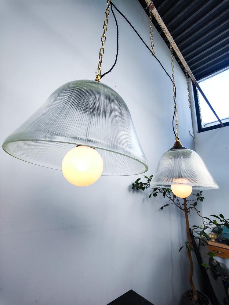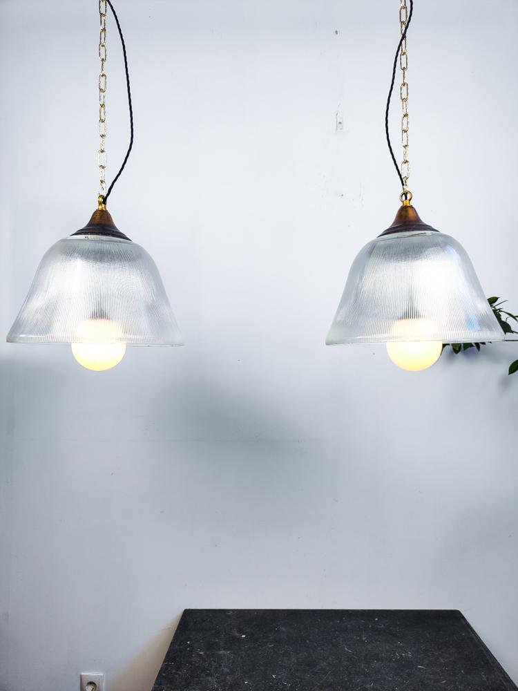 Large Holophane and Opaline Glass Pendant Lights, 1970s