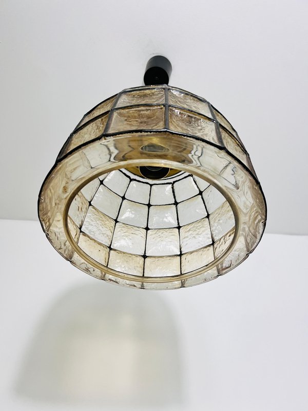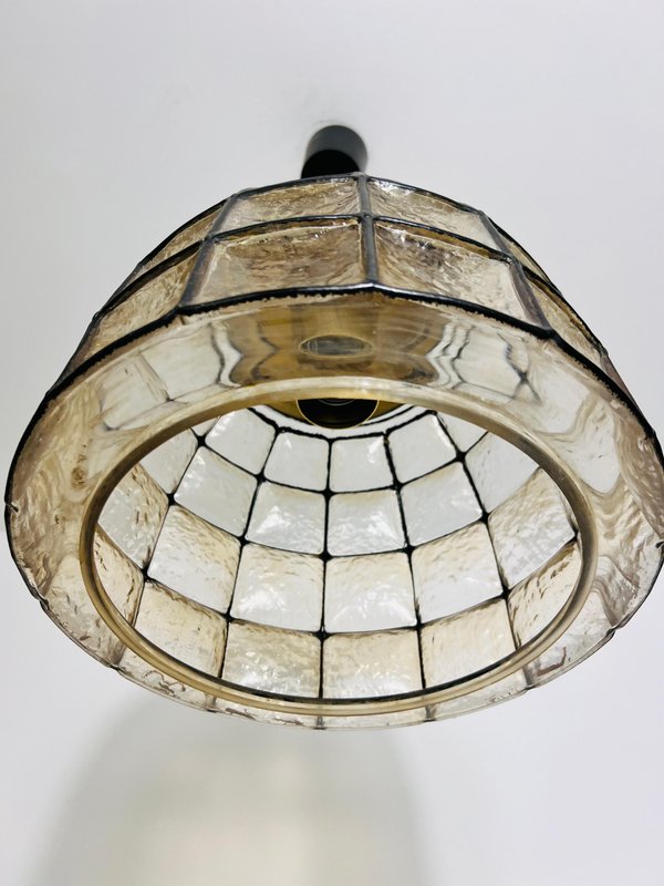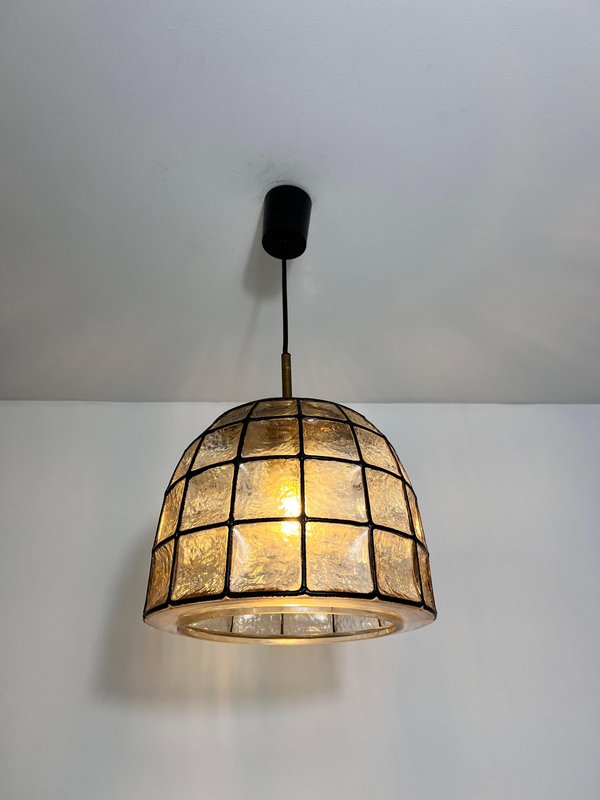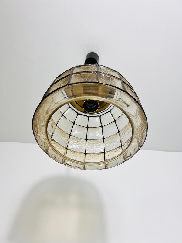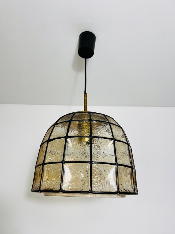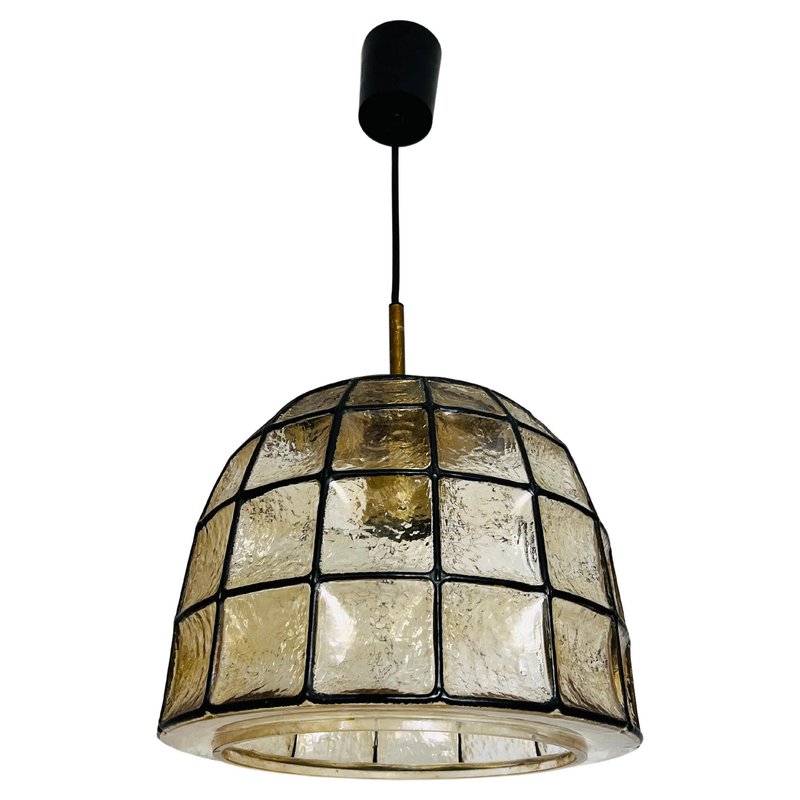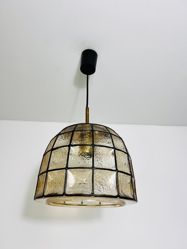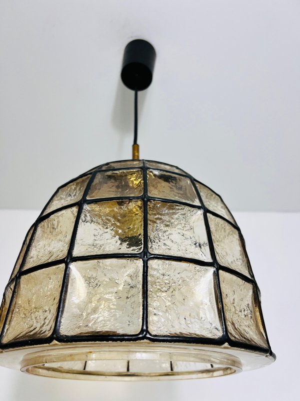 Large Mid-Century Iron and Glass Pendant Lamp attributed to Glashütte Limburg, 1960s