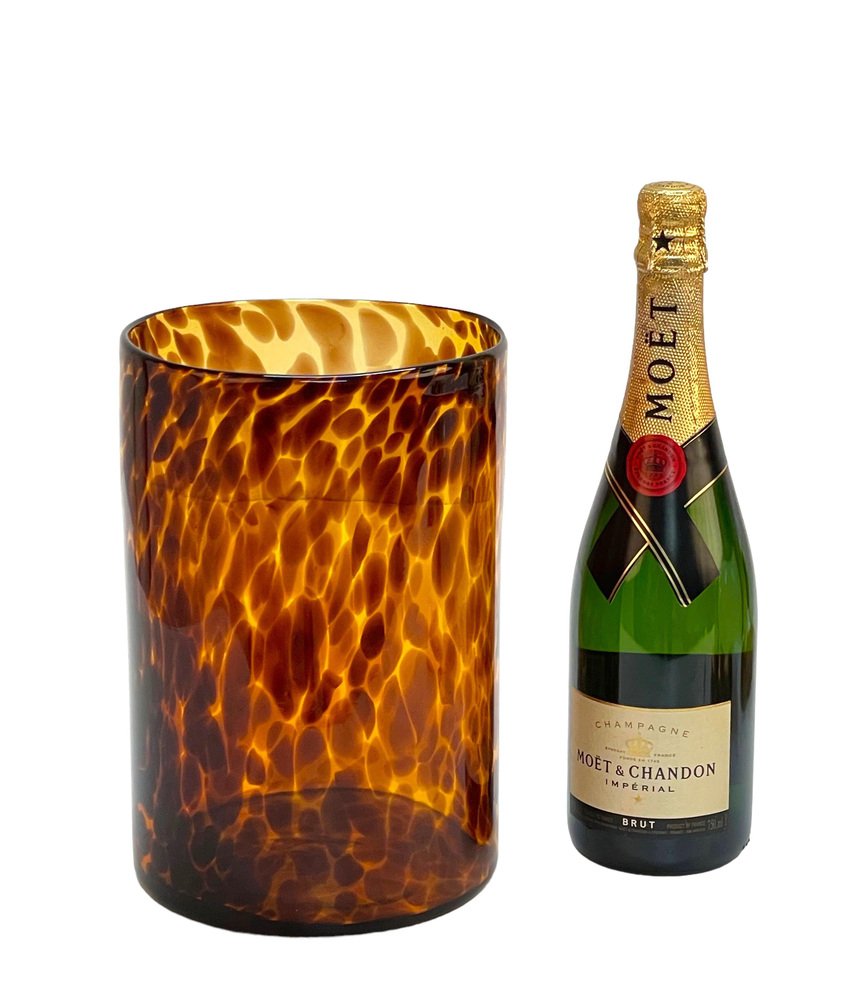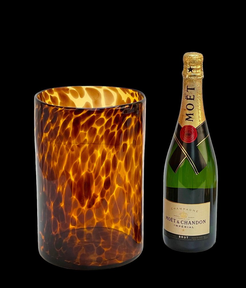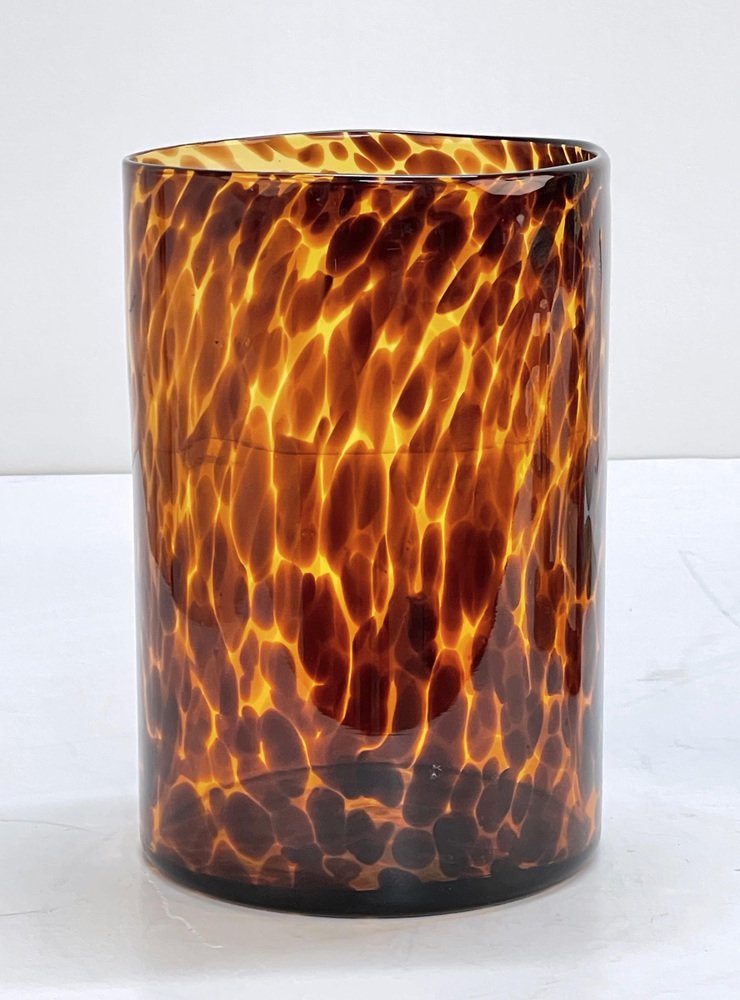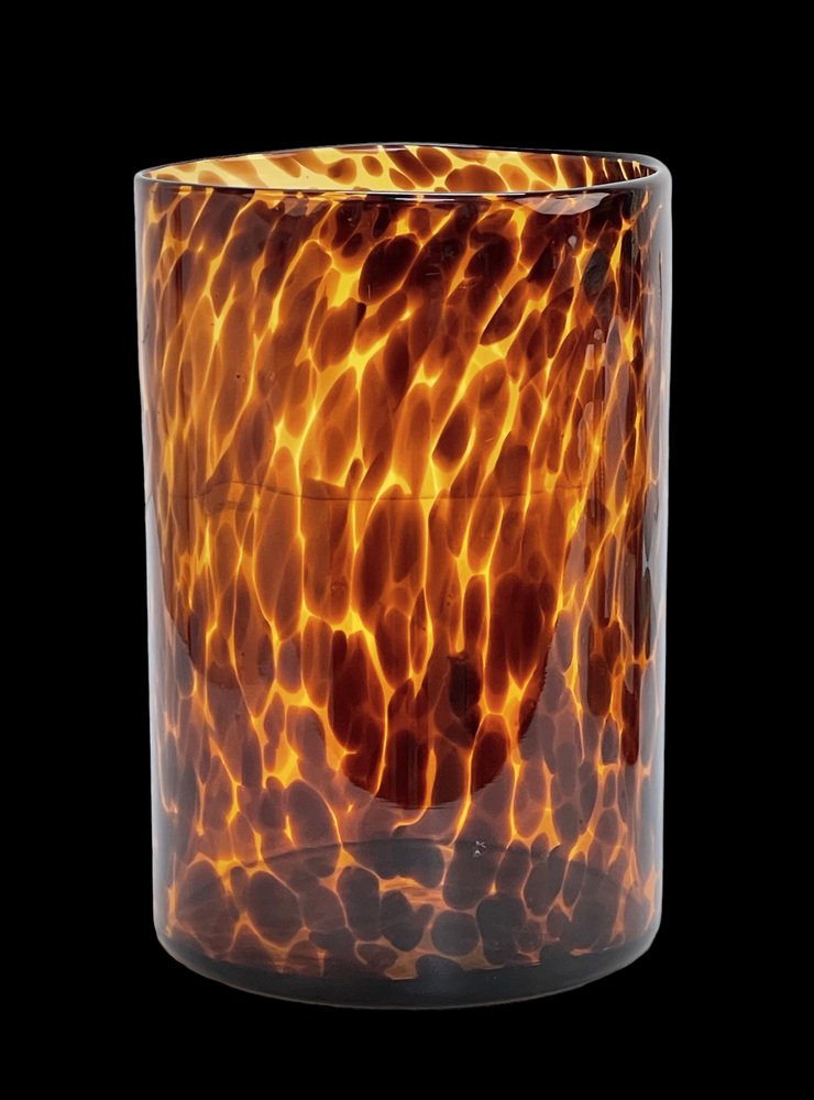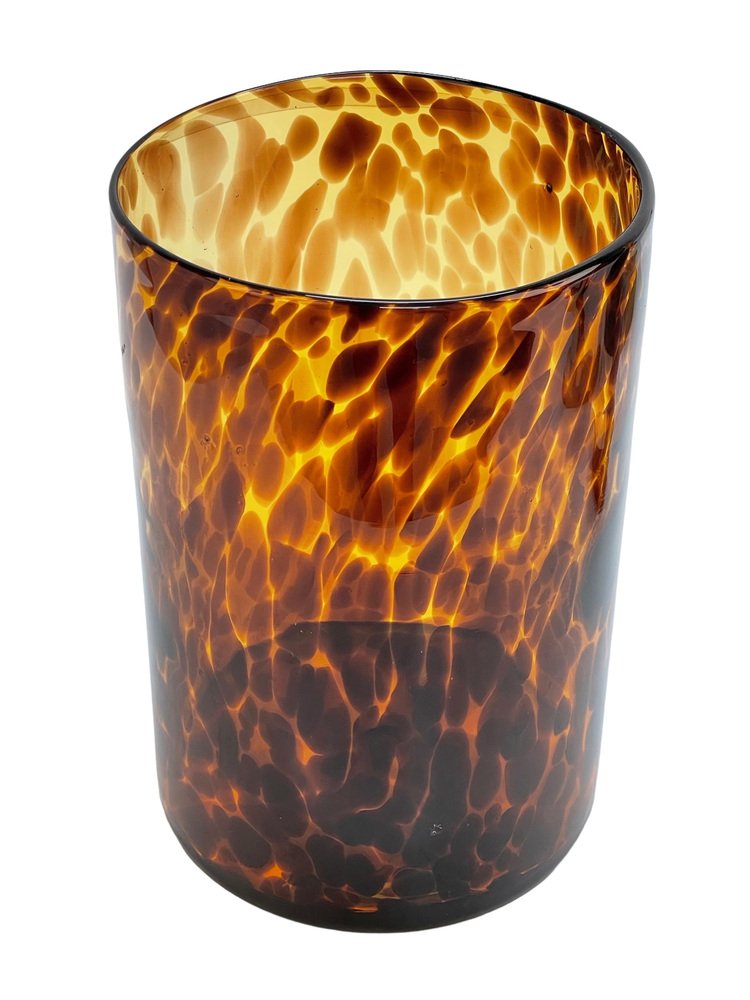 Large Mid-Century Italian Orange and Brown Leopard Glass Artistic Vase, 1980s