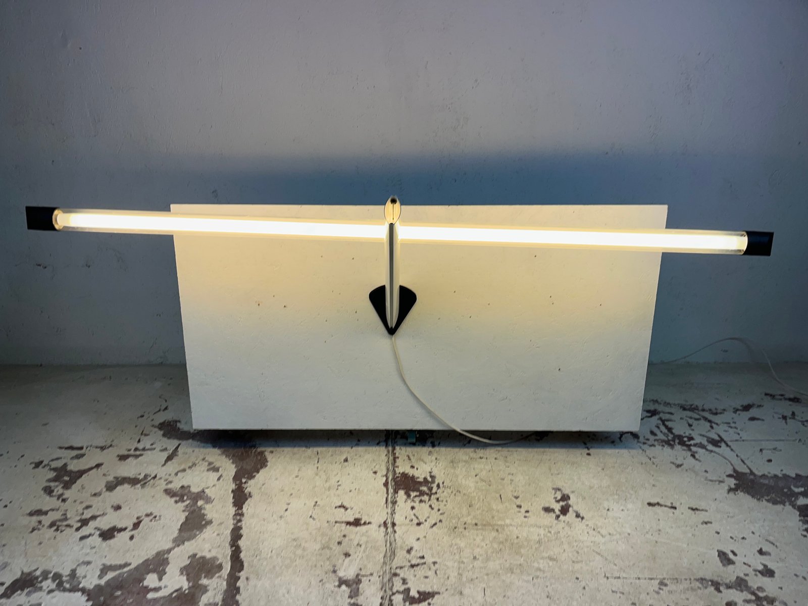 Gecchelin, in particular, was the most prolific contributor to Skipper’s lighting output. Concurrent to stints designing for Italy’s most progressive lighting manufacturers—Guzzini, Oluce, Venini, and Gino Sarfatti’s Arteluce—Gecchelin produced an array of minimalist lamps (table, wall, floor, desk, ceiling) for the company, often crafted in premium materials like marble and lacquered metal. A specific standout Skipper design includes Gecchelin’s Mezzeluna (1975), a high-voltage and quite tall floor lamp in Cararra marble and white lacquered metal. Beyond Gecchelin, Skipper’s lighting portfolio includes work from Claudio Sallochi, whose Riflessione Floor Lamp (ca. 1960s) was manufactured by the company in the 1970s and is now fetching high valuations on the vintage market.