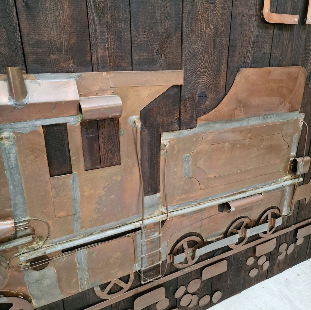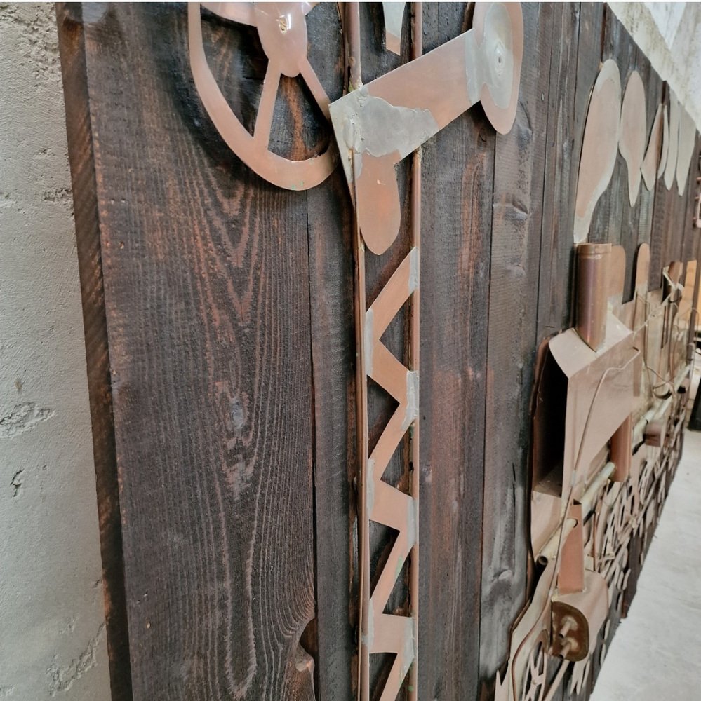 Large Swiss Wooden Wall Panels with Trained Copper Patterns, 1960