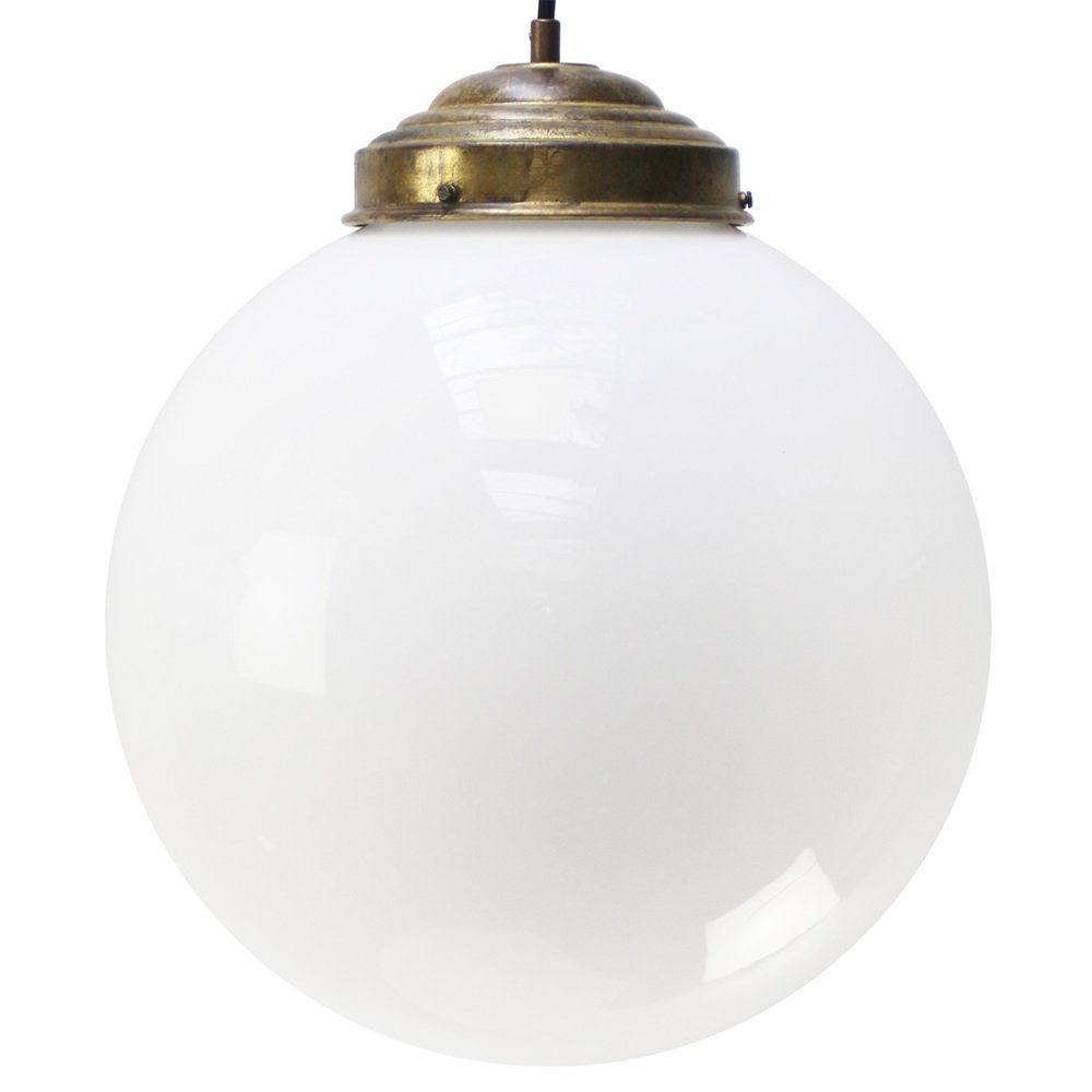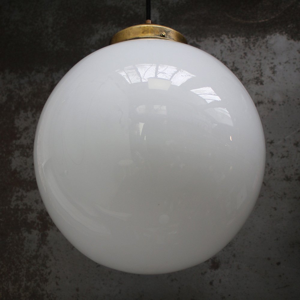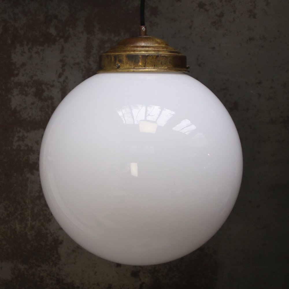 Large Vintage Pendant Light in White Opaline Glass Globe and Brass