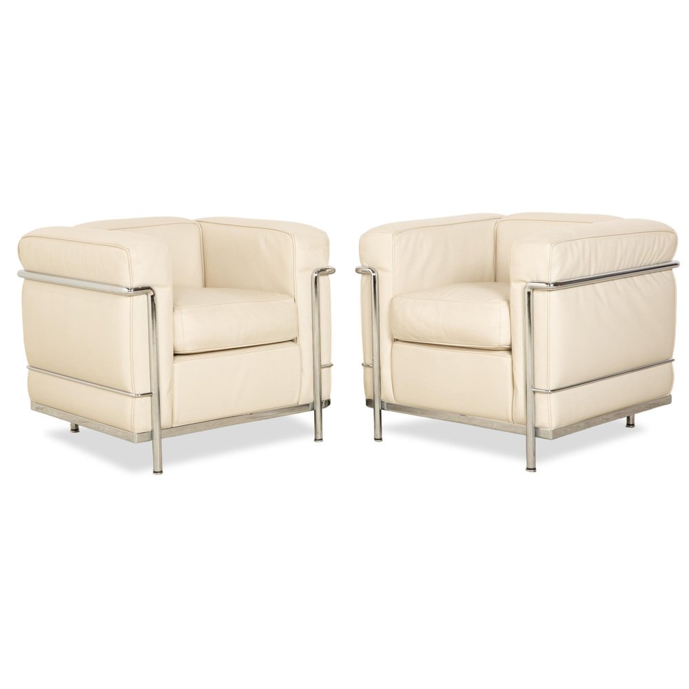 LC 2 Armchairs in Cream Leather by Le Corbusier for Cassina, Set of 2
