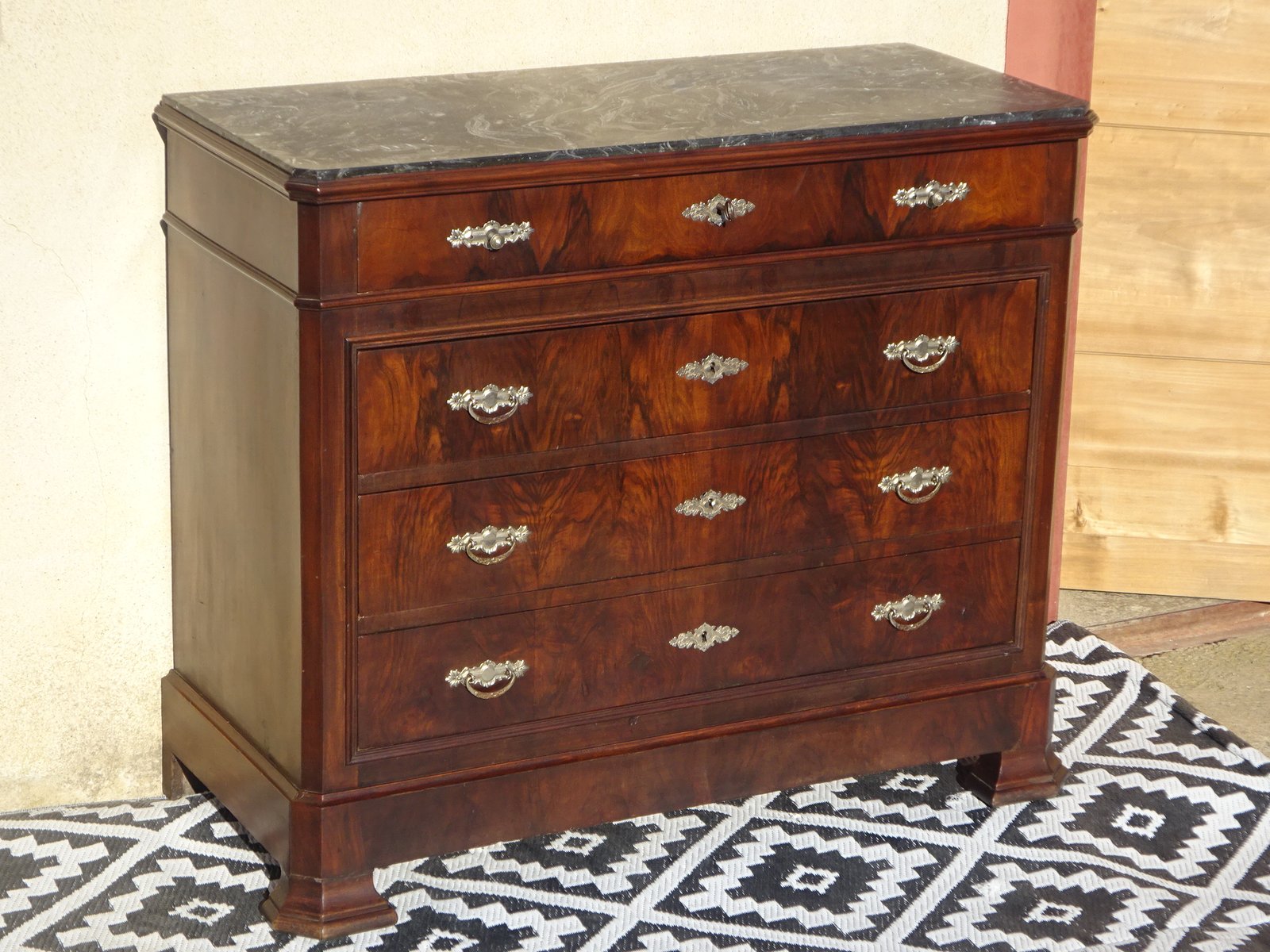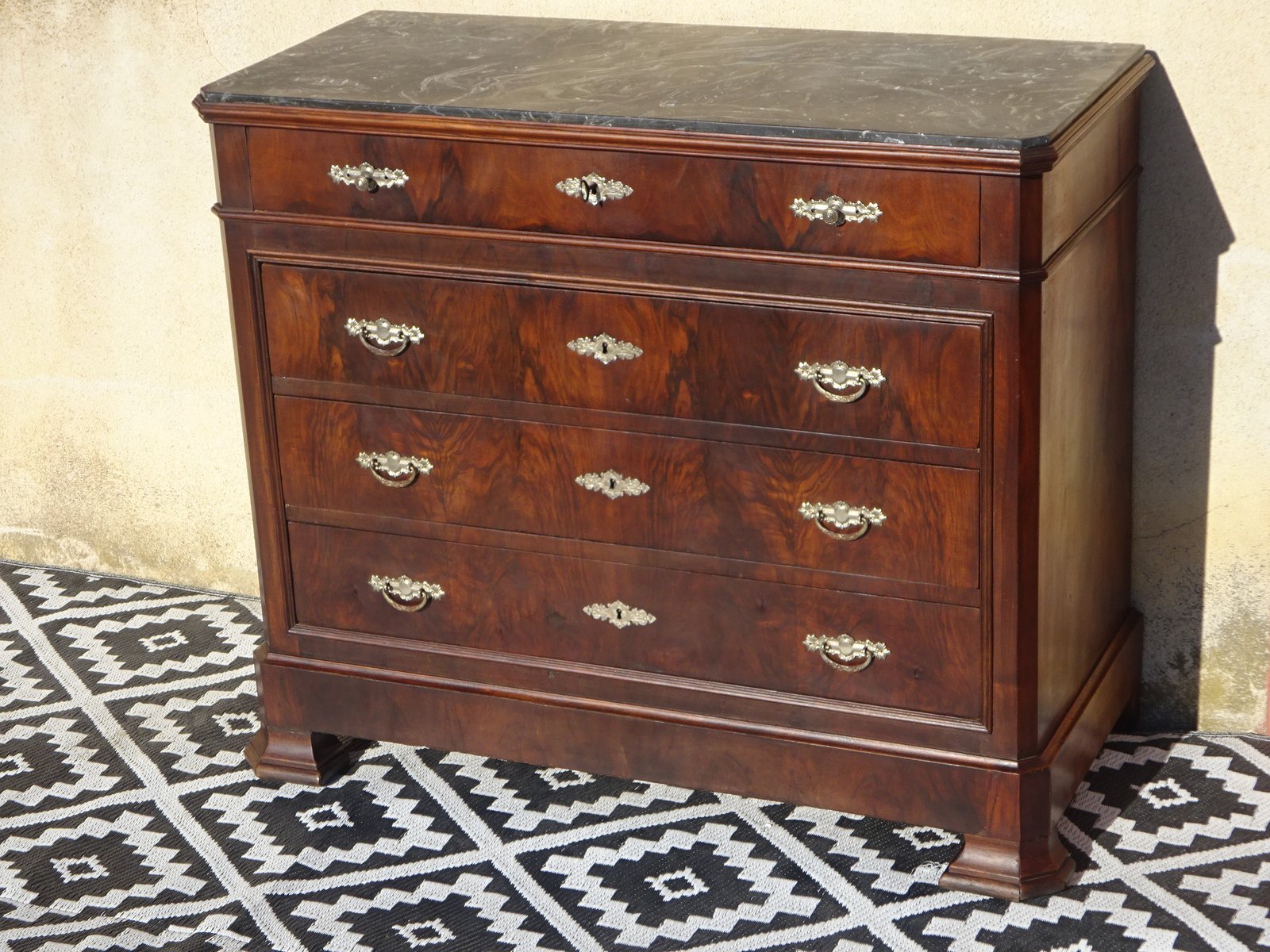 Louis Philippe Chest of Drawers in Walnut and Burl Walnut from Befos