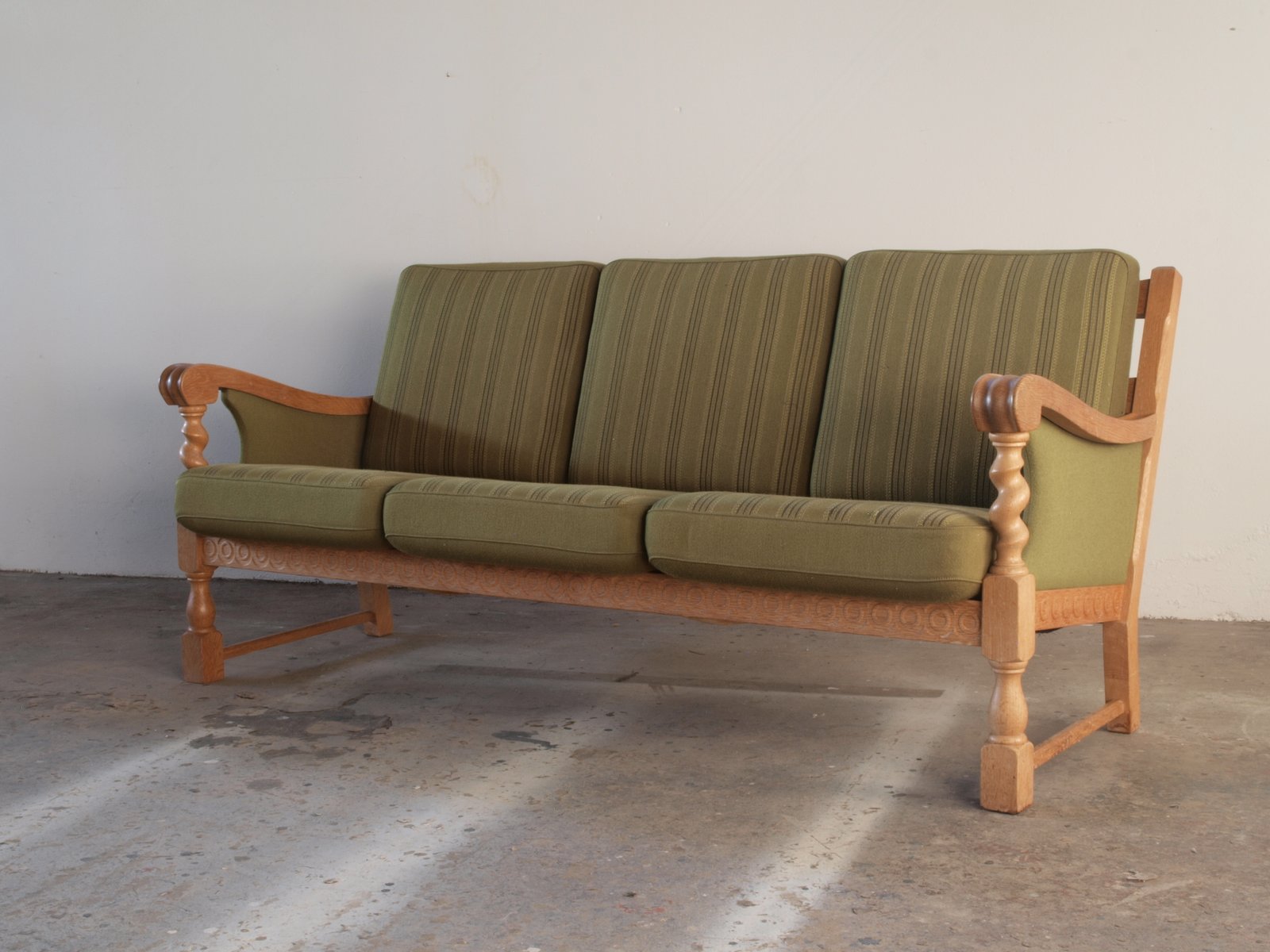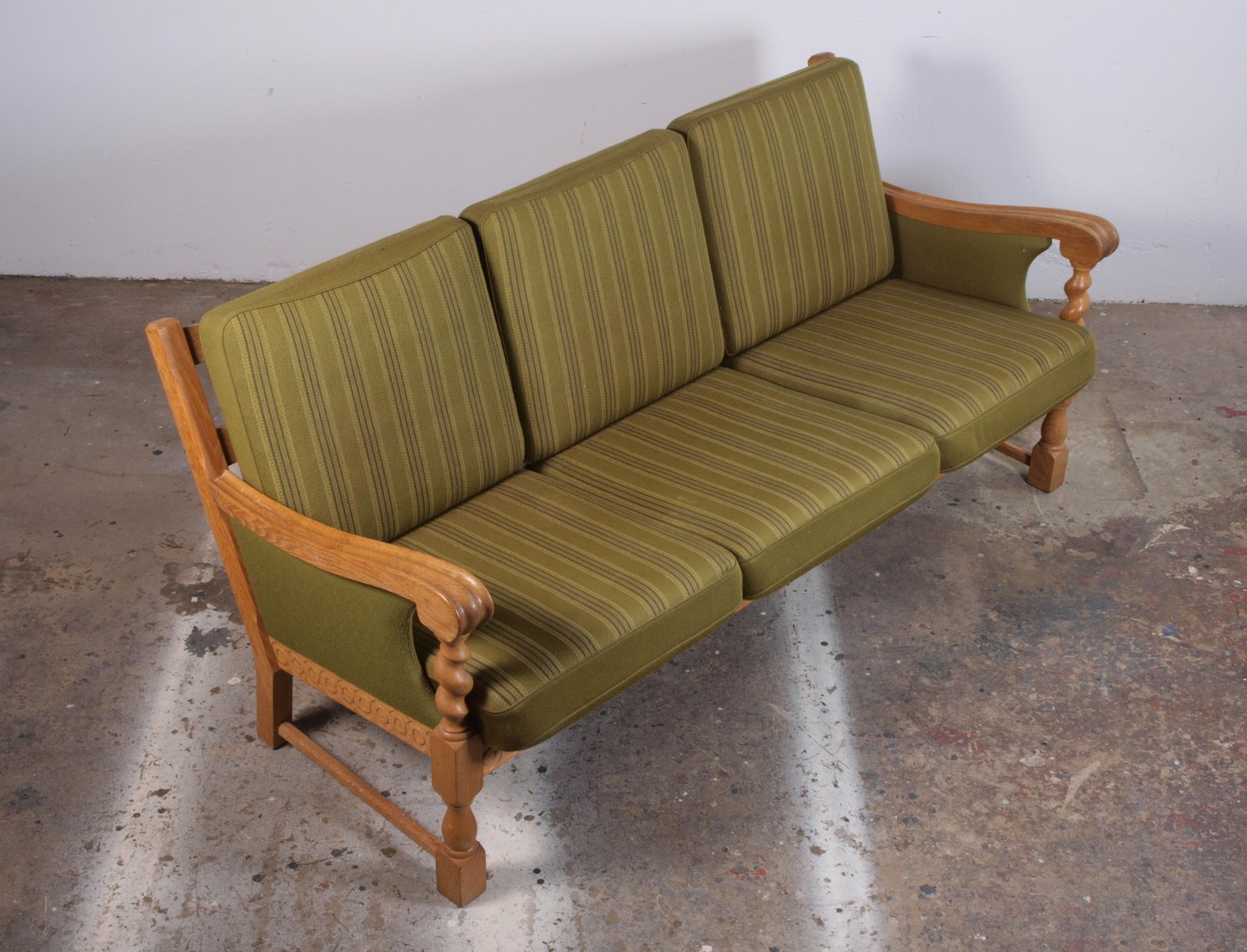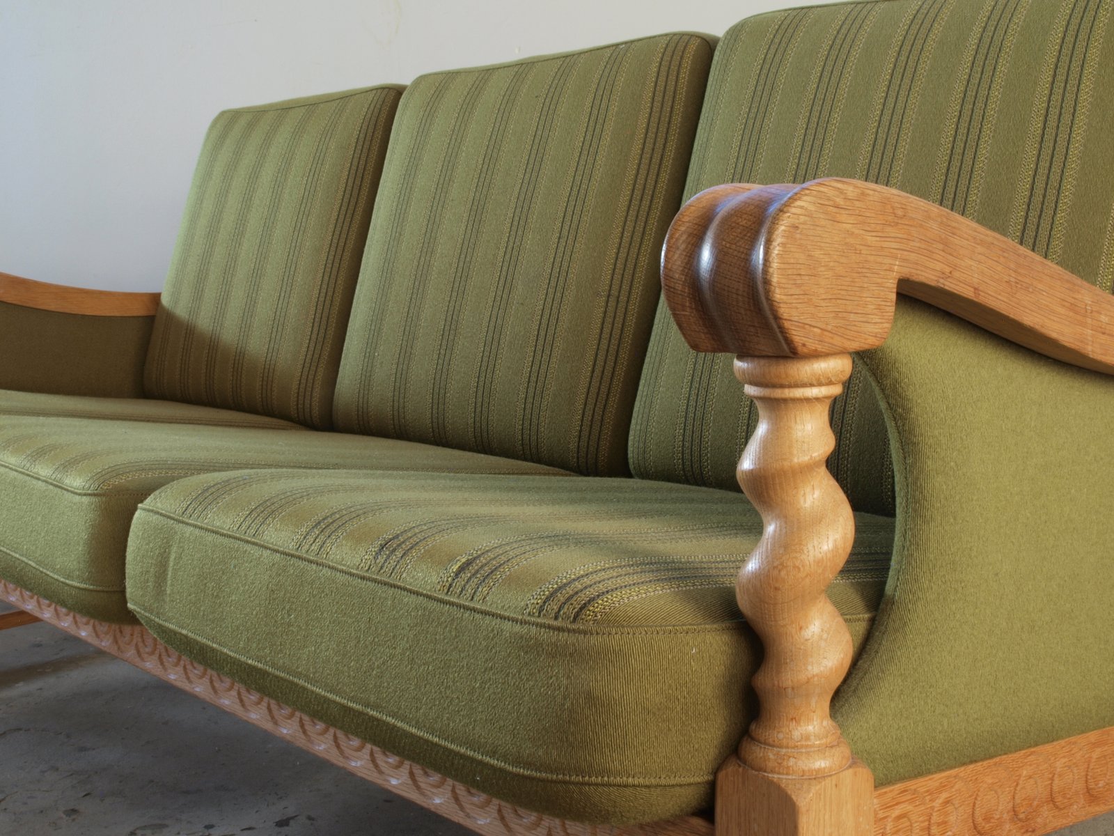 Low Back Three-Seater Sofa in Oak by Henning Kjærnulf, 1960s