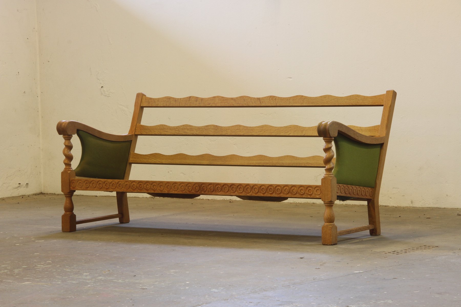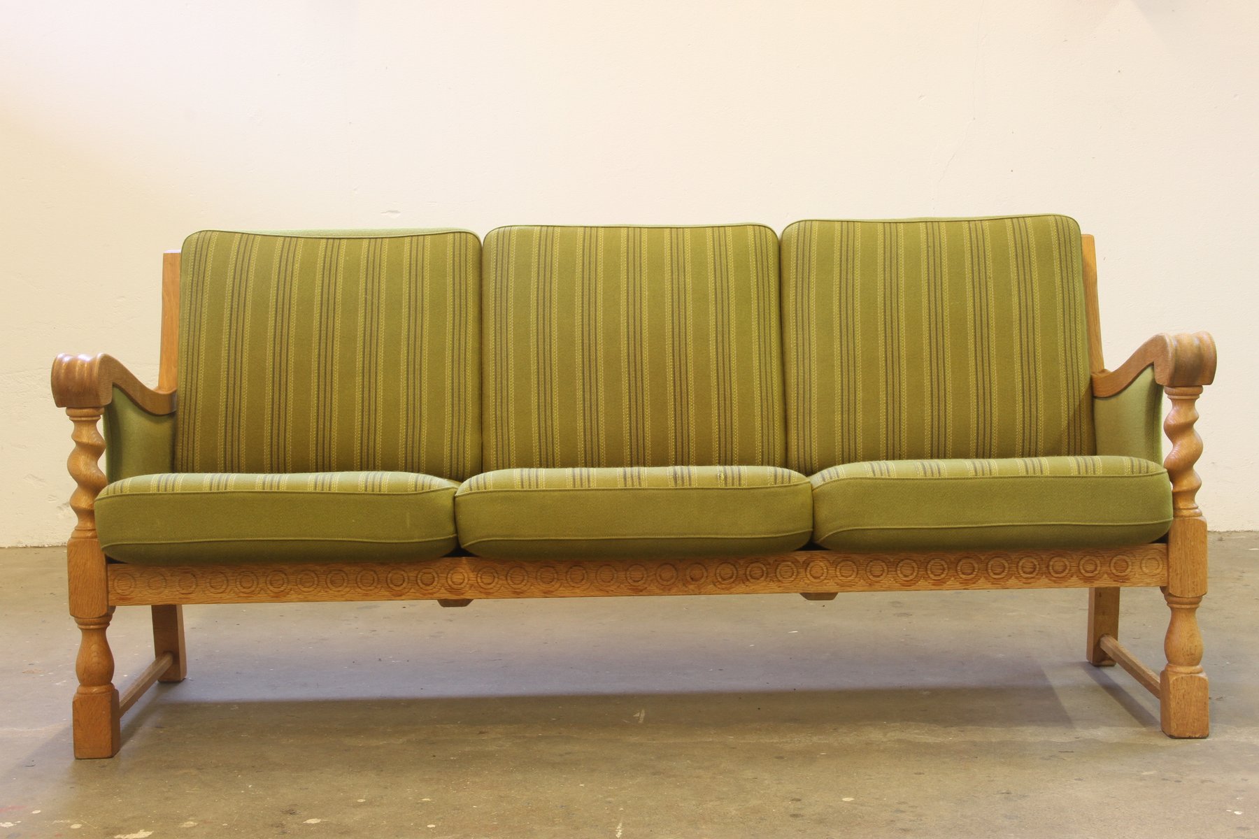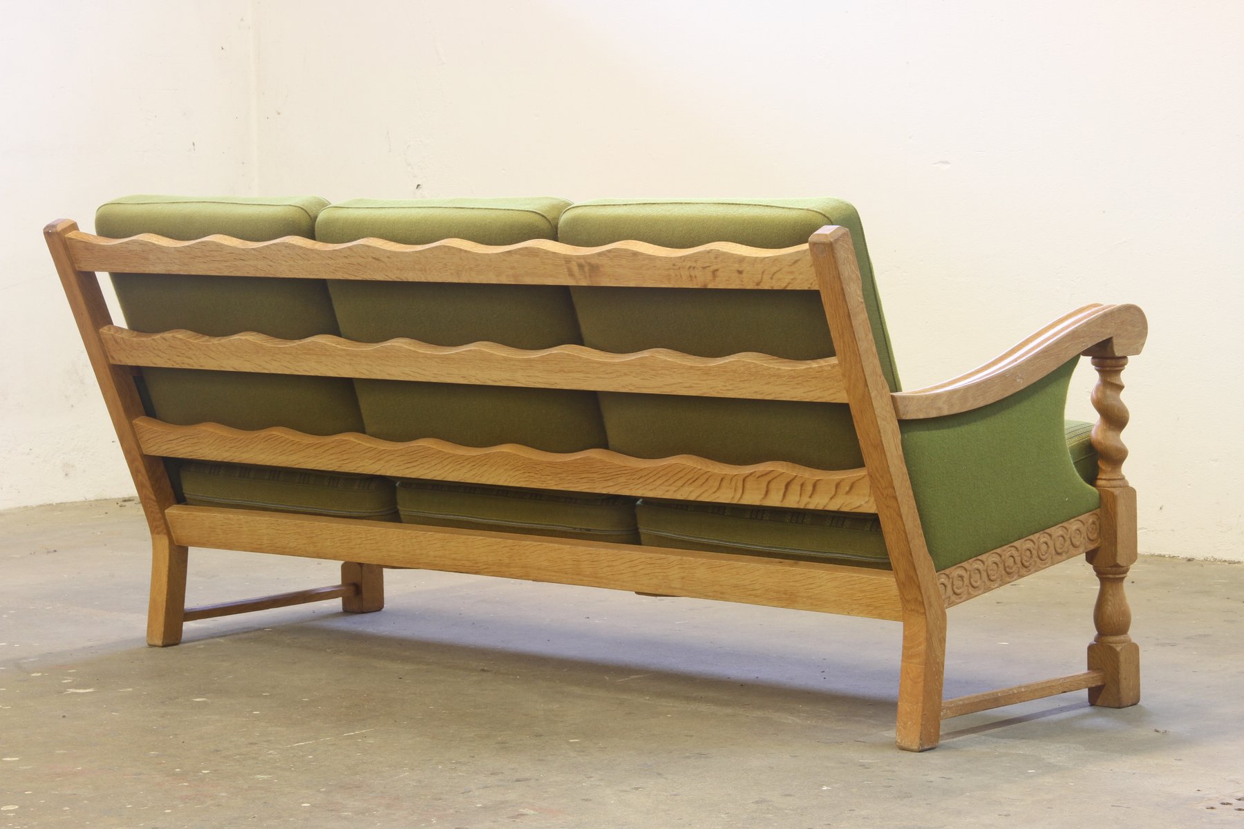 Low Back Three-Seater Sofa in Oak by Henning Kjærnulf, 1960s