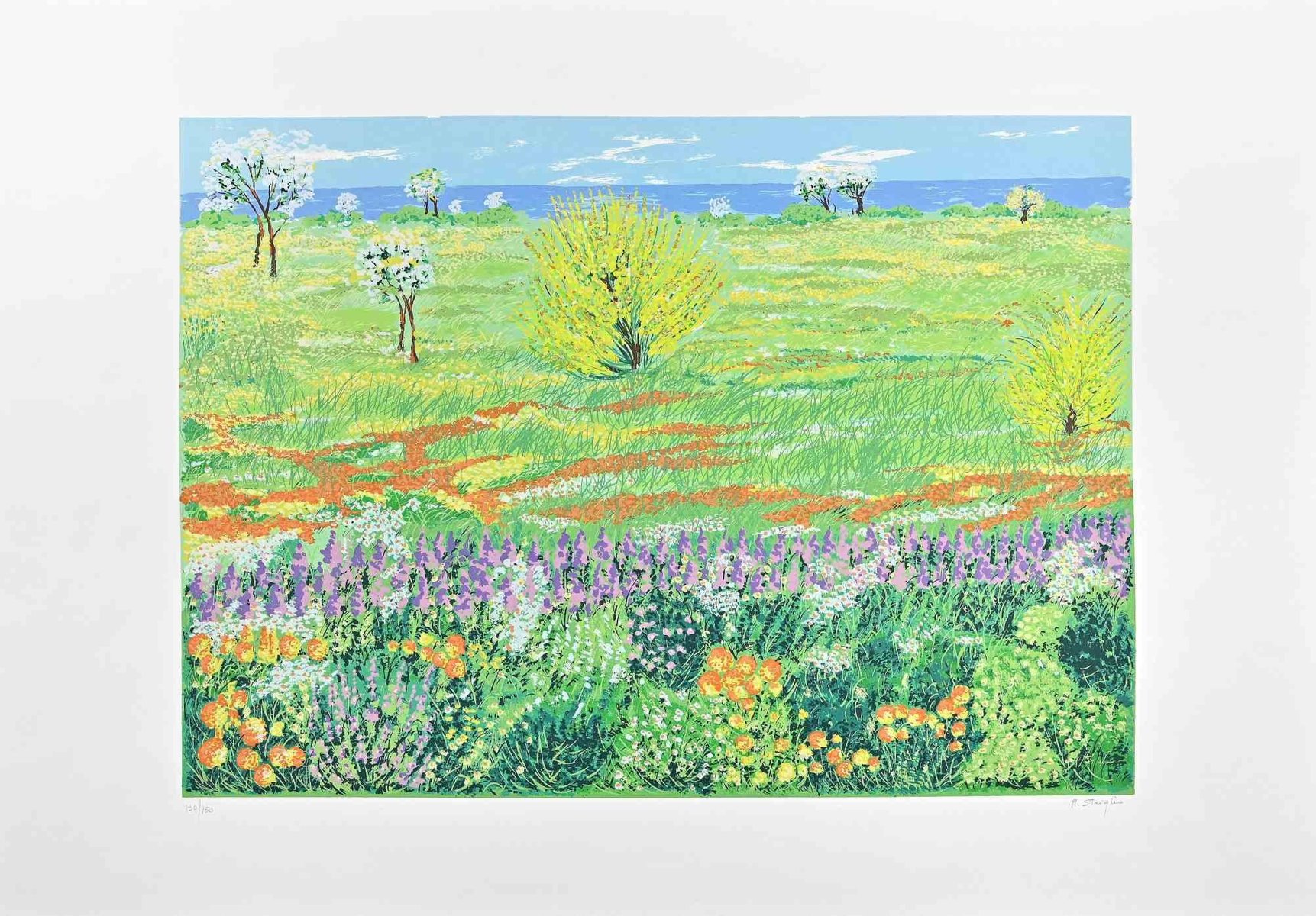 Maddalena Striglio, Meadow in Spring, Original Screen Print, Late 20th-Century