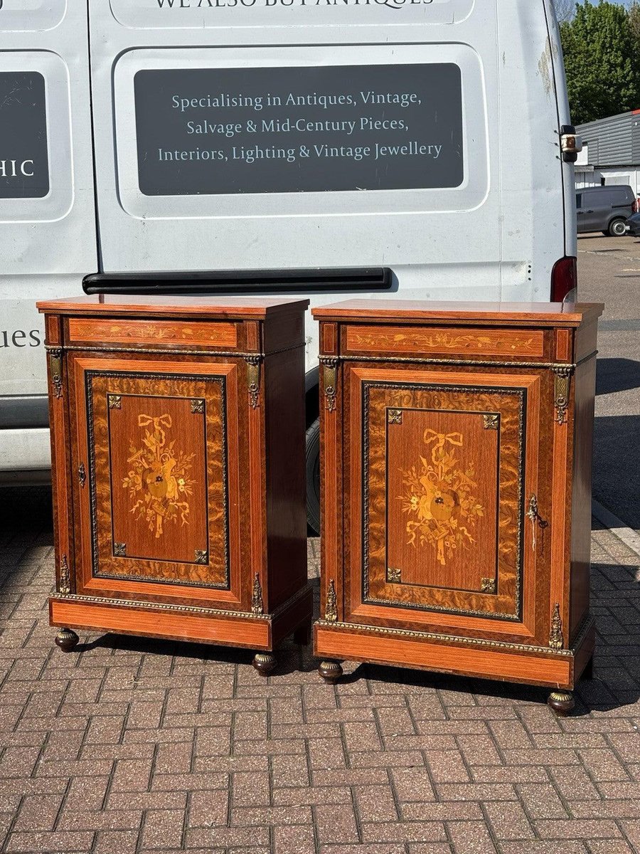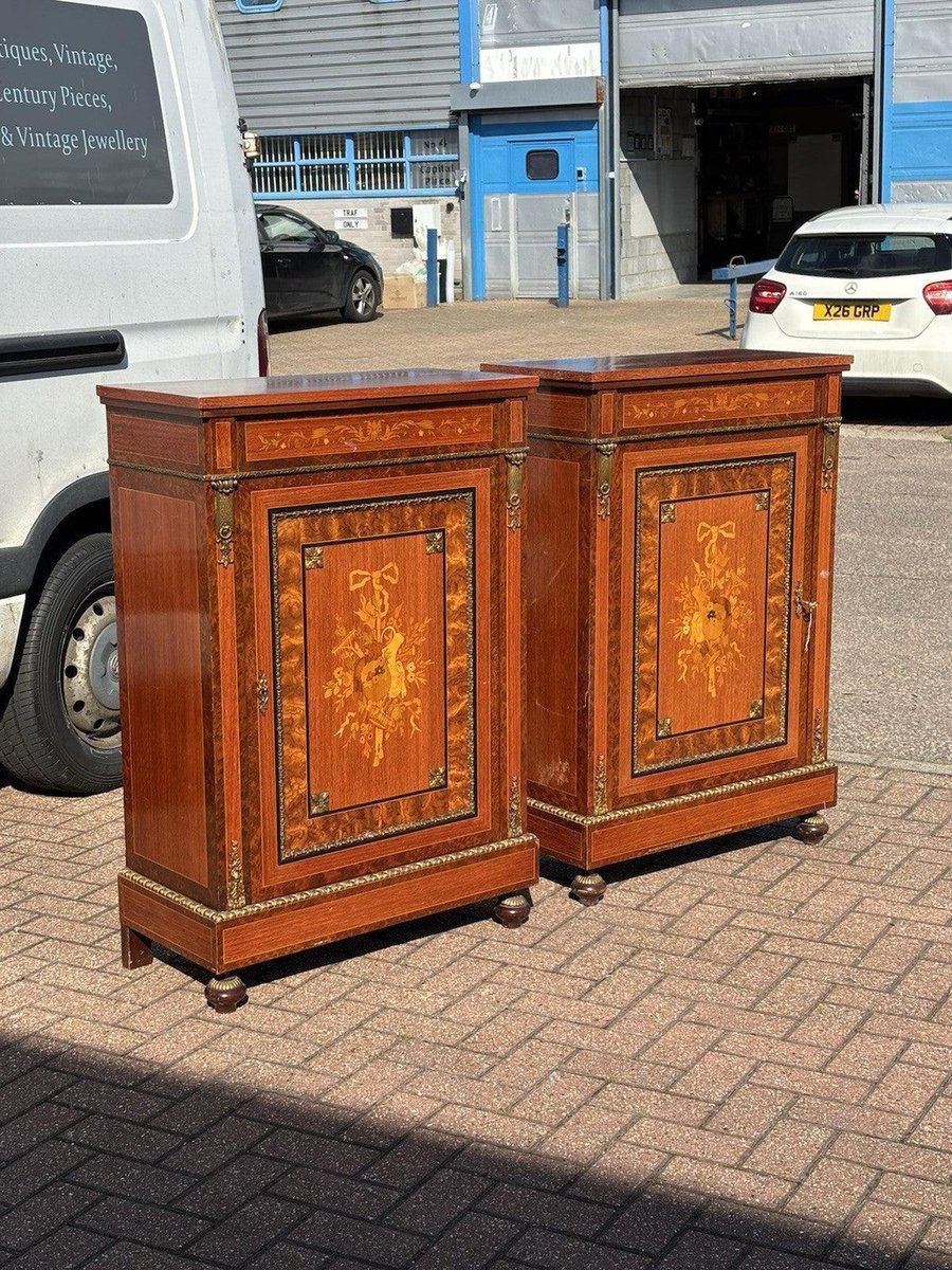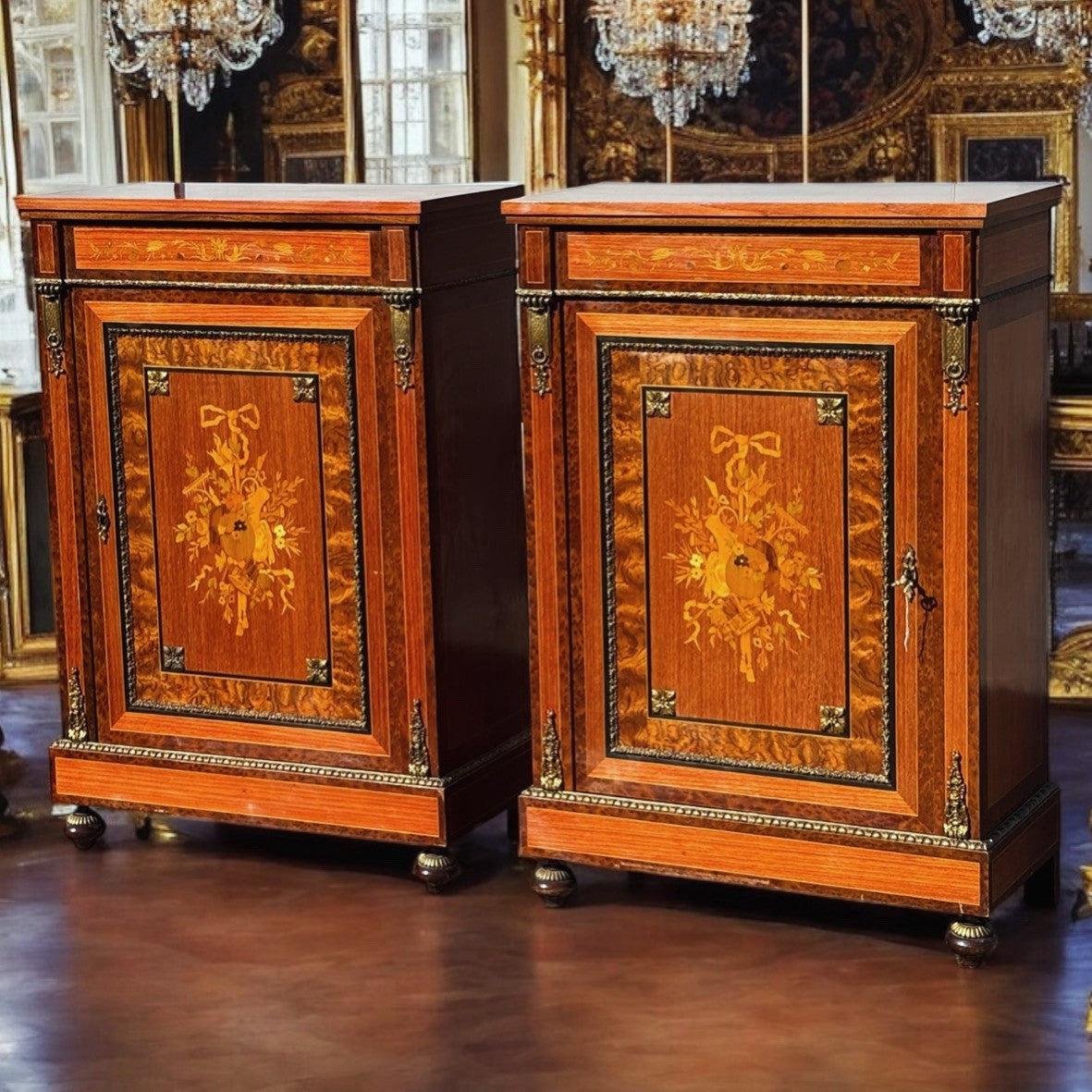 Marquetry and Brass Pier Cabinets, Set of 2