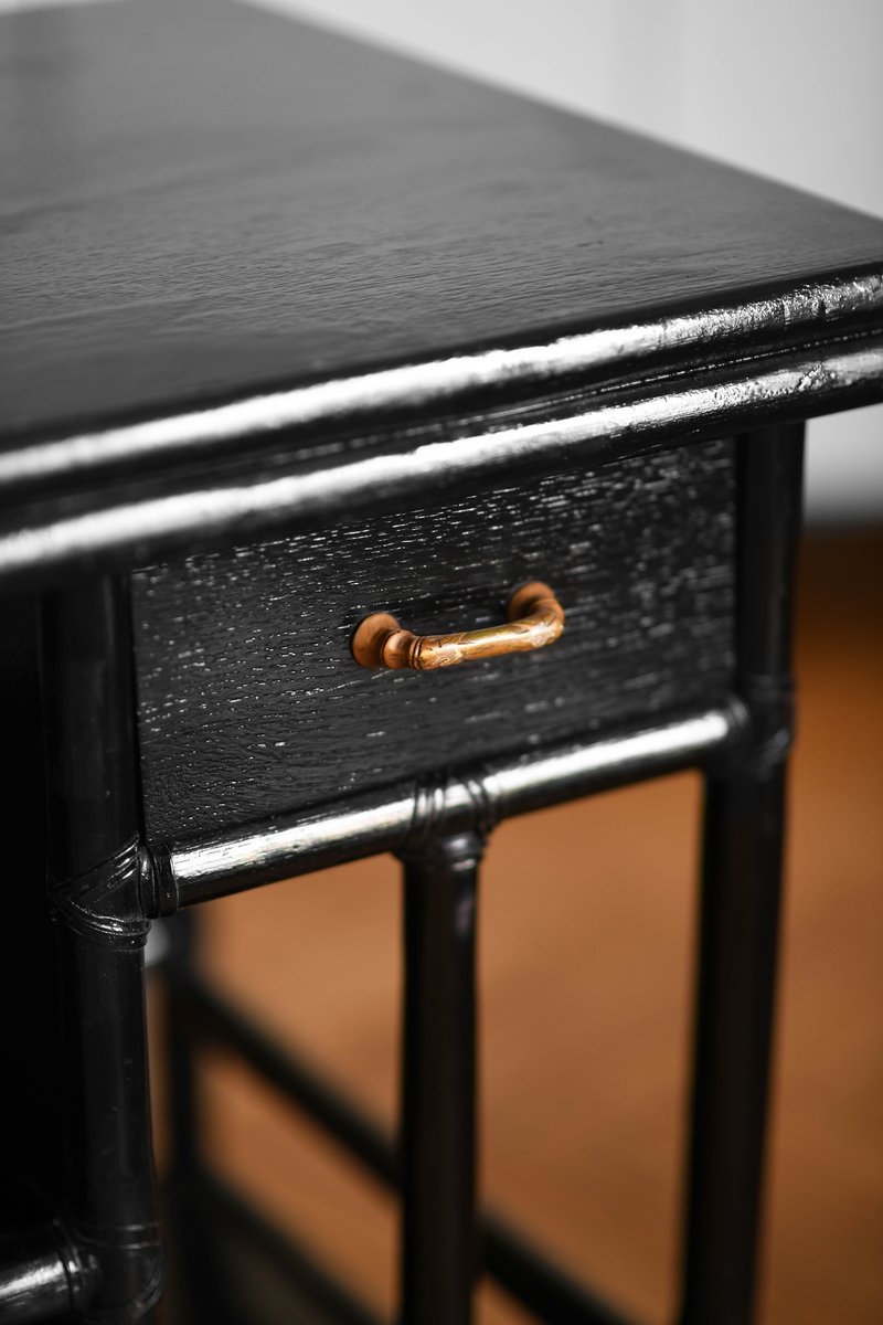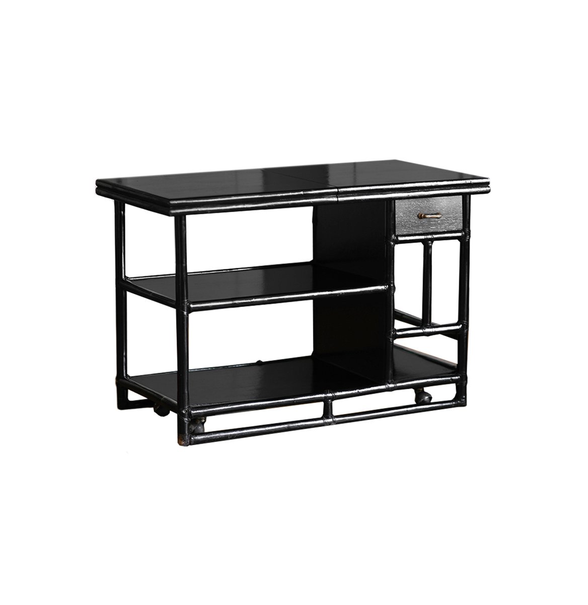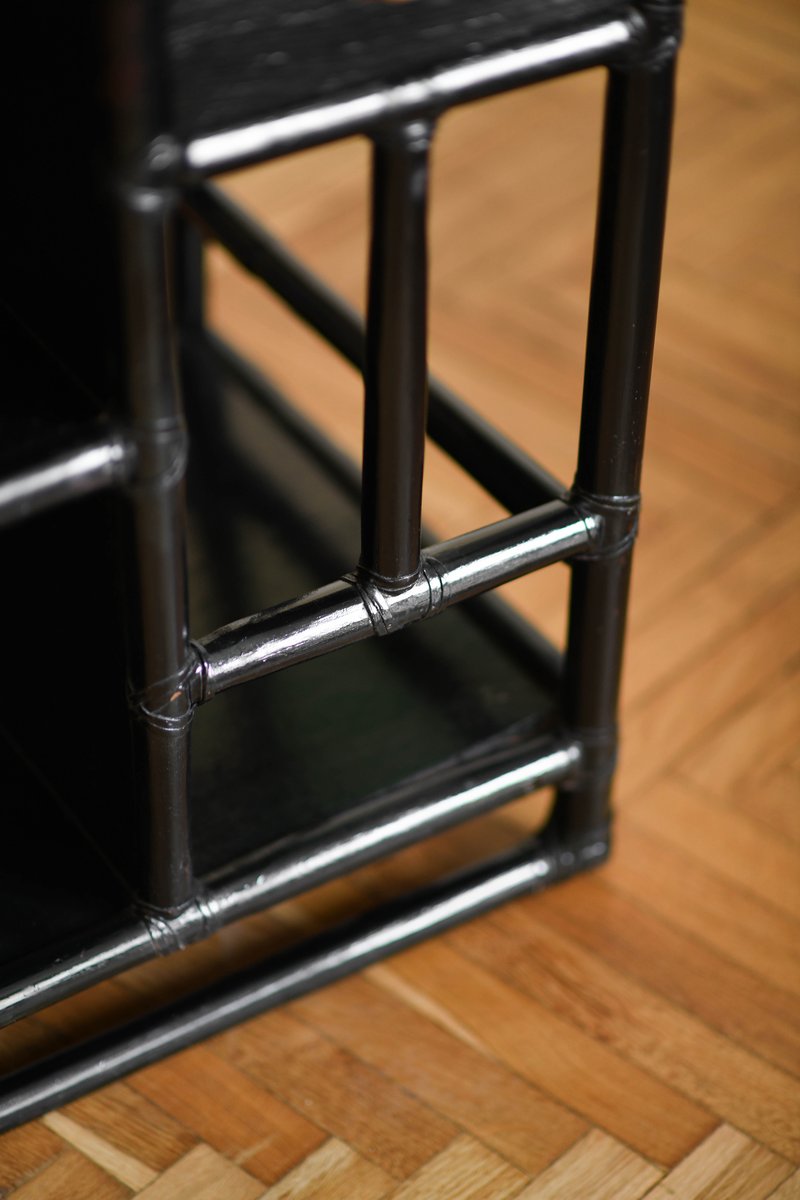 McGuire Bar Buffet Trolley in Black Lacquered Rattan, 1970s