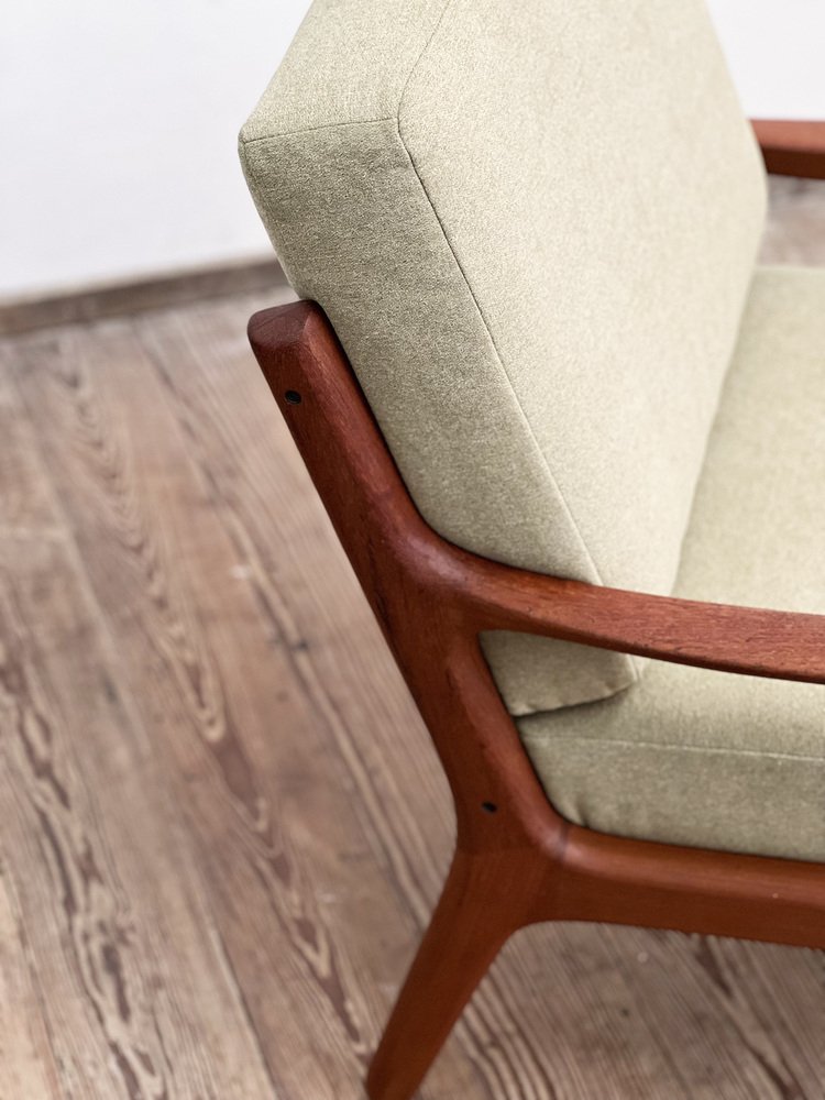 Between the 1940s and 1960s, Wanscher enjoyed fruitful collaborations with small-scale, artisanal cabinetmakers, like the masterful A. J. Iversen (1888-1979), as well as well as larger-scale Danish companies, such as France & Søn, Fritz Hansen, Poul Jeppesen, and Rud Rasmussen. With Iversen, he created the iconic Ladies Desk (1954) and Egyptian Stool (1957). Other standout Wanscher designs include the PJ-149 Colonial Chair (1949), Rungstedlund Dining Chair (ca. 1950), and PJ-112 Sofa (1951) for Poul Jeppesen; as well as the 110 Rocking Chair (1951) and Senator Easy Chair (1951) for France & Søn .