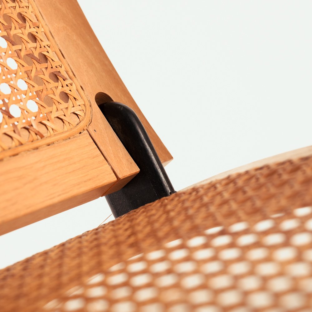 Set of Vintage Italian Leather and Beech Stick Chair by Ibisco, 1970s