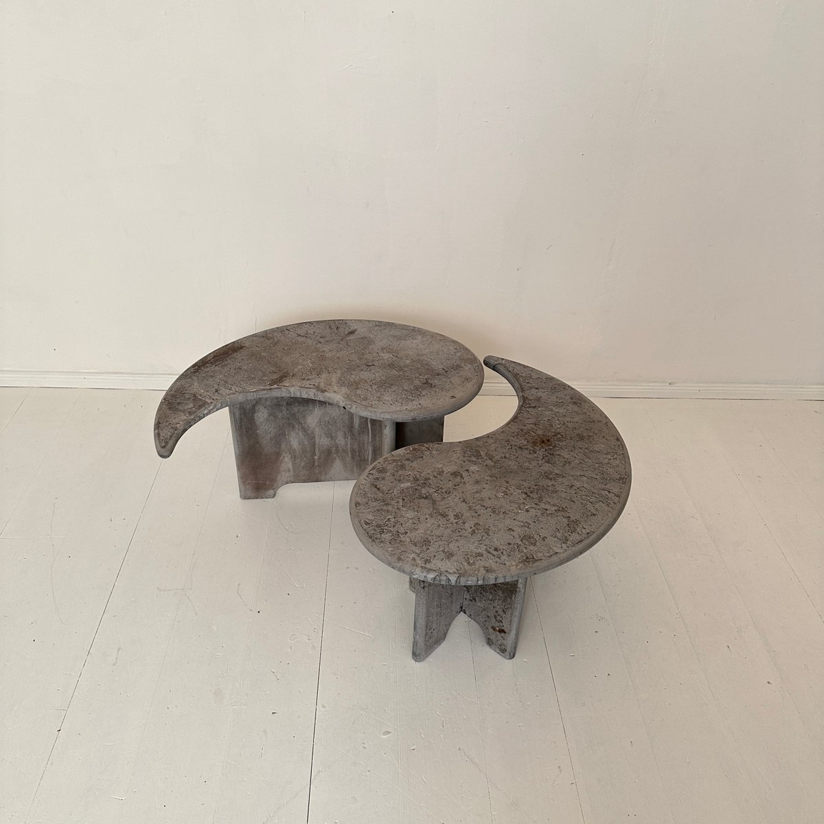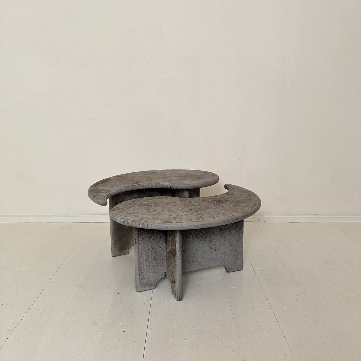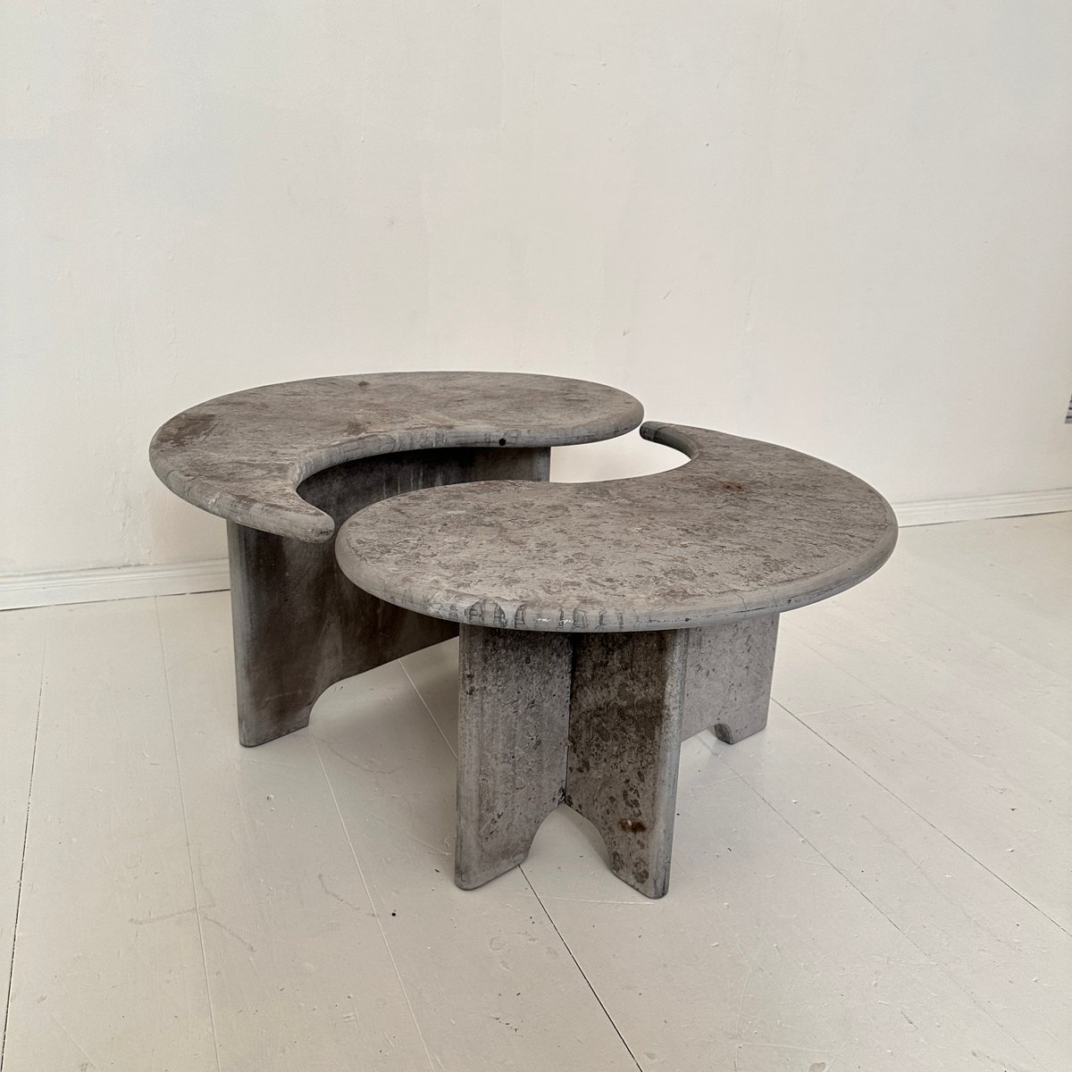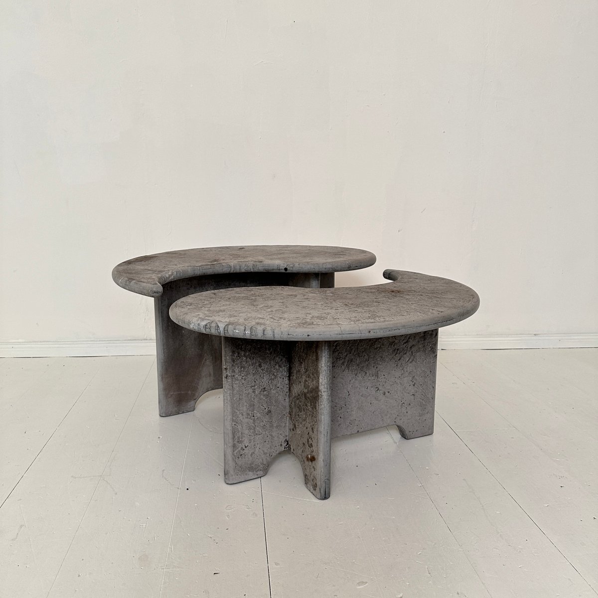 Mid-Century Italian Grey Concrete Yin and Yang Coffee Tables, 1970s, Set of 2