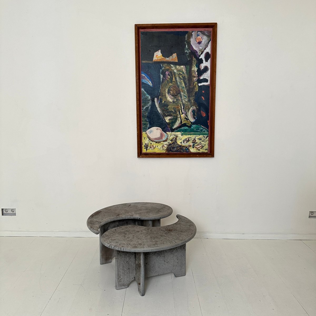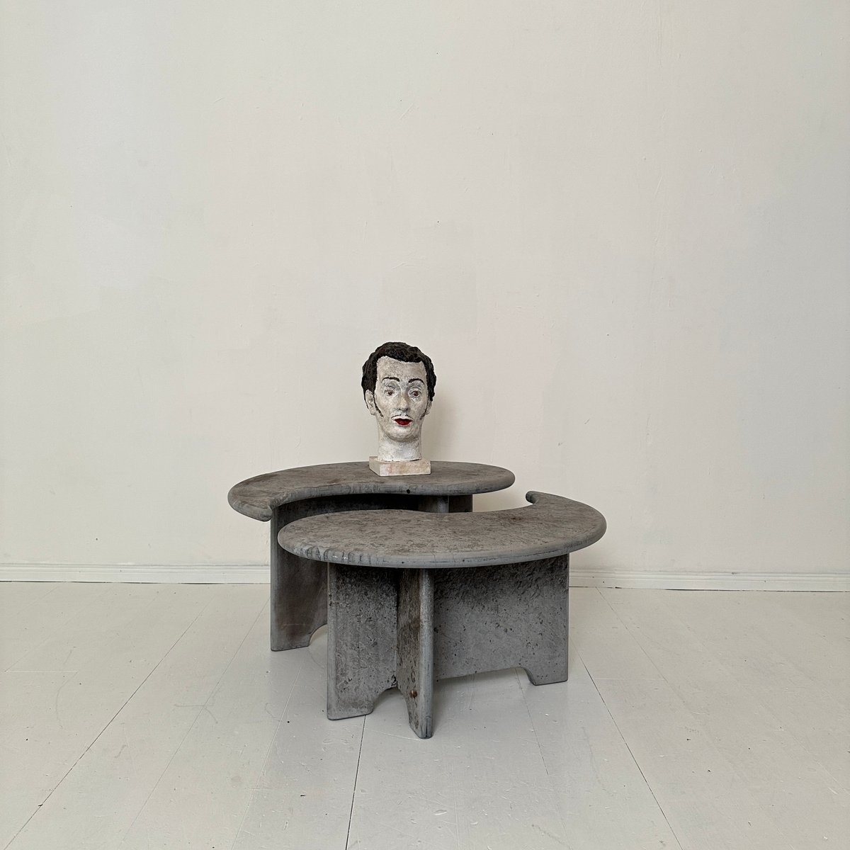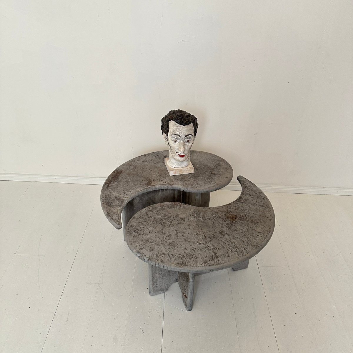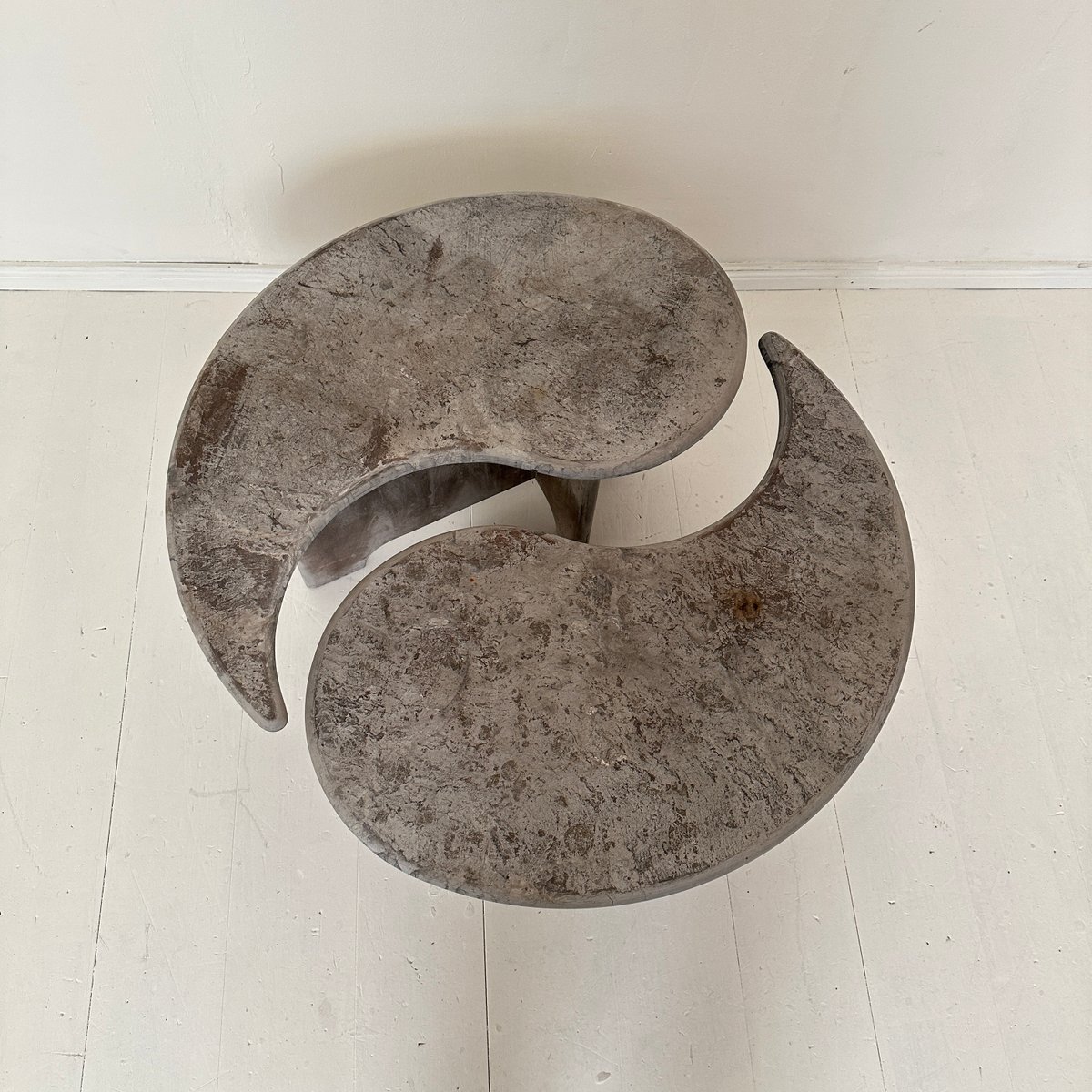 Mid-Century Italian Grey Concrete Yin and Yang Coffee Tables, 1970s, Set of 2
